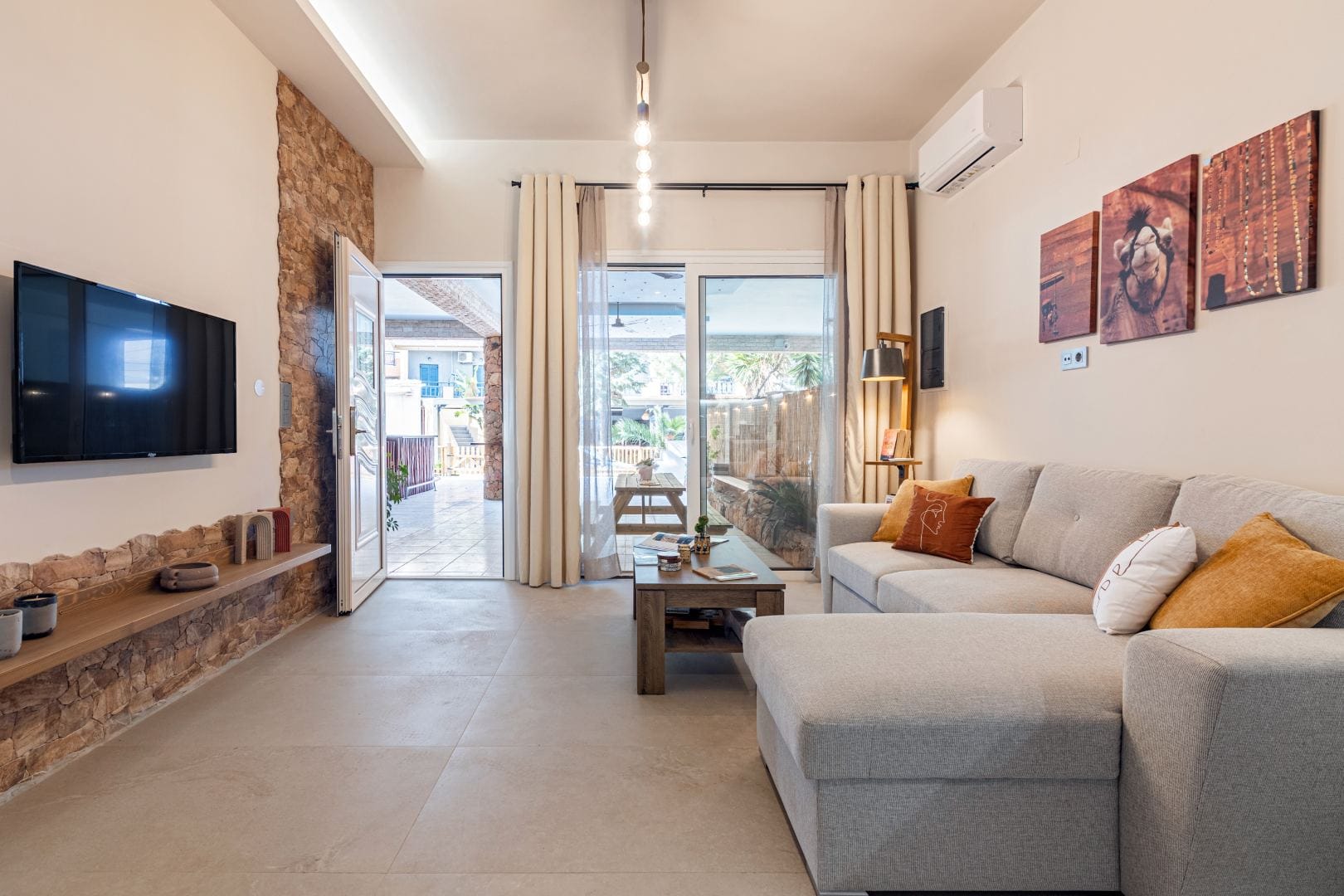 The villa features a total of four bedrooms along with three separate baths with shower. On the outside, you can soak in the warmth of the afternoon sun or just enjoy the thrilling experience of star gazing at night, lounging by the seating area on the terrace.
