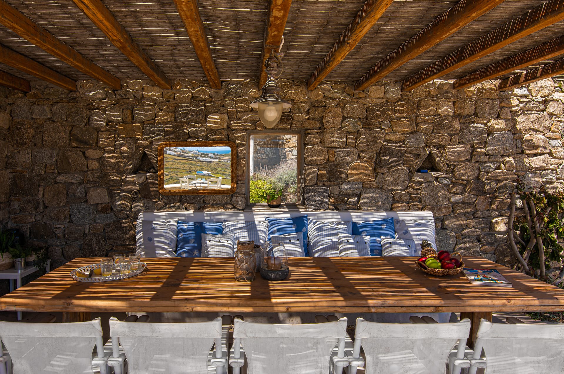 The property is superbly located in the most vivid area of the island, just walking distances from the famous beaches of PARADISE and PARAGA which have established Mykonos as an internationally cosmopolitan destination.
