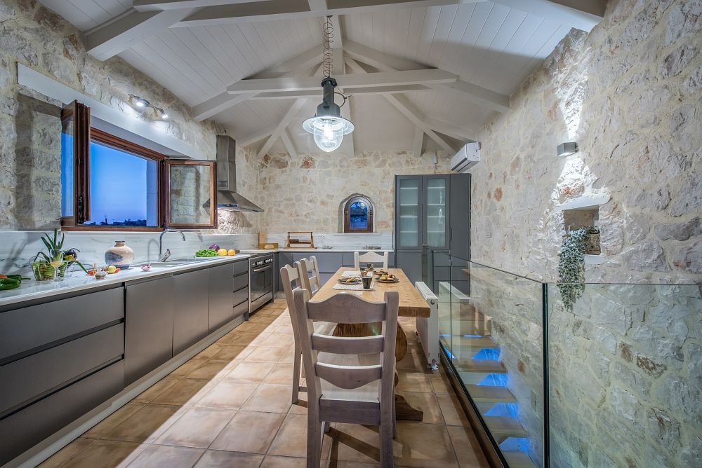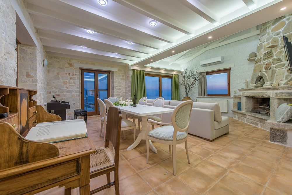 The main entrance of this stone built villa is at the ground floor enabling the guest to enter the spacious living room with the comfortable sofa, the main dining area both of them boasting of mesmerizing pool and sea views as well as a big patio that offers direct access to the private swimming pool.