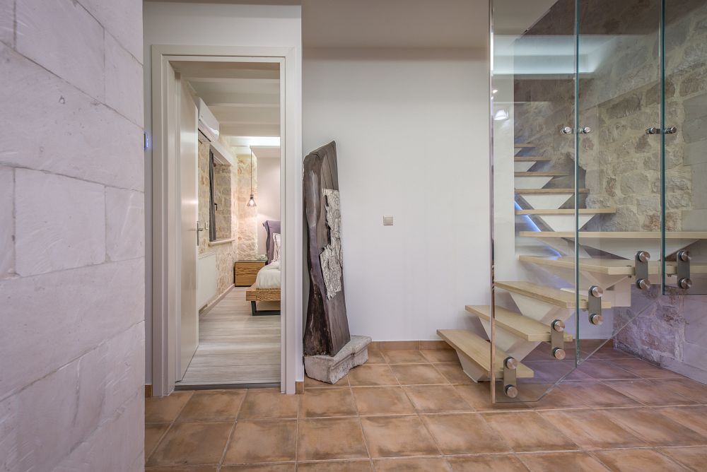 This level offers two bedrooms: one of them with queen sized bed and the other with two single beds that can be joined into one king-sized bed. Both rooms offer en-suite bathrooms with shower, whereas a wc is also located on this level.