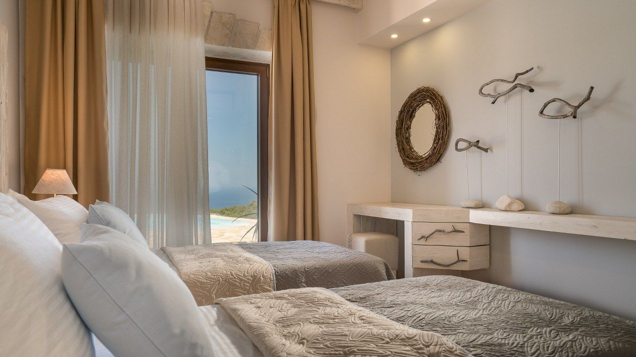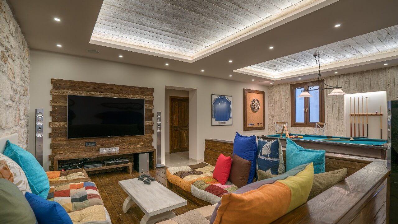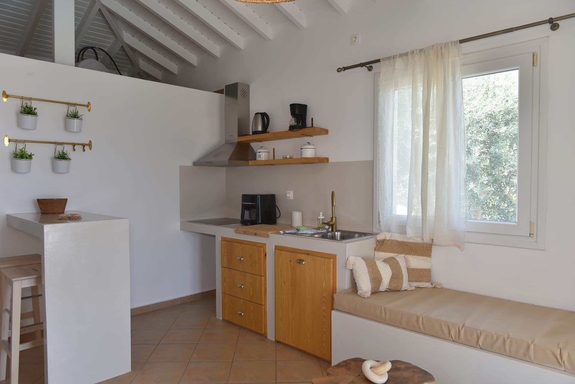 The Alonso villa is just like a home away from home – a fully furnished kitchen, a fully equipped dining area, an office with a Mac PC, a playroom, and a very spacious living room. While the kitchen will allow you to enjoy fresh food and to even try your hand at the local cuisine, you can stay abreast with the latest developments at work at your office. And in the evenings when you are free, you can walk up to the terrace to watch the beautiful evening Greek sky. Or you could wake up early in the morning to watch as the sun rises, lighting up everything in its path. The beach, the sky and the natural Greek surroundings will surely make your Greek vacation truly wonderful.