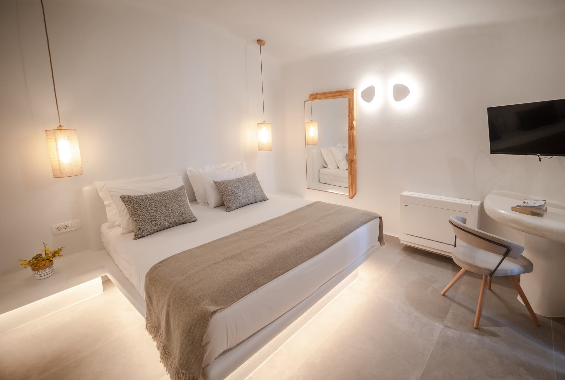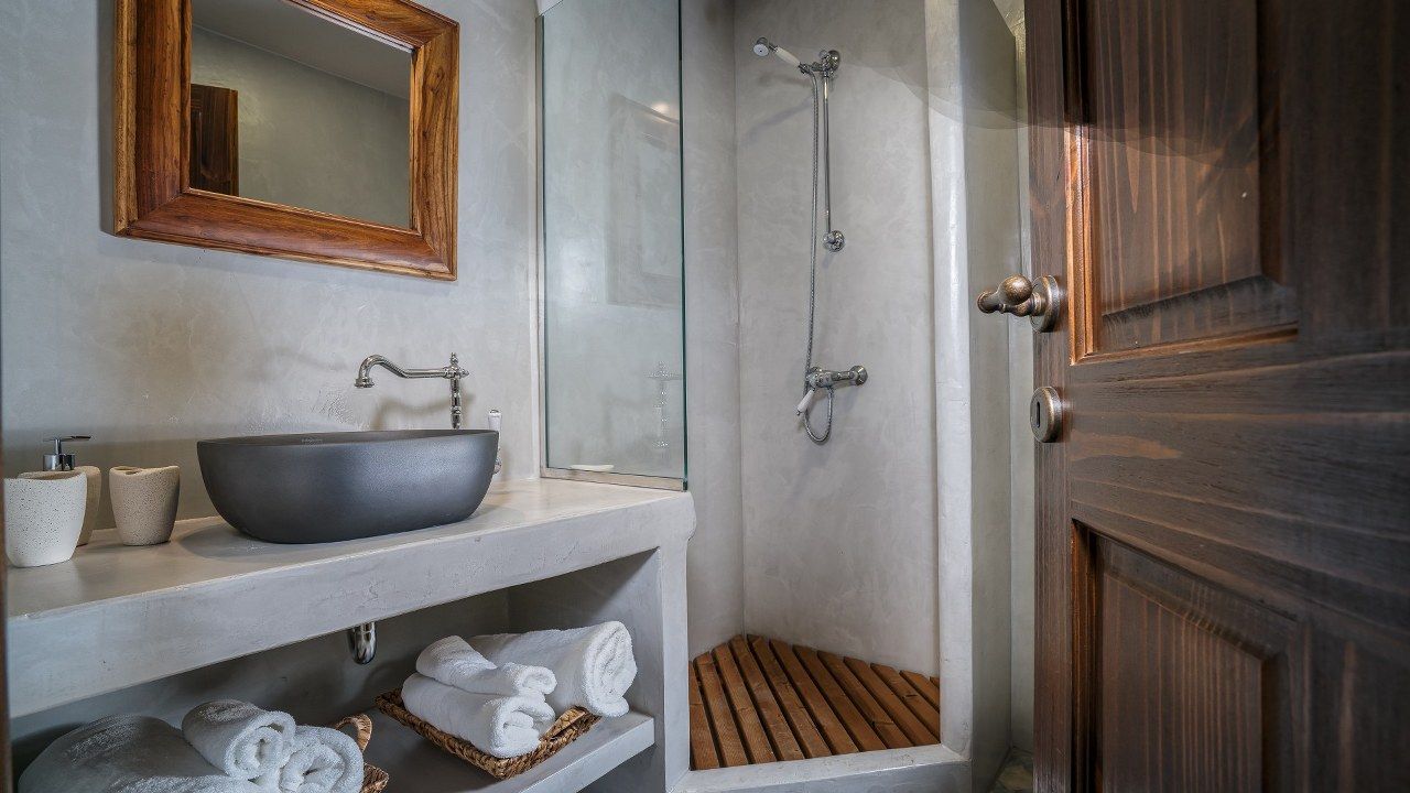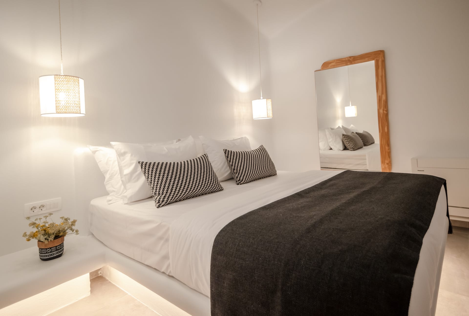 The Alonso villa is just like a home away from home – a fully furnished kitchen, a fully equipped dining area, an office with a Mac PC, a playroom, and a very spacious living room. While the kitchen will allow you to enjoy fresh food and to even try your hand at the local cuisine, you can stay abreast with the latest developments at work at your office. And in the evenings when you are free, you can walk up to the terrace to watch the beautiful evening Greek sky. Or you could wake up early in the morning to watch as the sun rises, lighting up everything in its path. The beach, the sky and the natural Greek surroundings will surely make your Greek vacation truly wonderful.