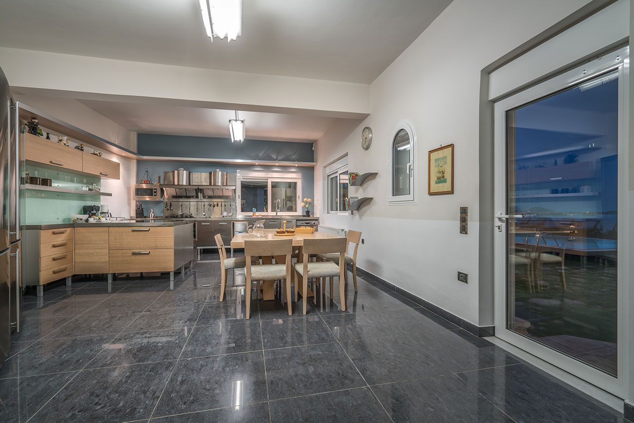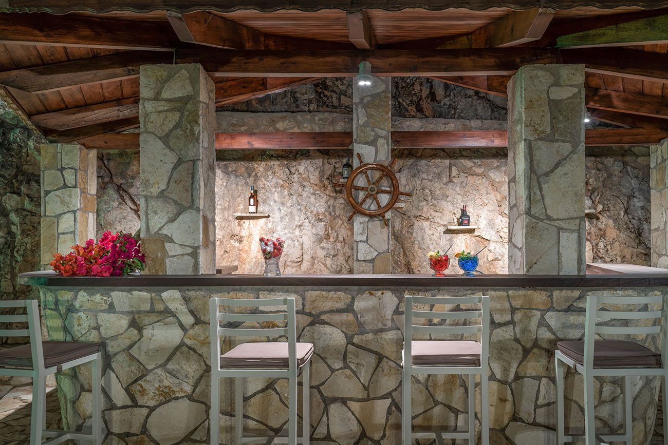 As you enter the villa, you will be welcomed by plush wooden flooring and a grand living room featuring a stone fireplace. Besides this, the ground floor also has a unique sitting area (called the ‘captain’s corner’), an extensive kitchen area with granite flooring, a dining area, a guest room as well as a store room. The villa overlooks the beautiful sea and ground level has a large, private covered terrace where you can relax and take in the surrounding natural beauty.