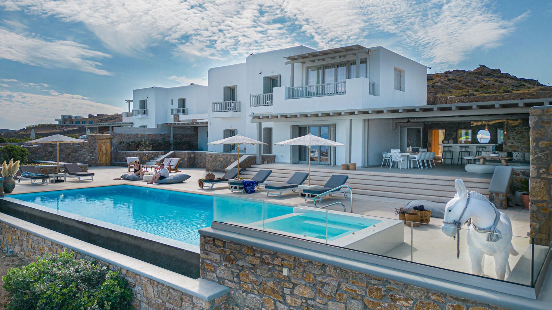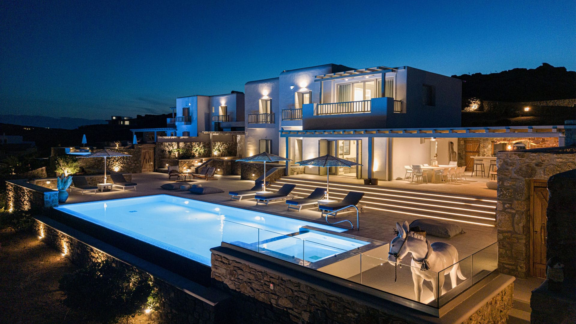 Spend a refreshing afternoon in your private swimming pool and experience true luxury in its aero massage and hydro massage functionalities. You can throw a fun backyard BBQ party for your family and friends by preparing authentic Greek delicacies in the outdoor BBQ setup using the freshest of local seafood and greens. The spacious veranda on the outside makes up for a perfect place to hang-out with your loved ones and enjoy some warm family time in the middle of the nature. You can also try our premium services such as babysitting, Pilates/yoga sessions, beauty services, private chef, car rentals, VIP transfers (yacht, helicopter, Limousine), laundry services and leisure activities at extra charges as applicable.