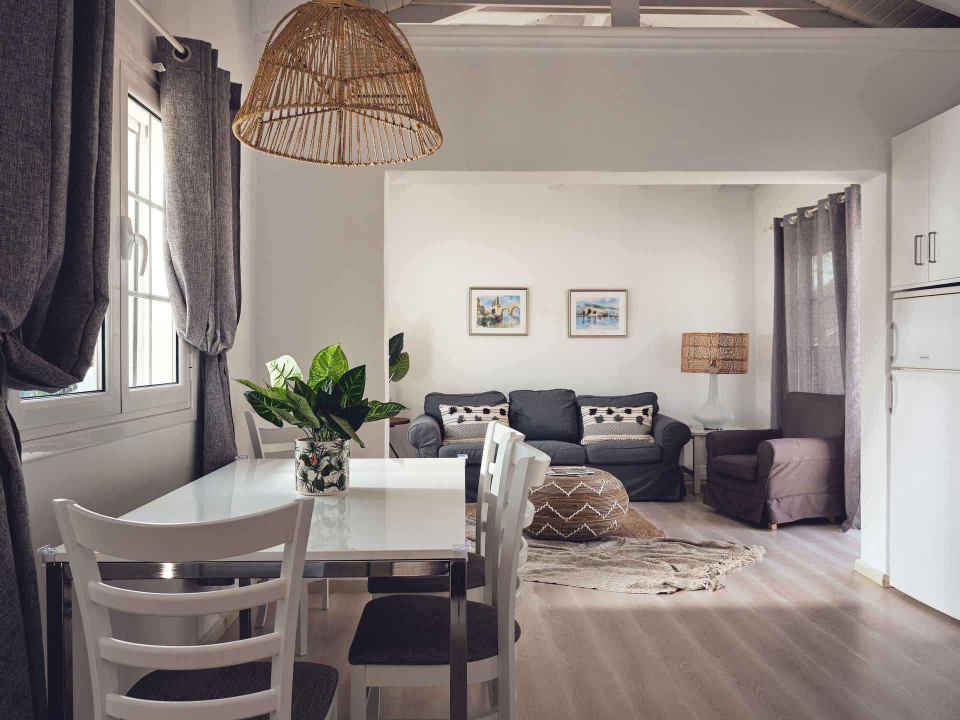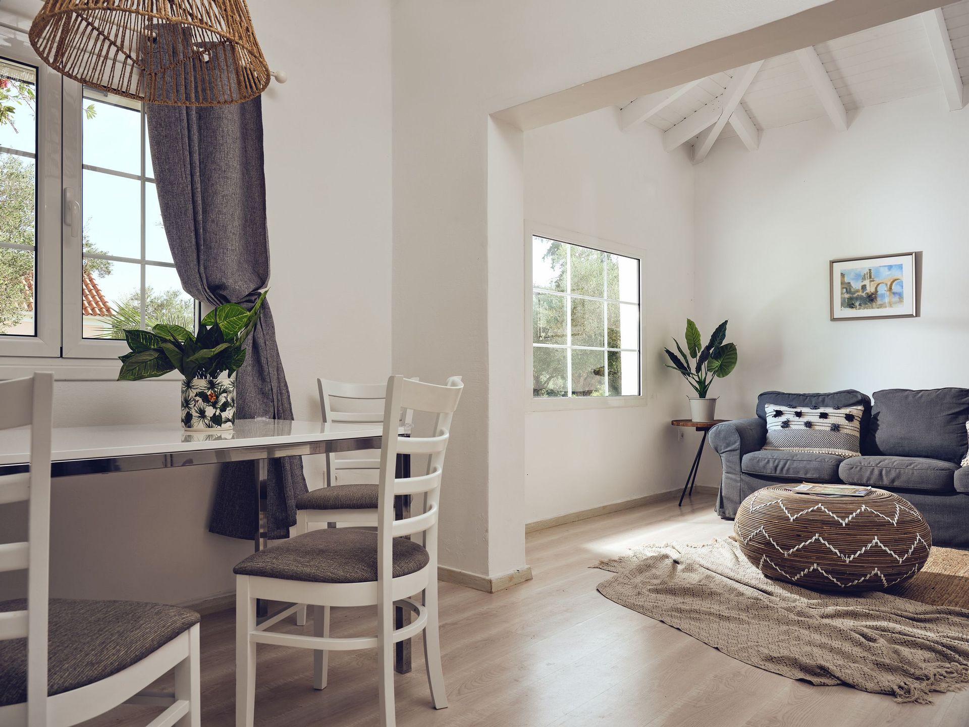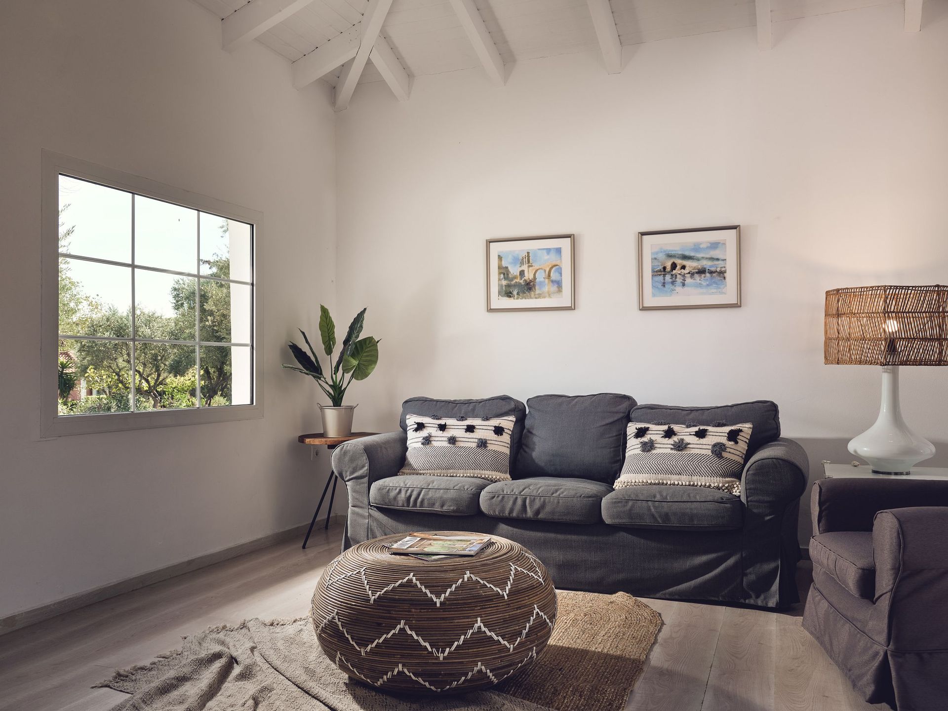 ● Spacious living room with a sofa and a couch that convert into single beds