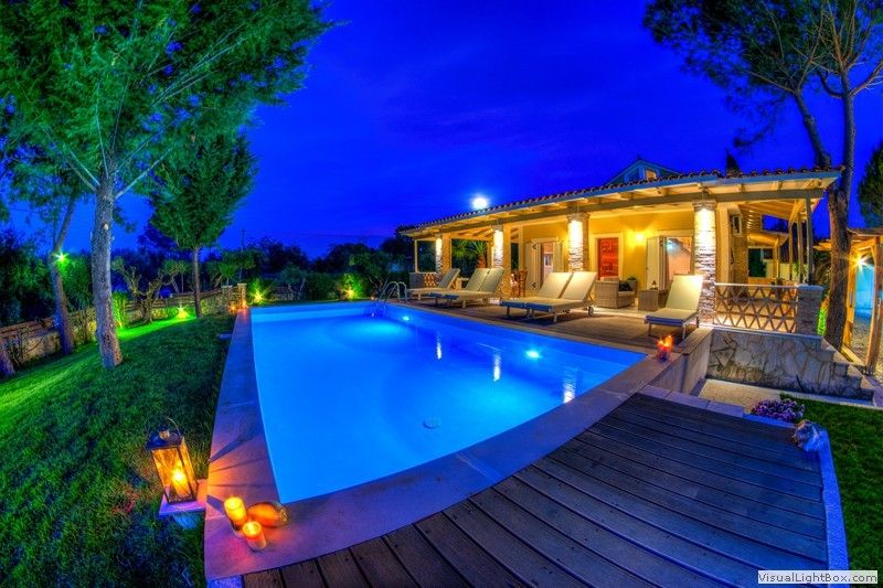 The villa is surrounded by well-kept lawns, olive trees and your own private little orchard which includes lemon trees, orange trees and pomegranate trees. Outside, you will also find a large veranda, a sun terrace, a shaded dining area, a swimming pool with sun loungers and plenty of room for children to play.