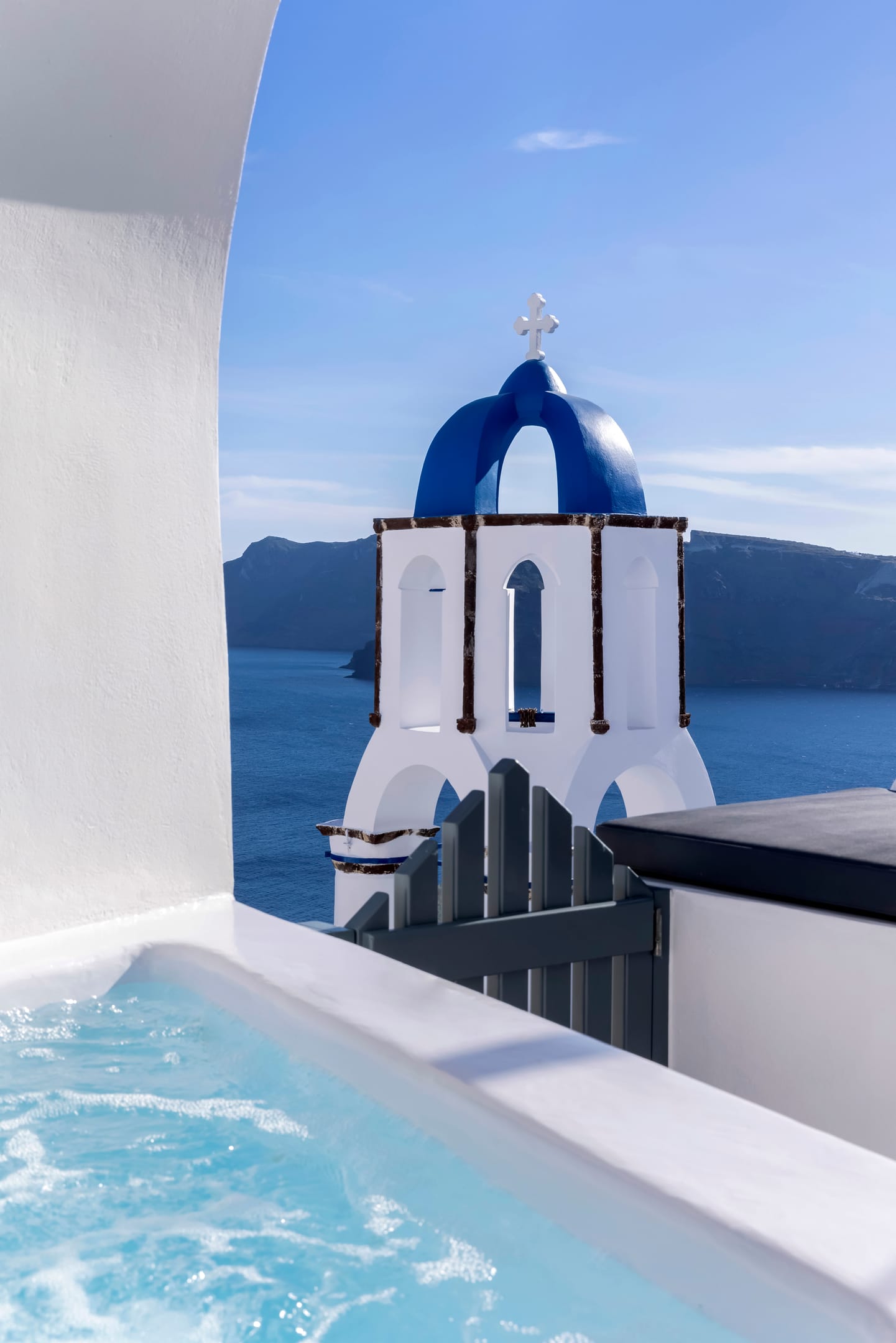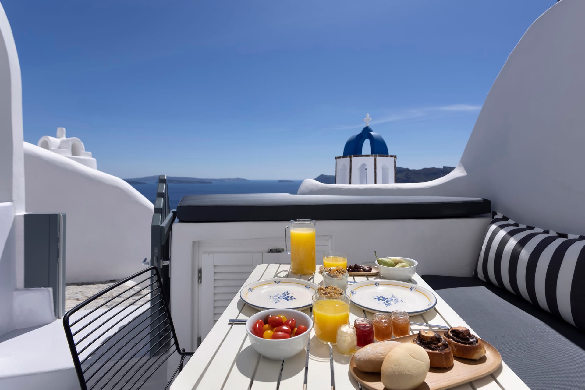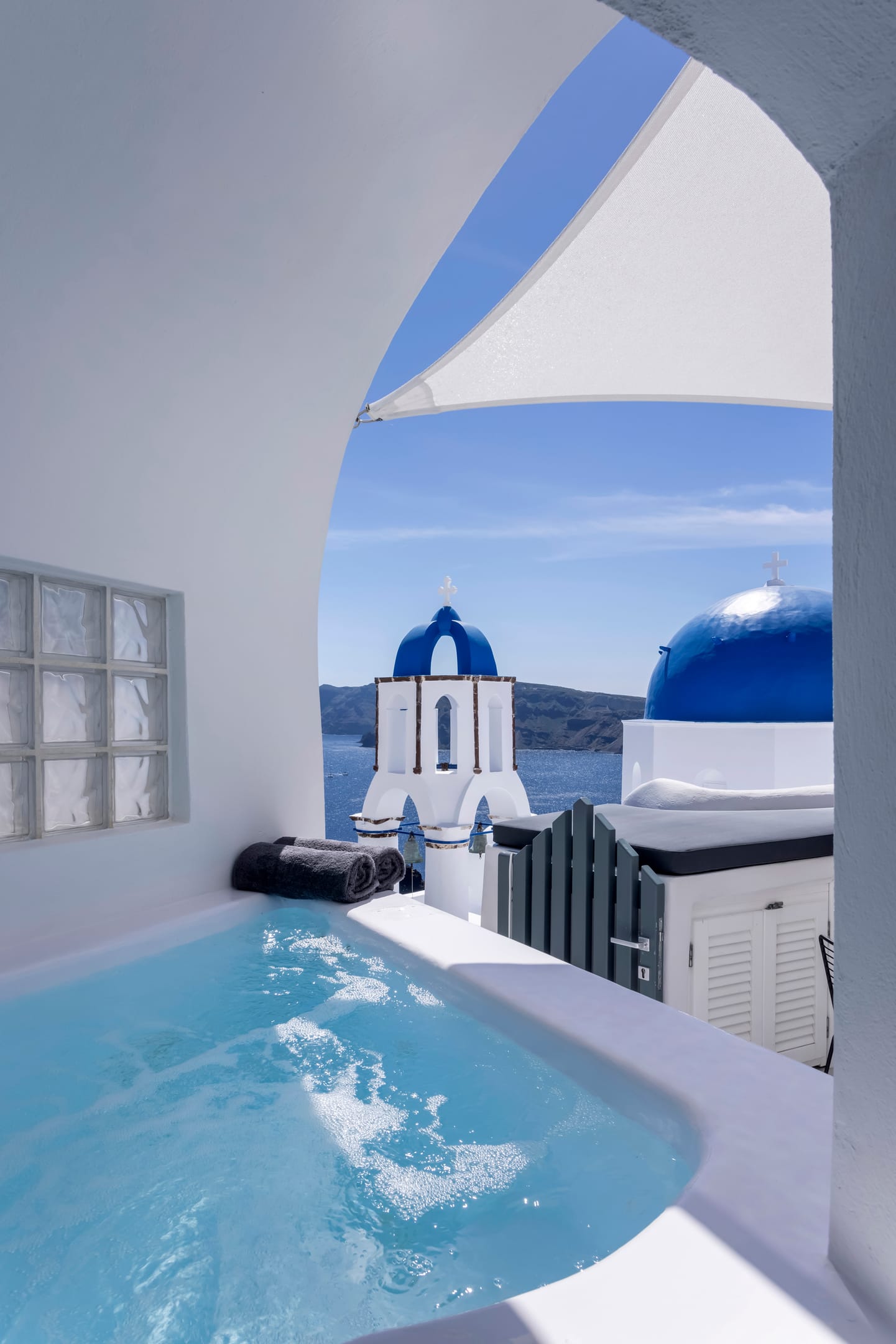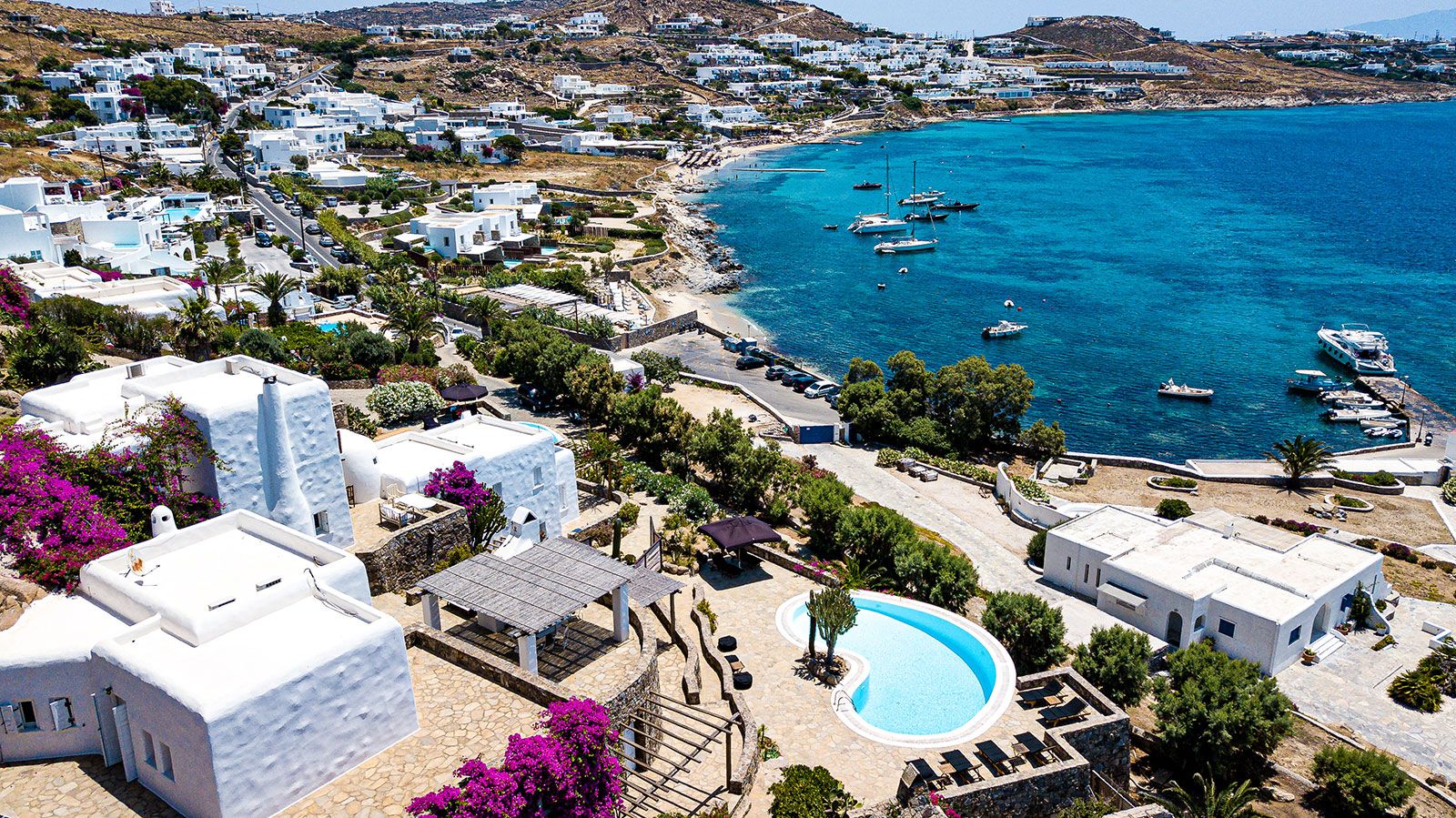 The Villa is spread across two levels both offering access to the private swimming pool. The main entrance of the villa leads to the top floor and the modern living area with windows that reveal the endless panoramic and amazing views of the beautiful Ionian sea.
