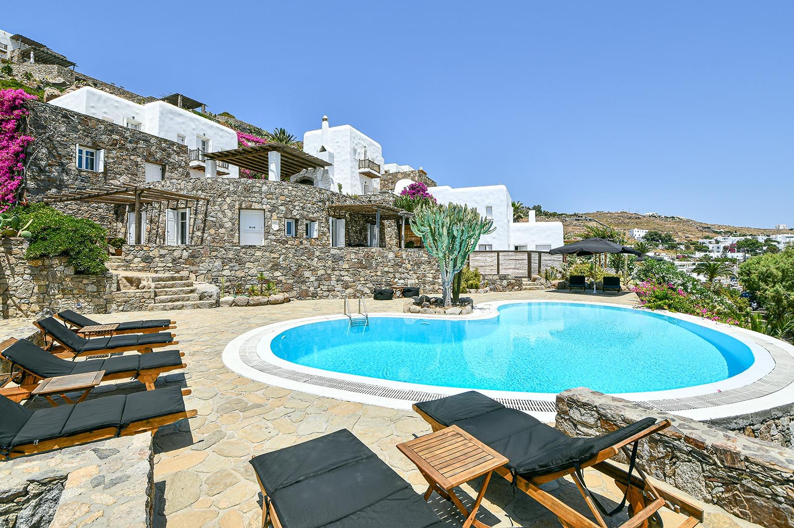 There are sunbeds by the private swimming pool (60m2) and a wooden stylish and fashionable outdoor bed. The barbeque stands next to the pool area where you can enjoy day and evening meals.