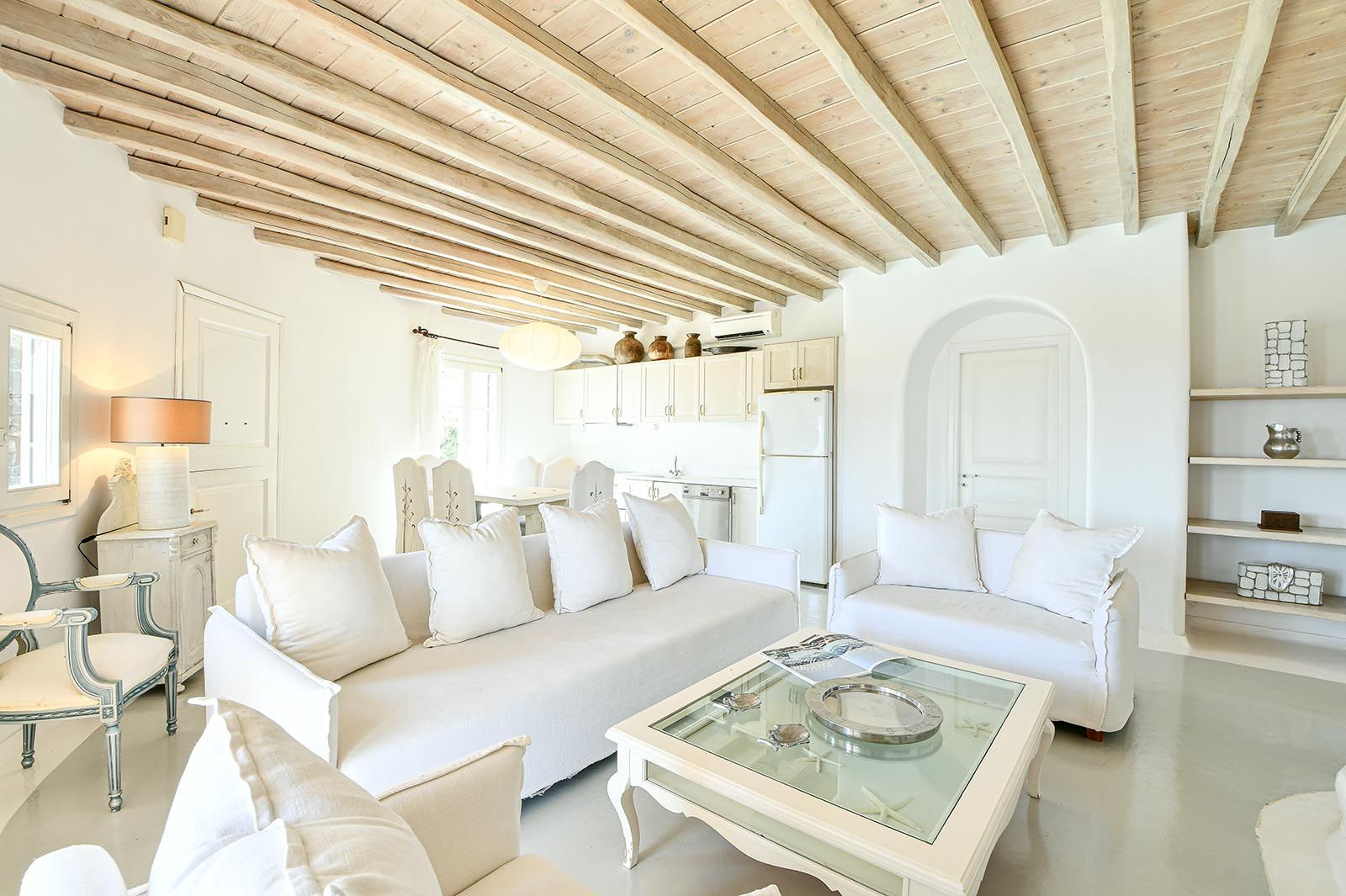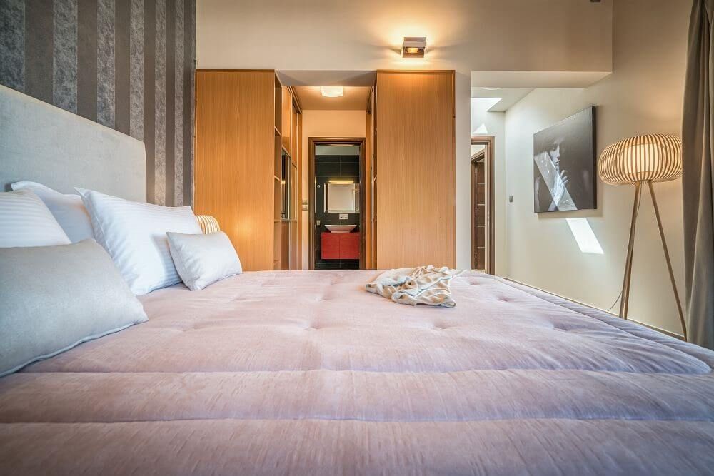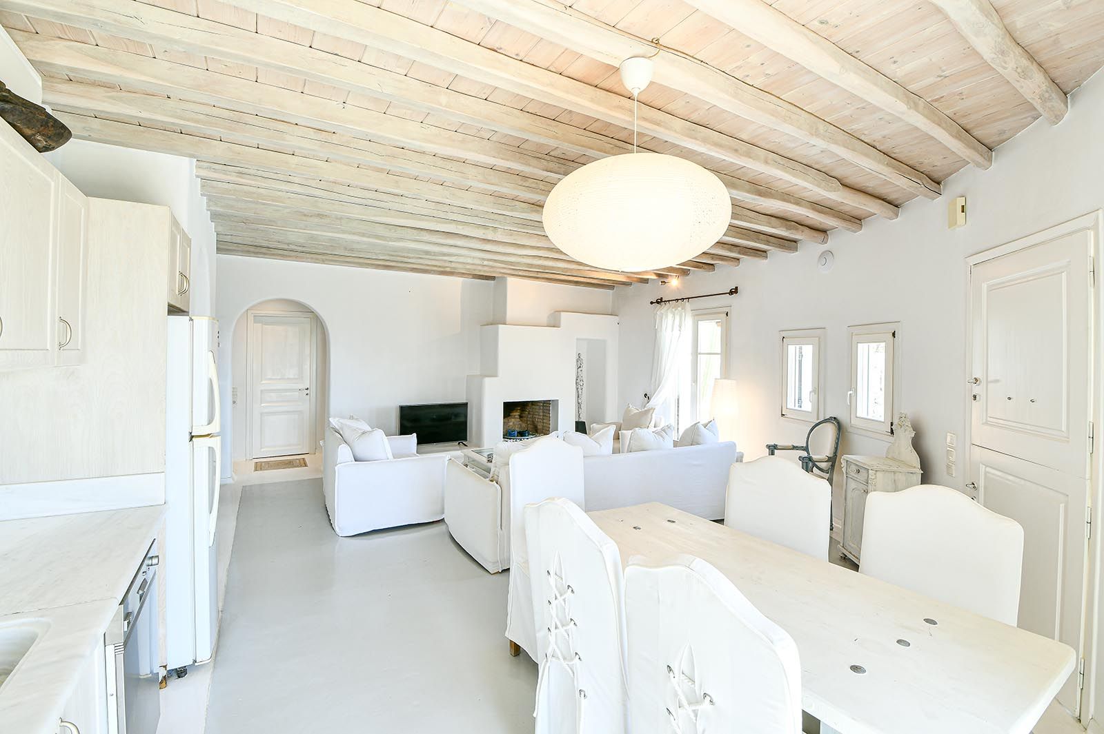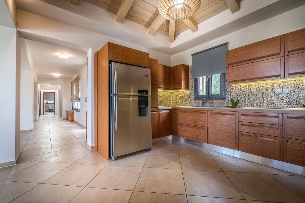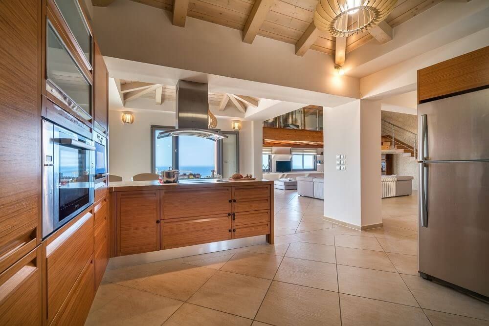 Frank villa features a spacious living room with a wooden staircase that leads to an open sizeable loft comprising of two double sofa beds that can be used as a sleeping area as well, a contemporary spacious kitchen fully equipped with modern stainless steel appliances, a dining area and the 3 main bedrooms.