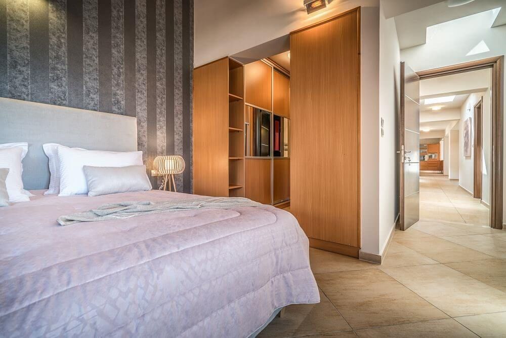 Frank villa has a total of 280 m2 which can comfortably accommodate up to 14 guests and consists of 4 main bedrooms, a cozy loft, an open plan space can be used also as a sleeping area and 3 bathrooms.