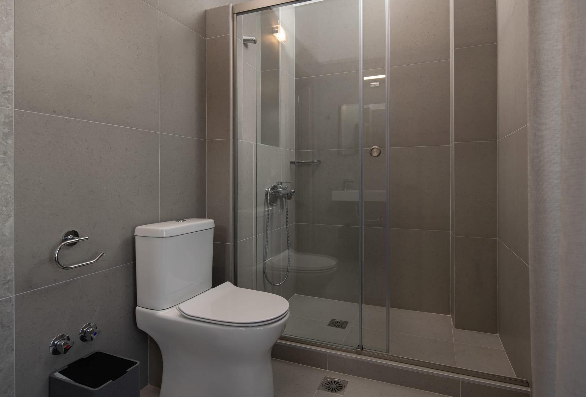 ● Two bedrooms with twin single beds (that can be combined into queen-sized ones) which share a bathroom with a shower