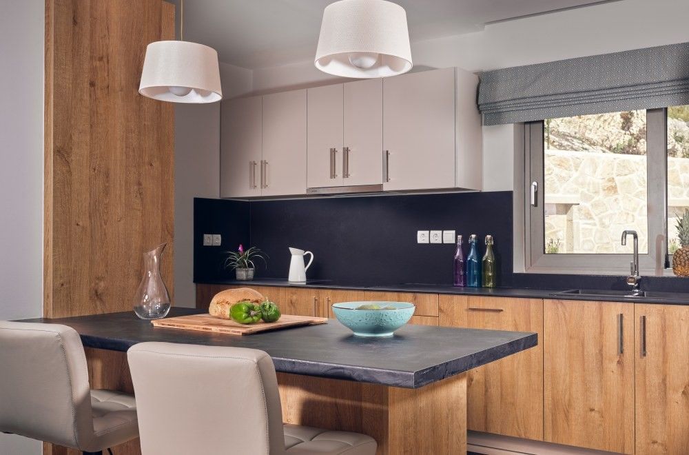 Roberto II villa measures an impressive 235 square meters and can sleep up to 8+2 guests. The villa is spread on two levels: on the ground floor, there is a tastefully decorated, open-plan living room, perfectly combined with the kitchen and the dining area. There is also a bathroom with a shower and a furnished veranda with direct access to the swimming pool. On the second floor, the guests will find two master bedrooms with queen-sized beds and private bathrooms (one with a bathtub and the other with a shower), and two bedrooms with twin single beds (that can be combined into queen-sized ones) which share a bathroom with a shower. The guests will certainly delight in the accommodation offered, as luxury is combined with a wonderful view of the sea and the pool from every bedroom.