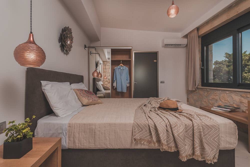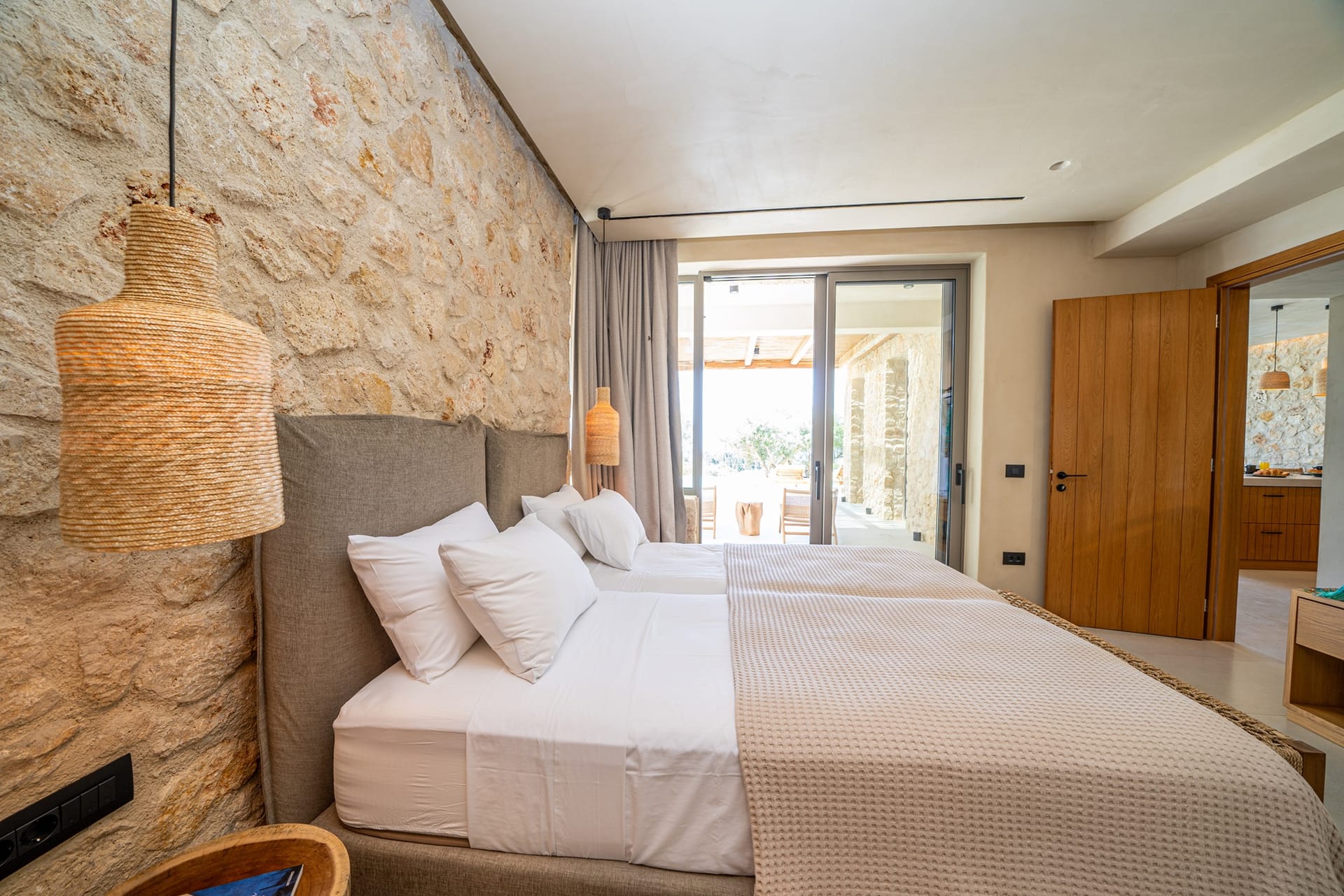 The two-story Villa measures 150 square meters and can sleep up to 8 guests with ease. Upon entering the villa through its main entrance on the ground floor, the guests will find two bedrooms, one with a queen-sized bed and an en-suite bathroom and the other with two single beds (that can be combined into a queen-sized one) and an en-suite bathroom. There is also a spacious living room, a fully-equipped kitchen and an extra bathroom.