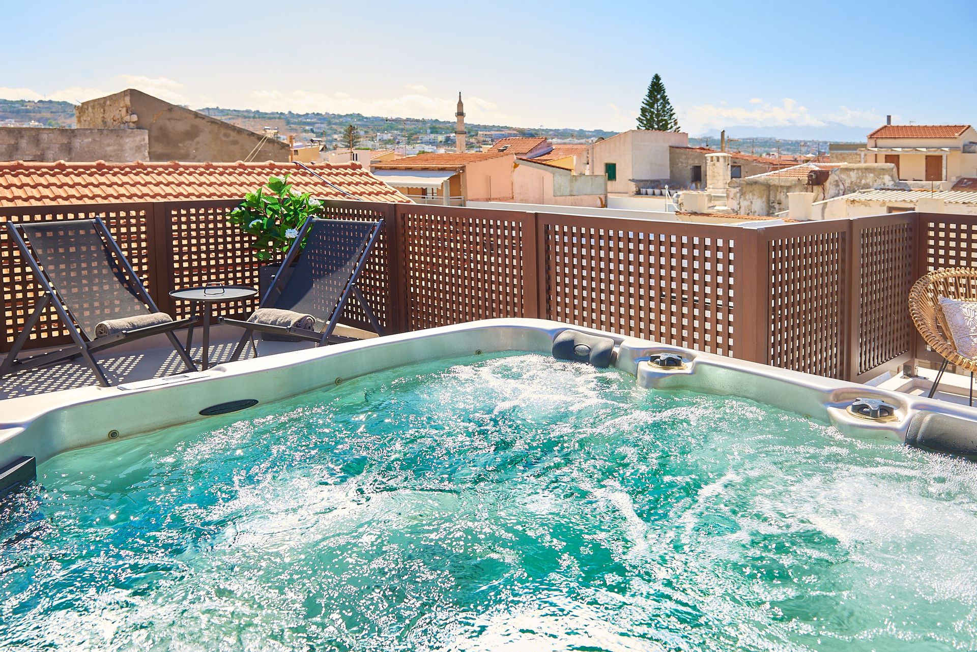of a private outdoor jaccuzzi.Wake up and admire the sunrise,gaze at the sea in front of you.
