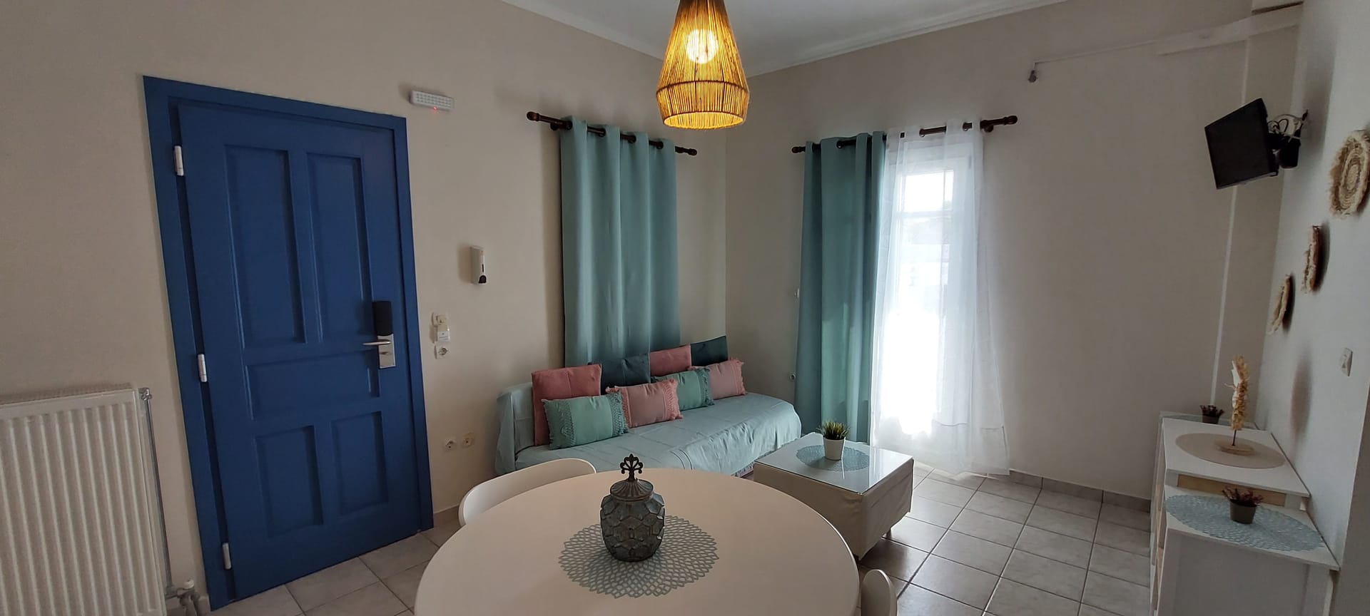 One-Bedroom Apartment ιs a mini studio 37 m2 with 1 double- bed bedroom,(separate from kitchen/living room), fully equipment kitchen to make a breakfast, to drink coffee or to cook, dining room, 1 veranda, and