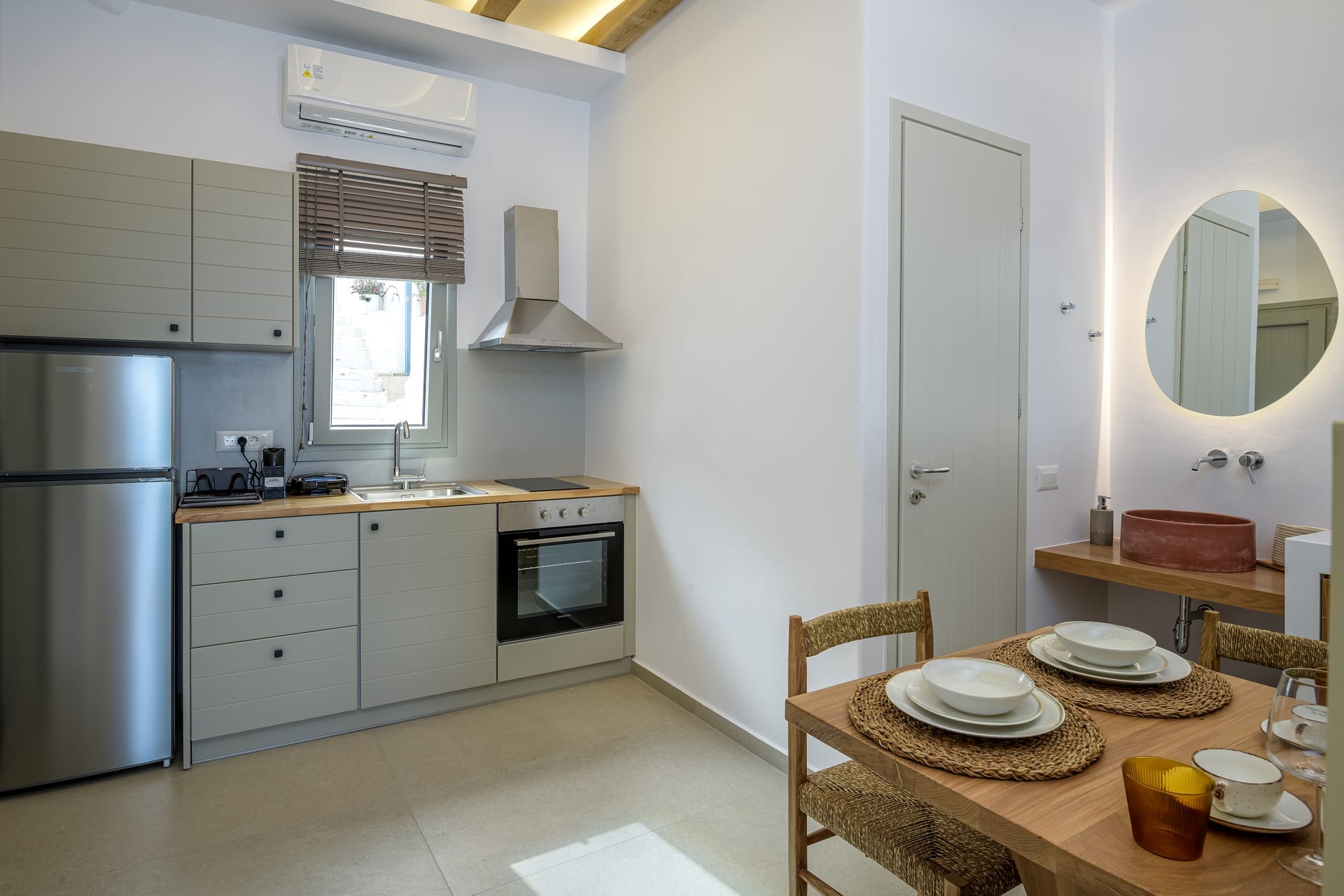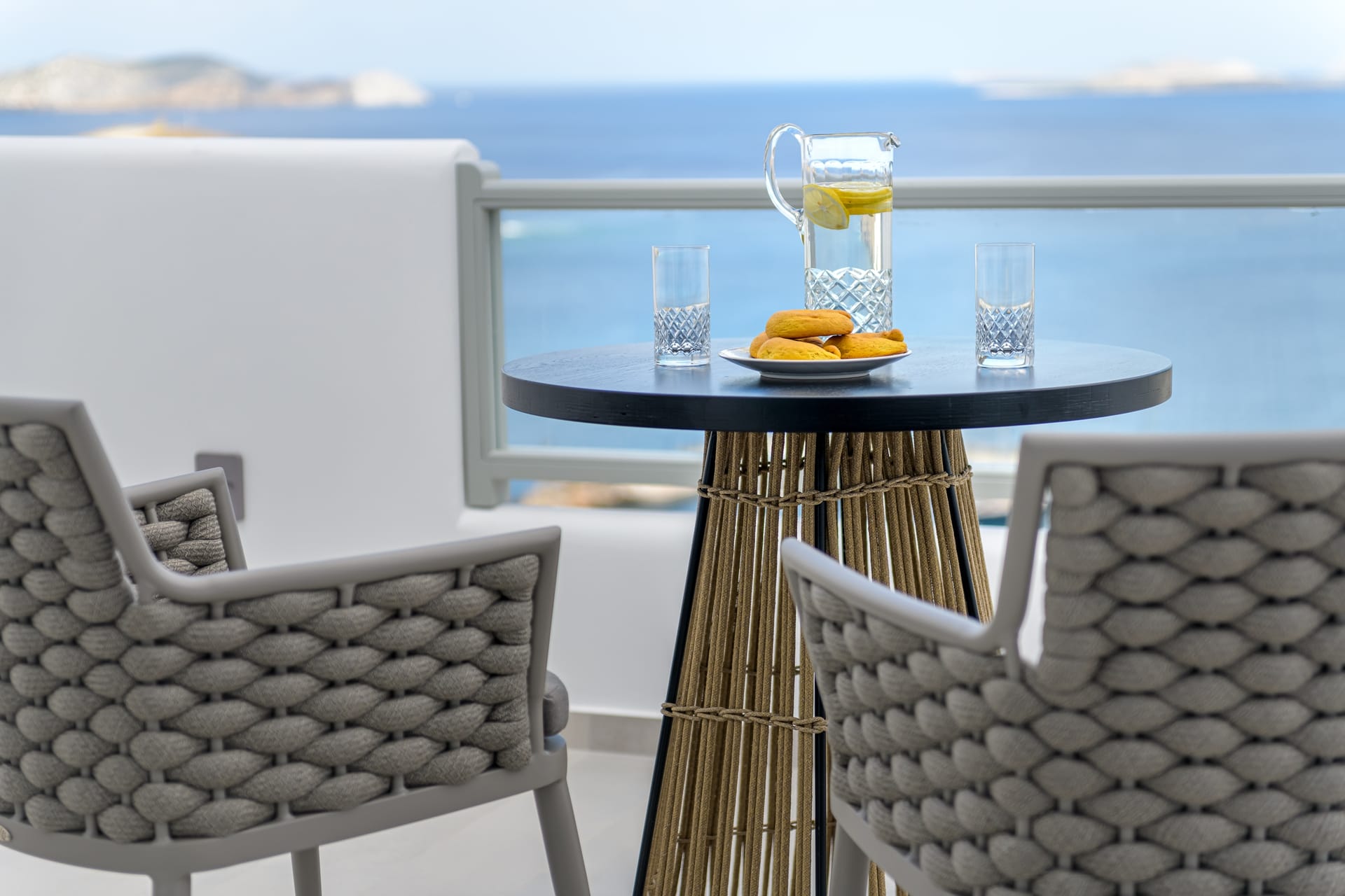 There is also a spacious terrace with an outdoor seating area, so guests can enjoy their morning coffee or an evening drink with a dreamy view of Chora and the open sea at the same time.