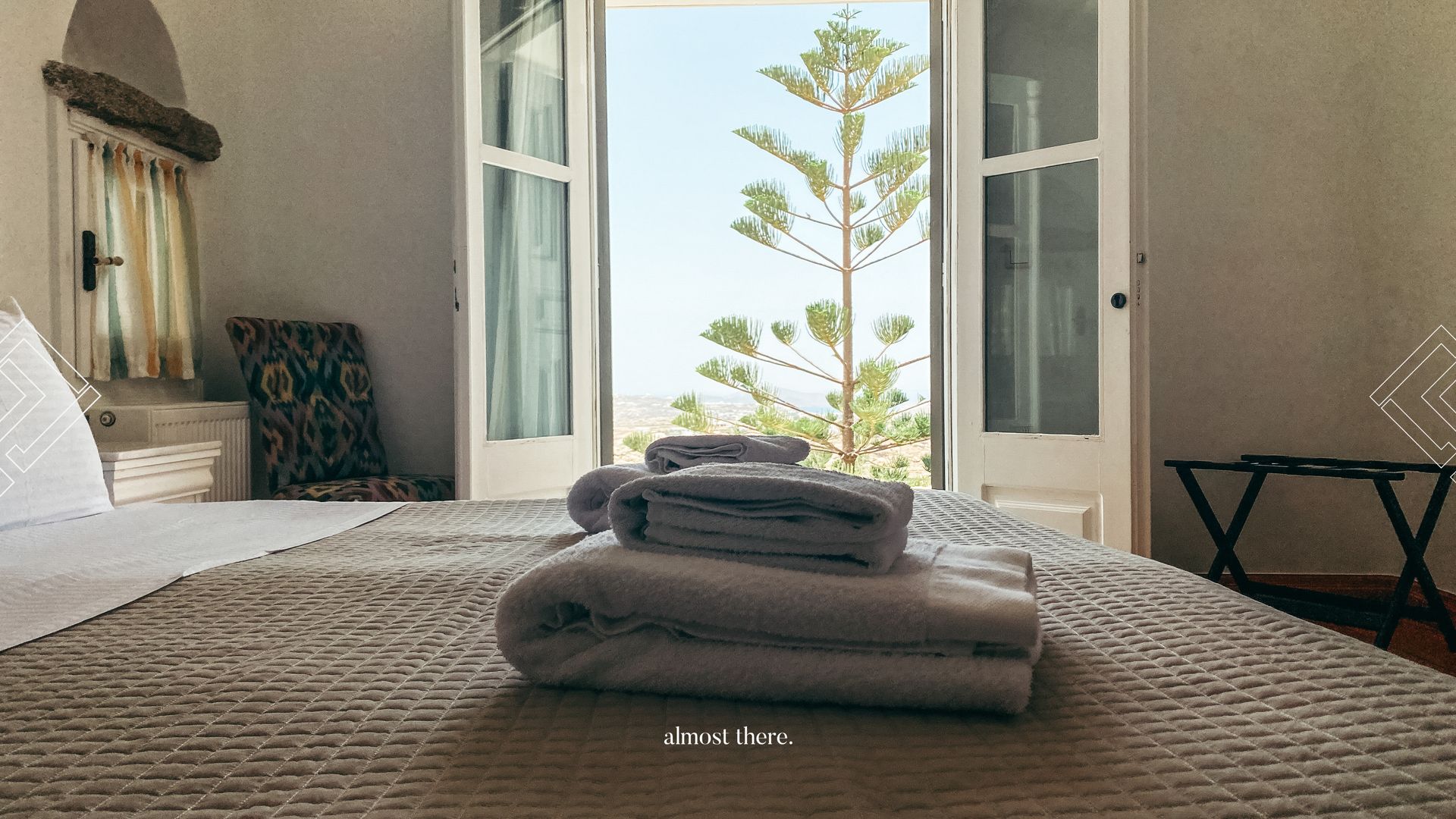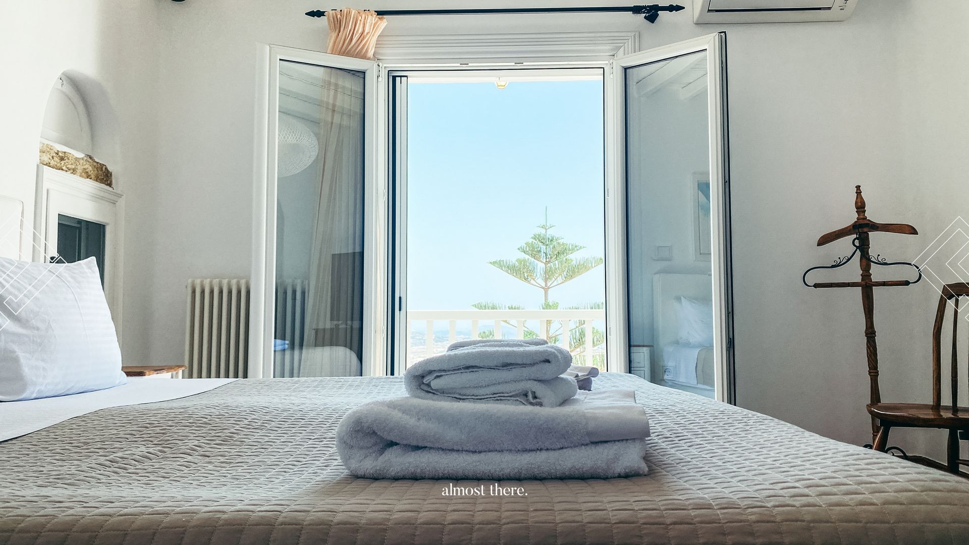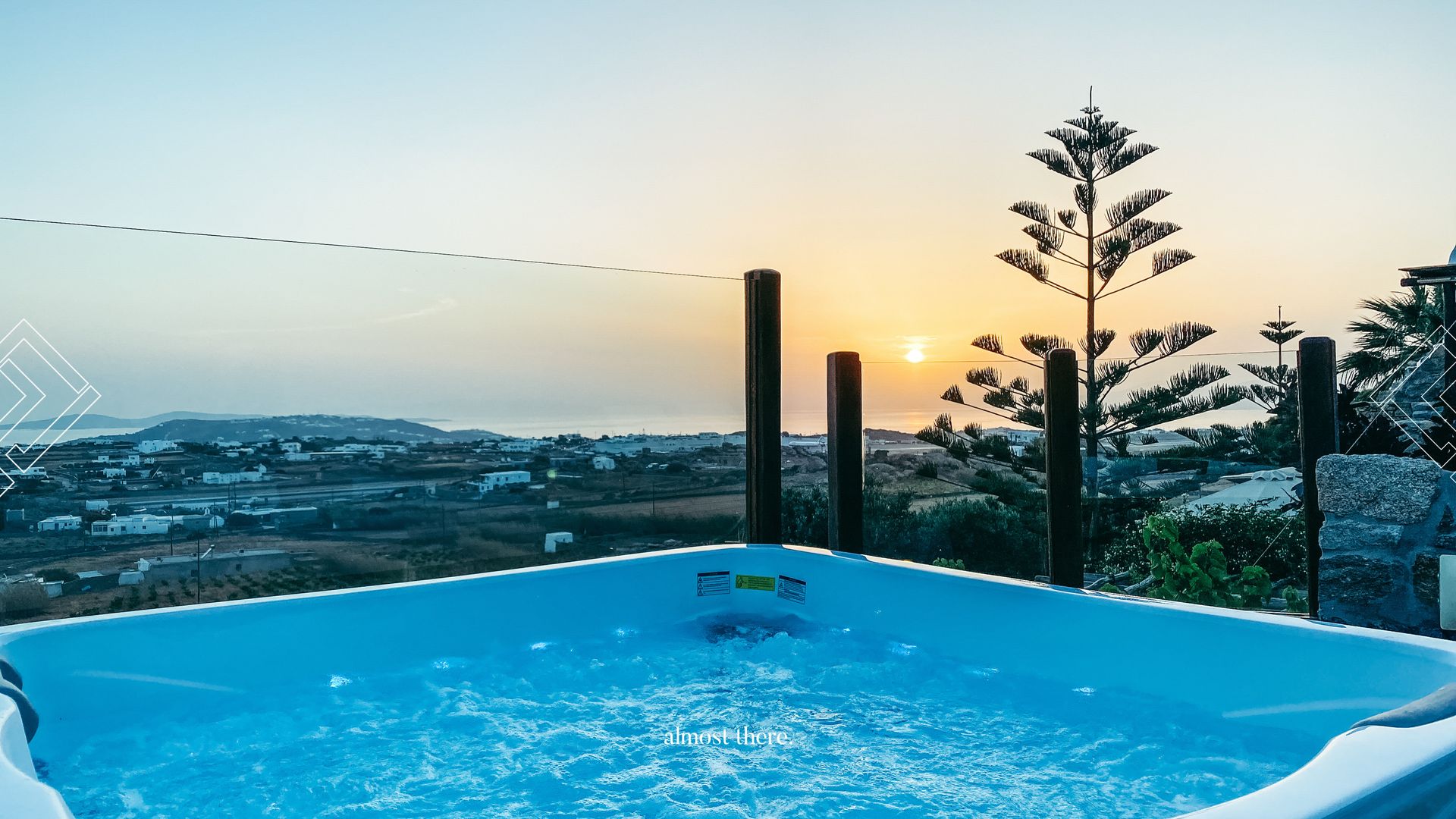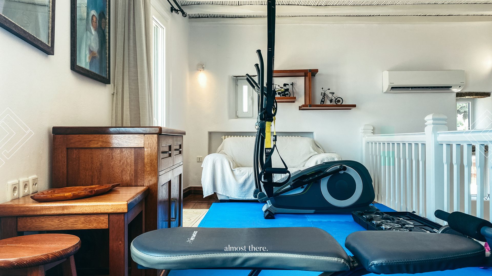 On the ground floor you find the main house, with the kitchen, living room and dining room in a spacious common area, as well as two bedrooms and two bathrooms that can take you outside to relax on the sunbeds or outdoor bed. On the first floor, you will find a private gym, next to the perfect sunset balcony, as well as the master bedroom. Your guests can find their privacy right below the pool, where 5 rooms with private balconies are located.