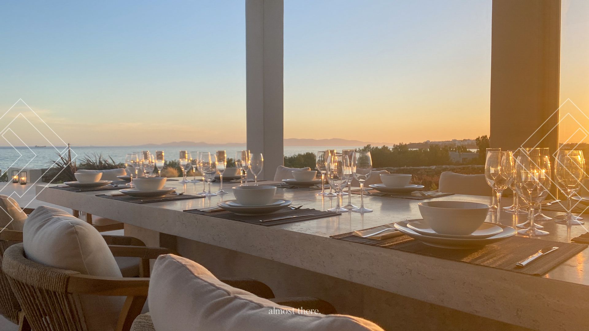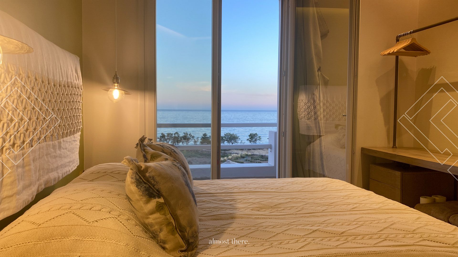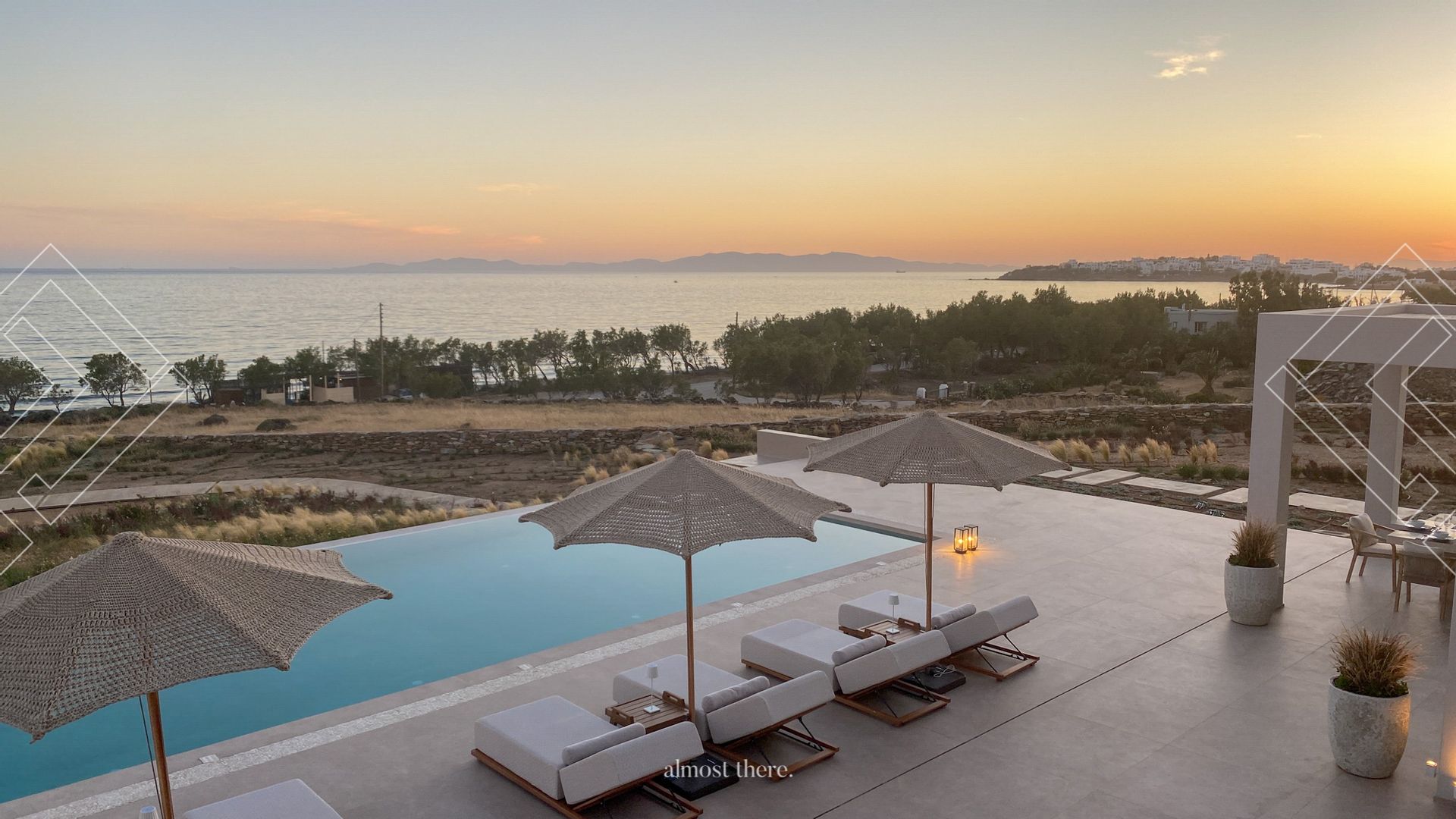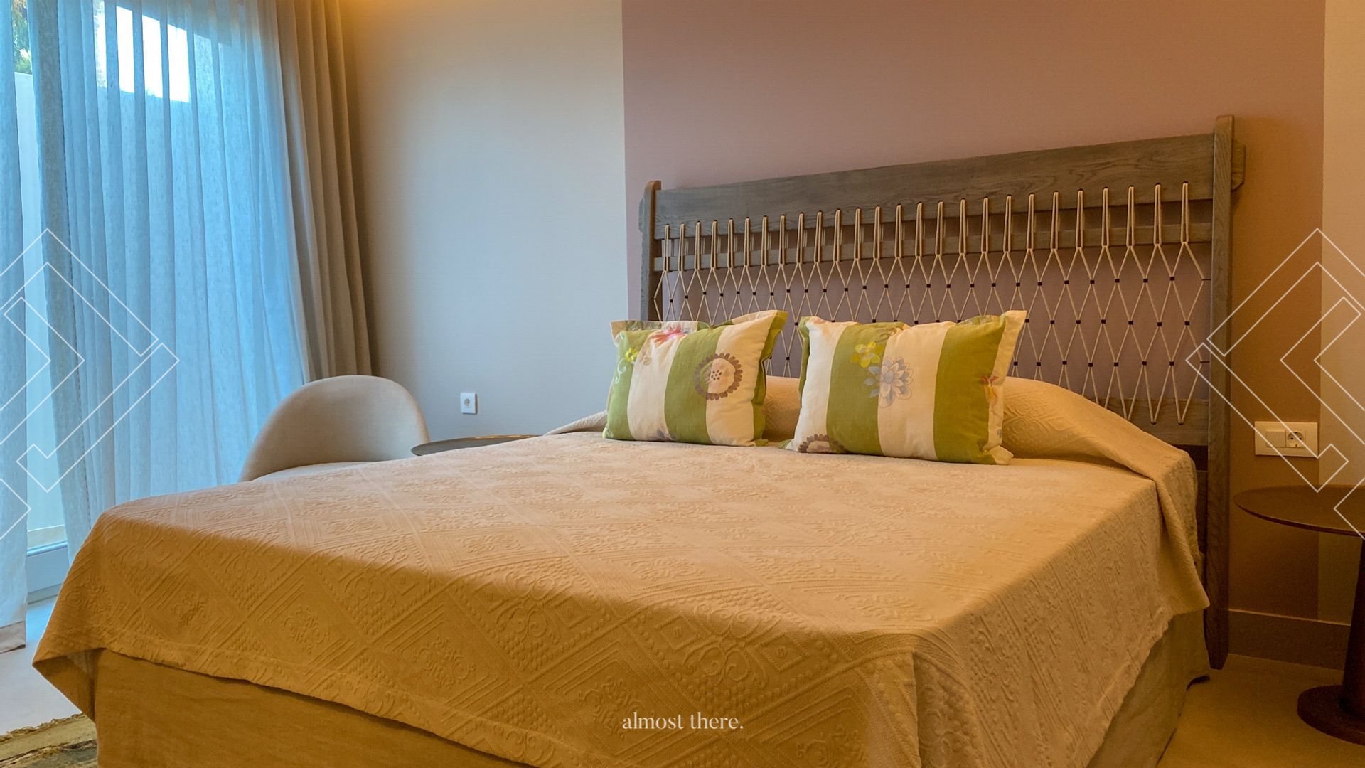 On the ground floor, you will find the master bedroom along with the fully equipped, wide-benched kitchen and the spacious living room. The whole aesthetic is carefully directed by the large windows, which allow you a constant view of the sea and sunset. Take a quick stroll outside, relax at the minimal exterior as the sunset reflects on the infinity pool. Make sure to take your breakfast on the large marble banquette outside the kitchen!