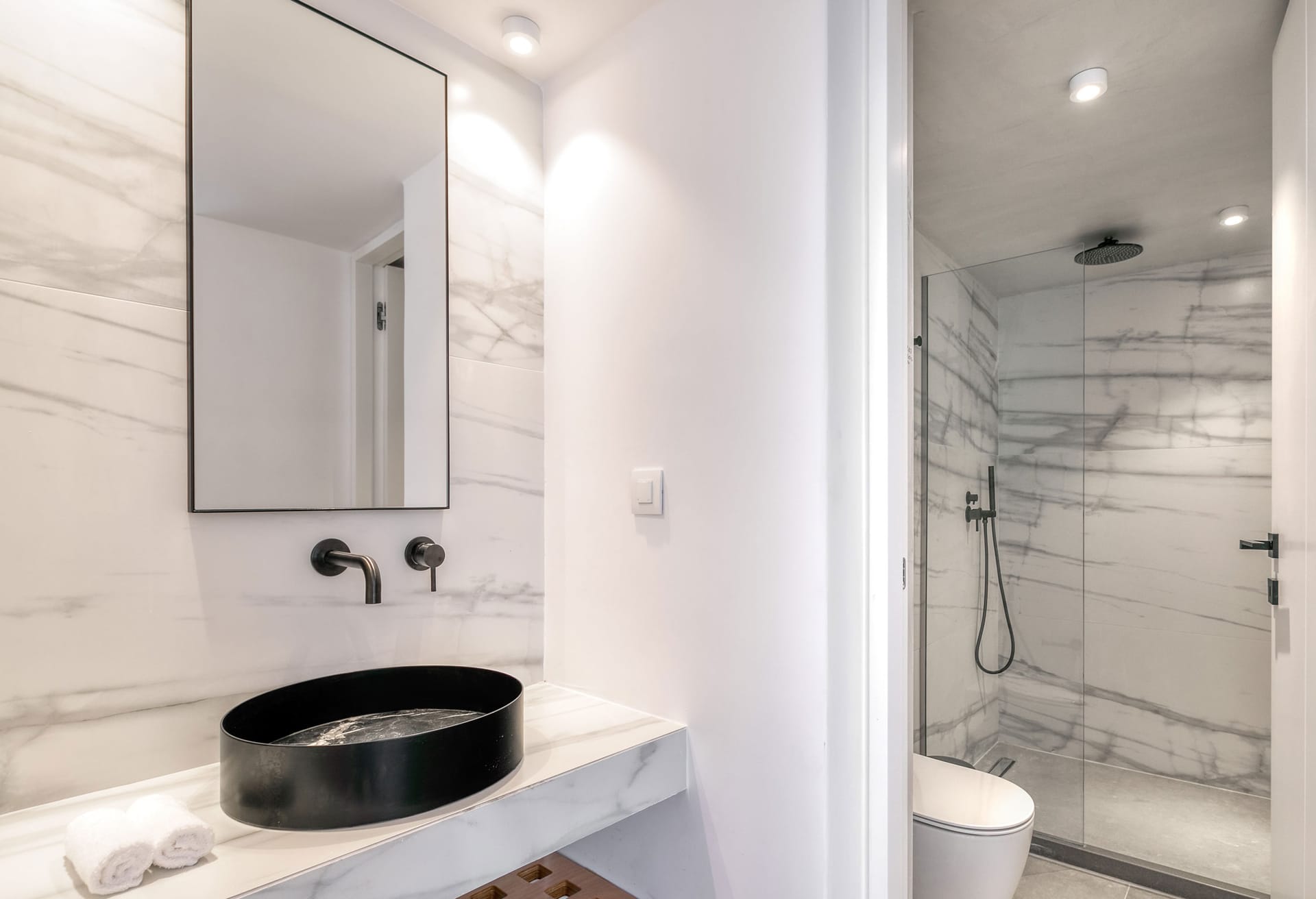 Unfolding in two levels, in a spacious setting of 65sq.m., the Grand Maisonette features a stylish open plan living room, a minimalist kitchenette, an open plan loft bedroom and two luxurious bathrooms with rainfall shower.