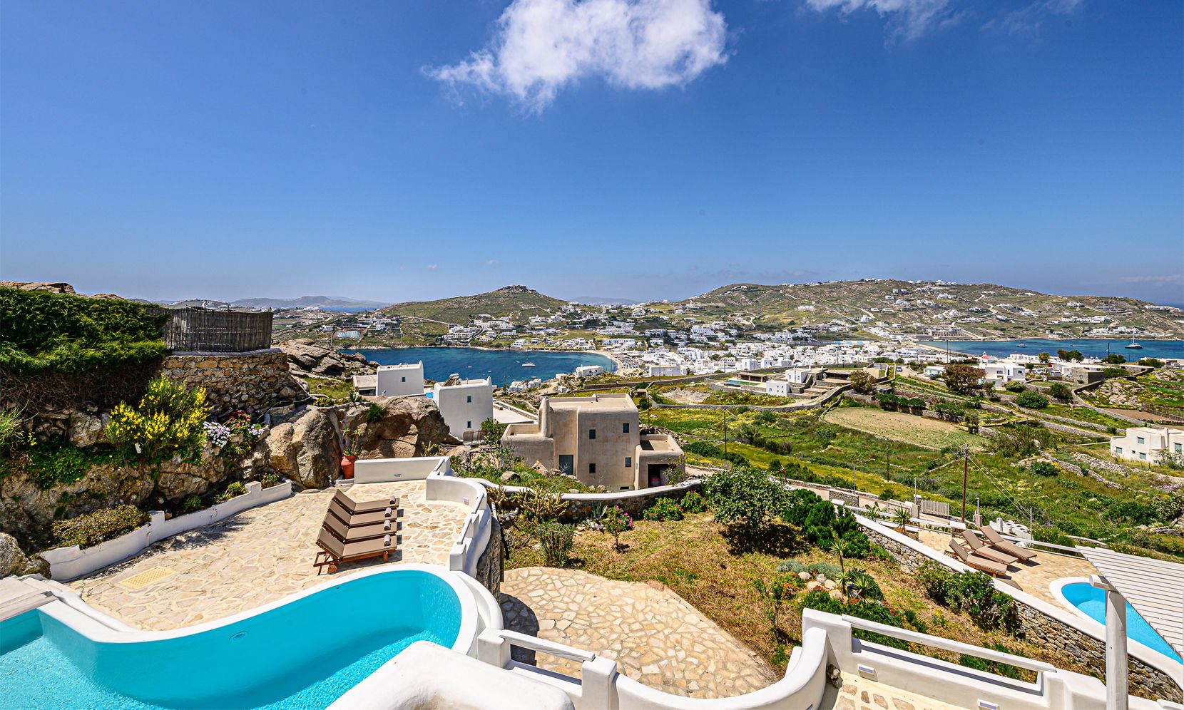 Villa Paloma preads into two levels. At the higher level there is the fully equipped kitchen with dining table, and the living room in open plan with one of the bedrooms and a mezannine bedroom. There is no eye contact between the two sleeping areas. In the lower level there are the shared bathroom and the master bedroom with a private bathroom and heated plunge pool with jets. There are high definition TV sets in the kitchen, the living room and the master bedroom. Satelite TV and Wi-Fi is available.