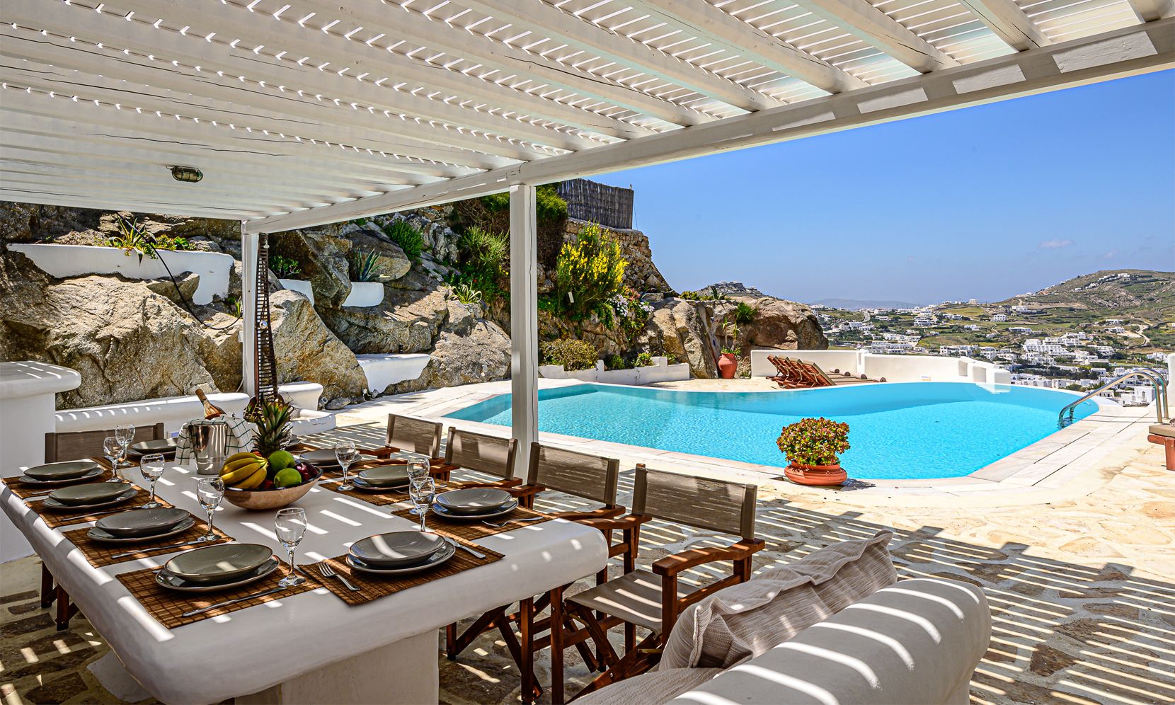 The breakfast is included and it is served in the villa. The guests can choose from the variety of Greek homemade delicacies and enjoy it at the shaded patio or in the indoor dining. Bedding, towels and pool towels are provided and we are happy to provide bathrobes upon request. Toiletries and slippers are featured and there is daily housekeeping.