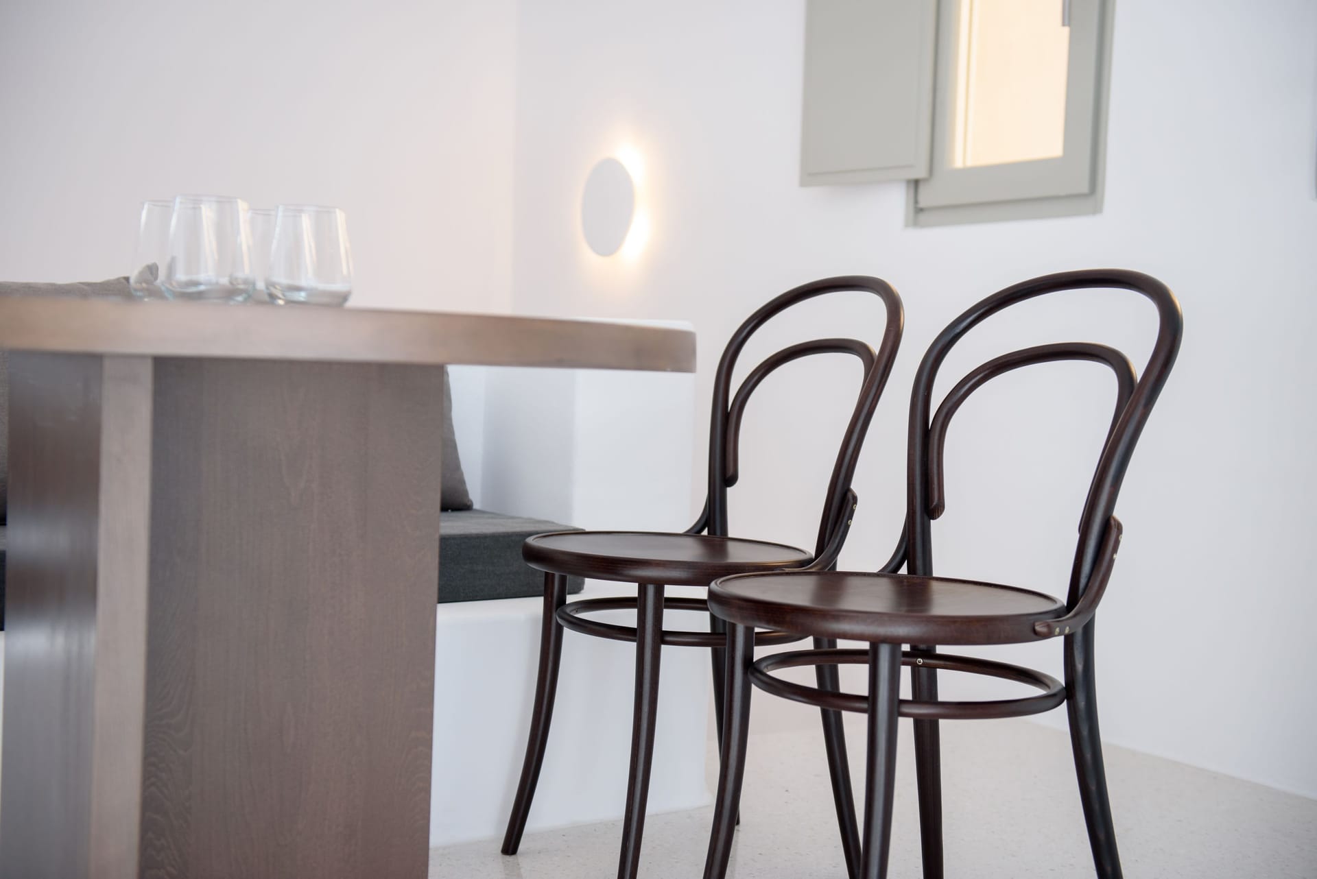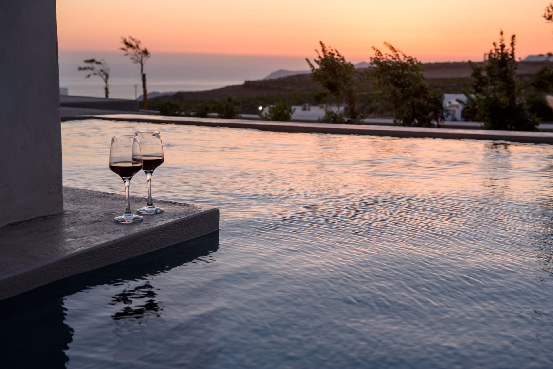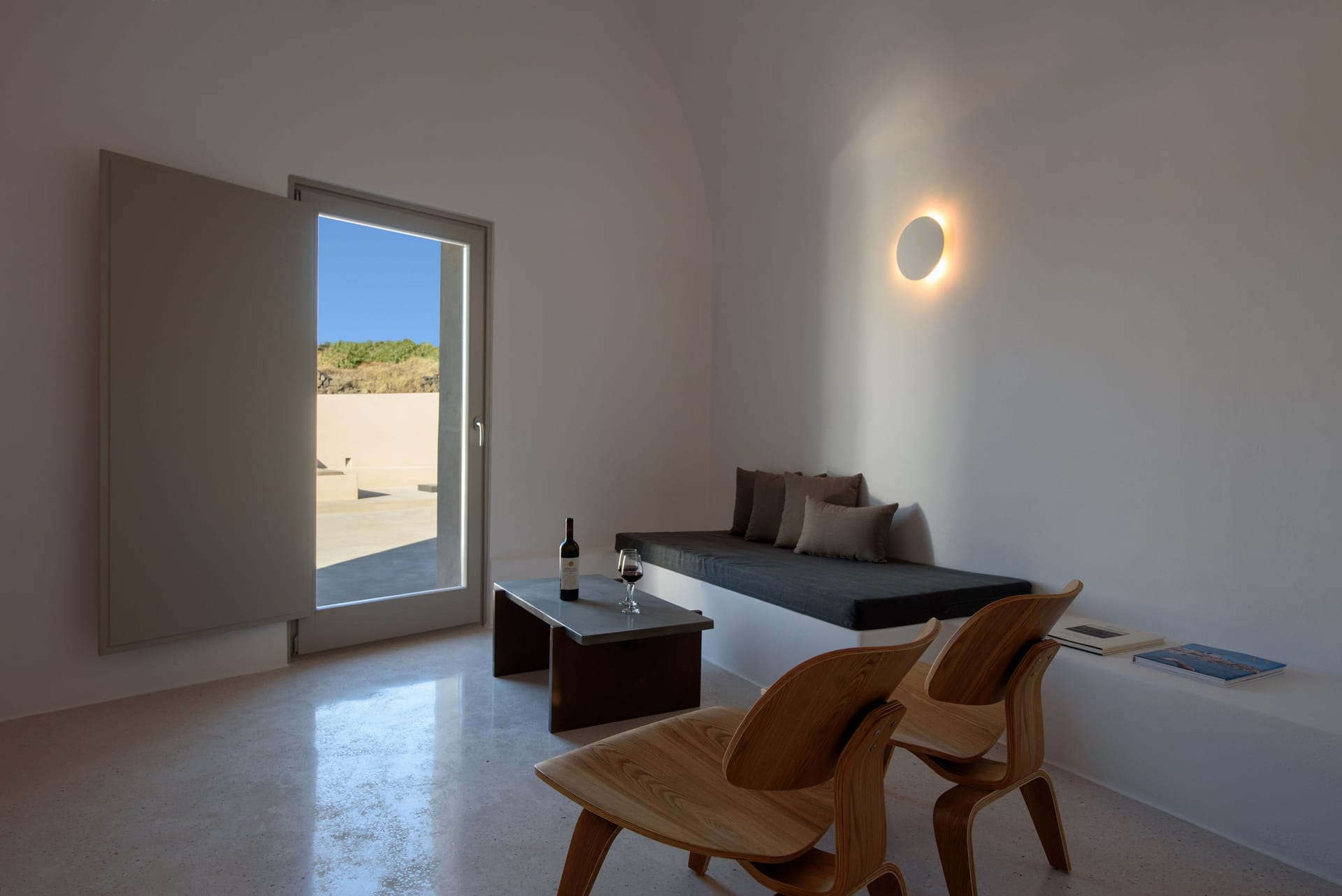 The architect has taken care of all details and we are proud to present a totally private accommodation offering luxurious relaxation and breathtaking views of Akrotiri’s Caldera, Aspronisi island, and a magic Santorinian sunset. Villa Paloma has private entrance and it is totally detached from the other buildings of the complex. It has a private entrance and parking, a private pool and sun terrace with sun loungers, and a patio with an outdoor dining area.