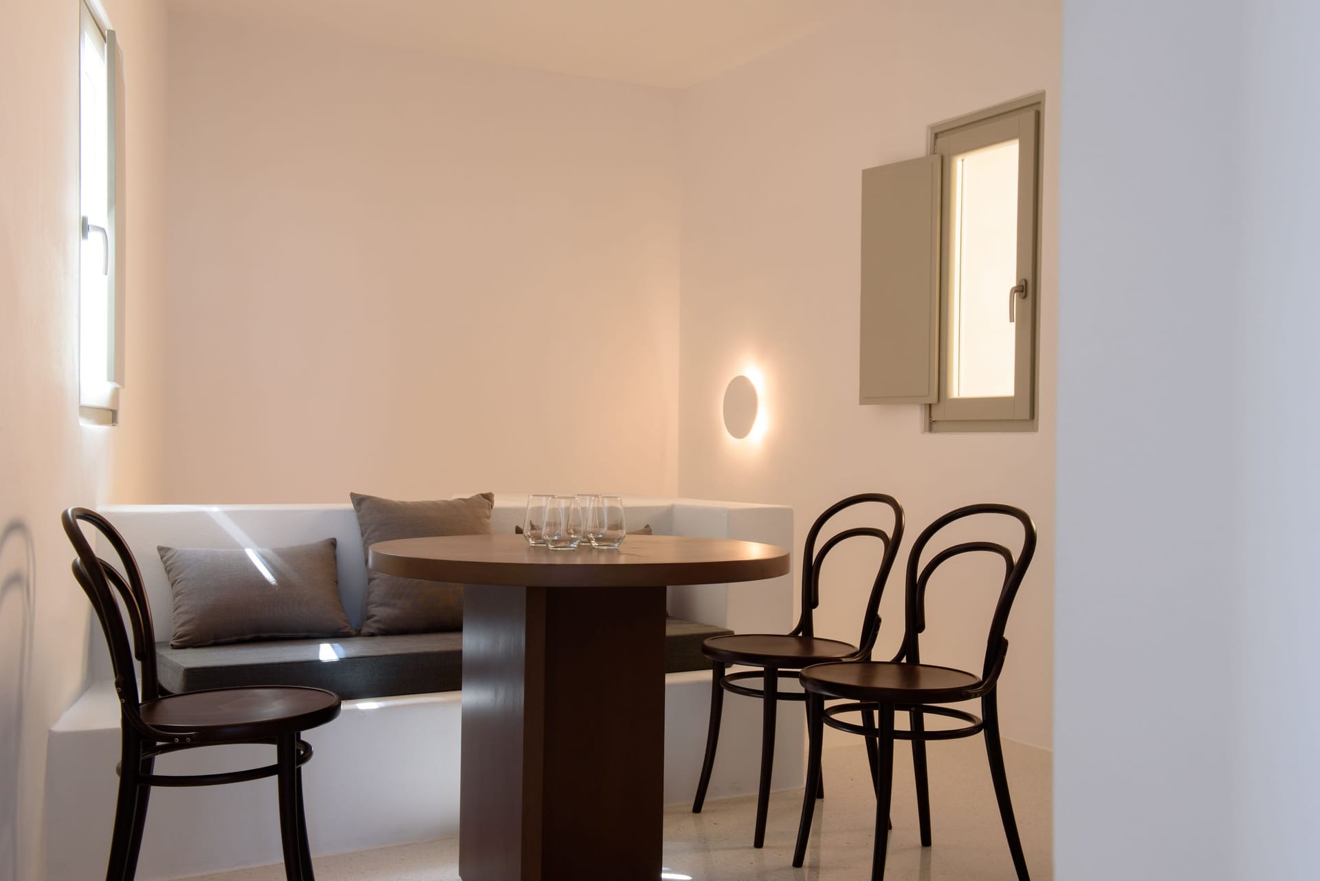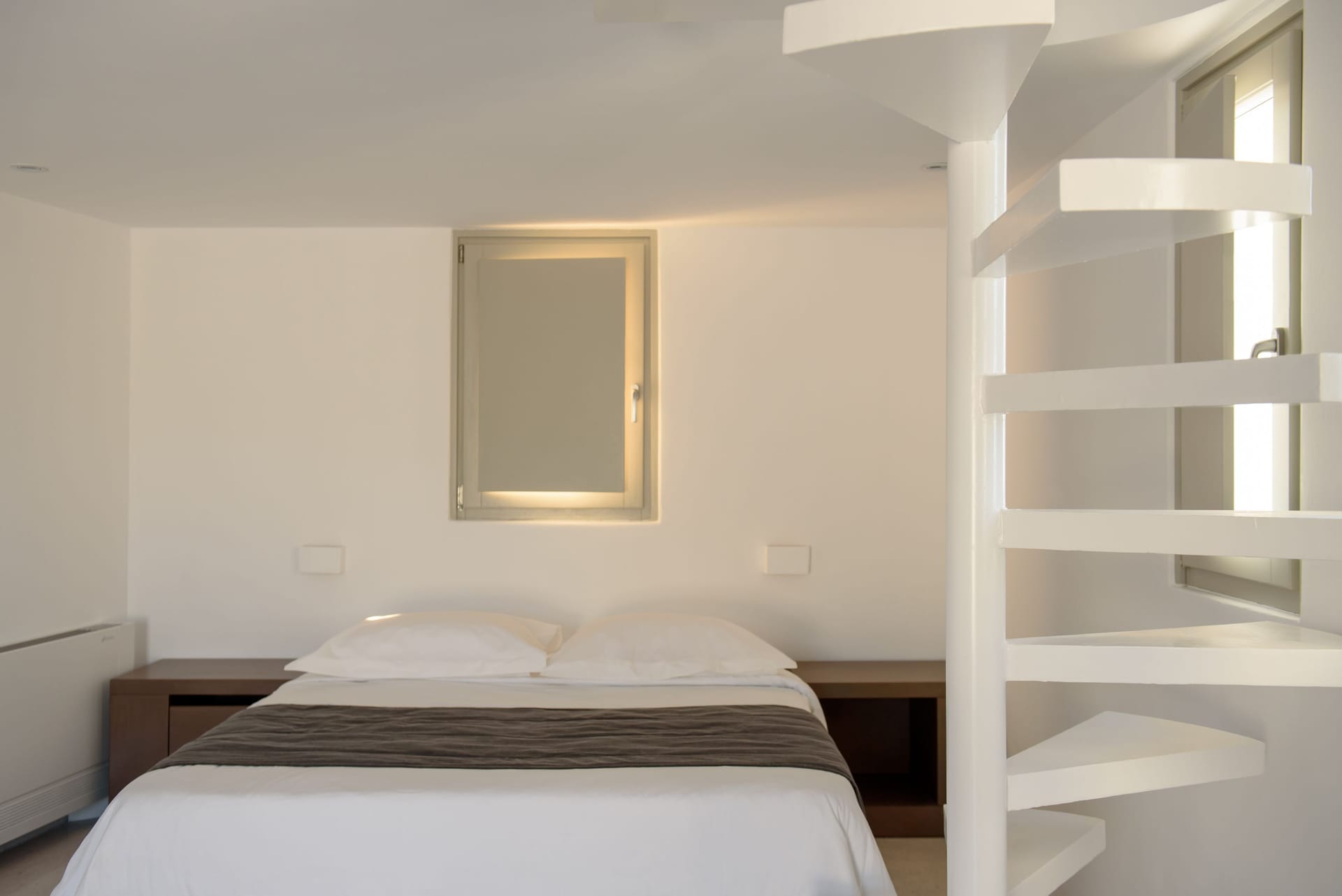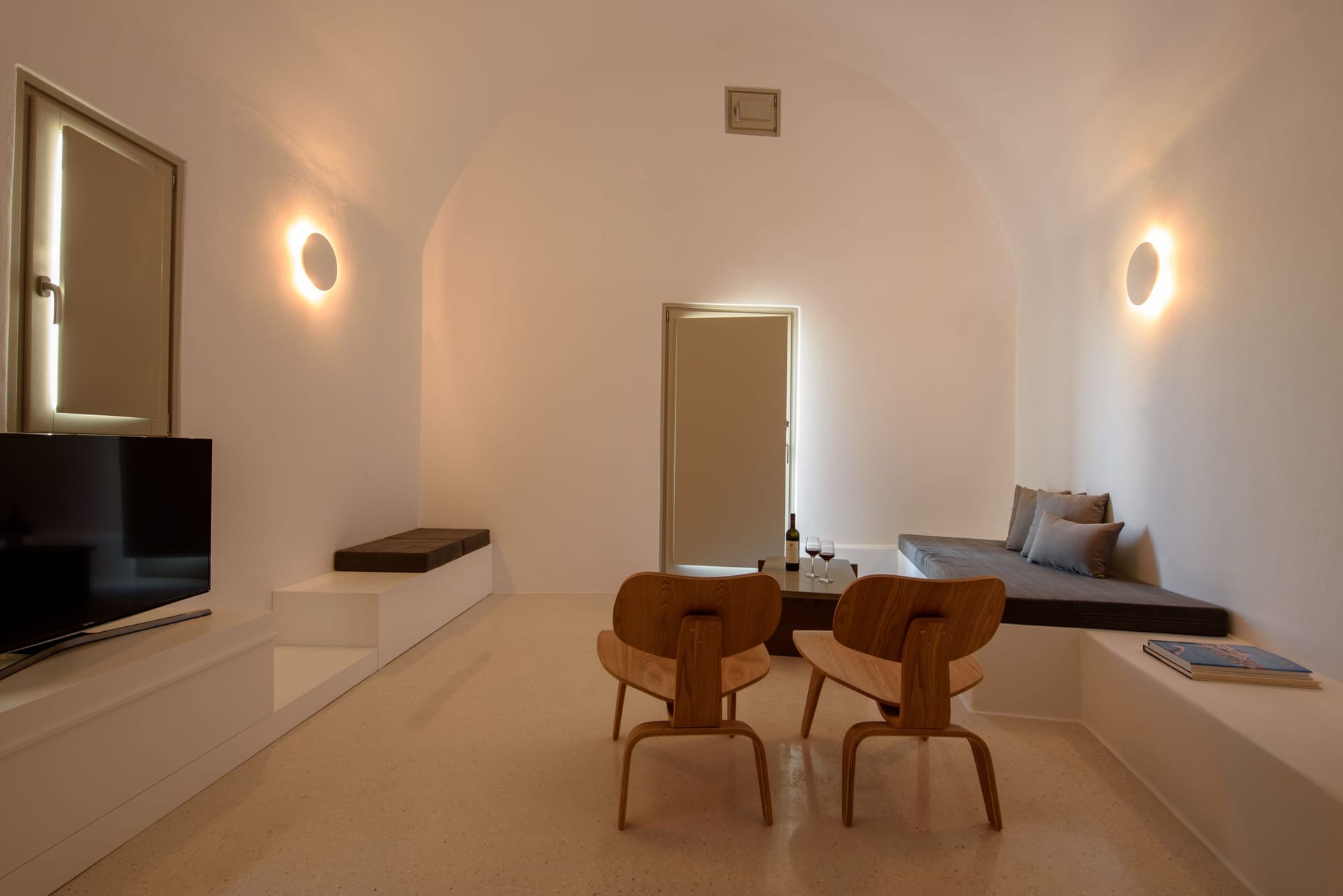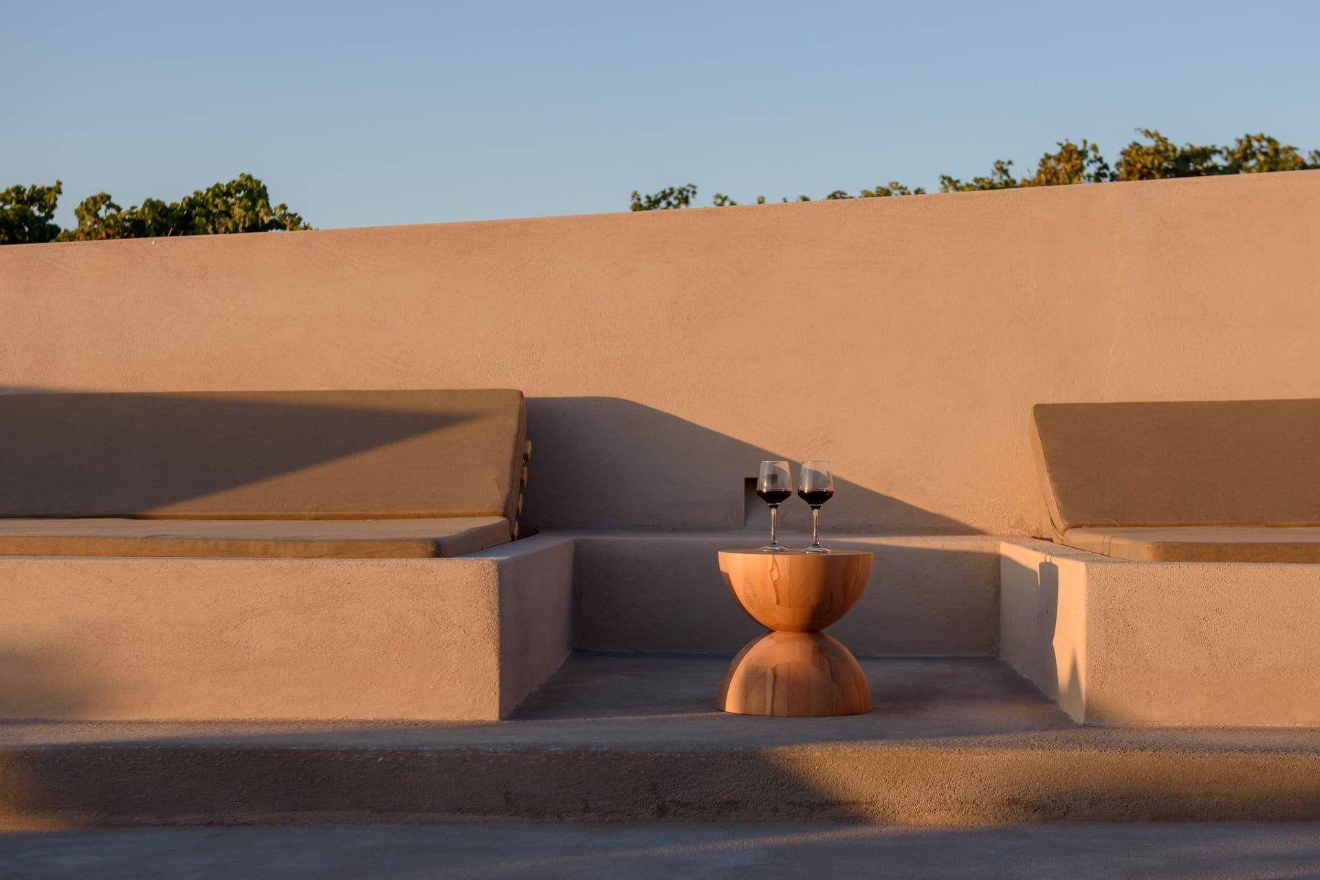 The architect has taken care of all details and we are proud to present a totally private accommodation offering luxurious relaxation and breathtaking views of Akrotiri’s Caldera, Aspronisi island, and a magic Santorinian sunset. Villa Paloma has private entrance and it is totally detached from the other buildings of the complex. It has a private entrance and parking, a private pool and sun terrace with sun loungers, and a patio with an outdoor dining area.
