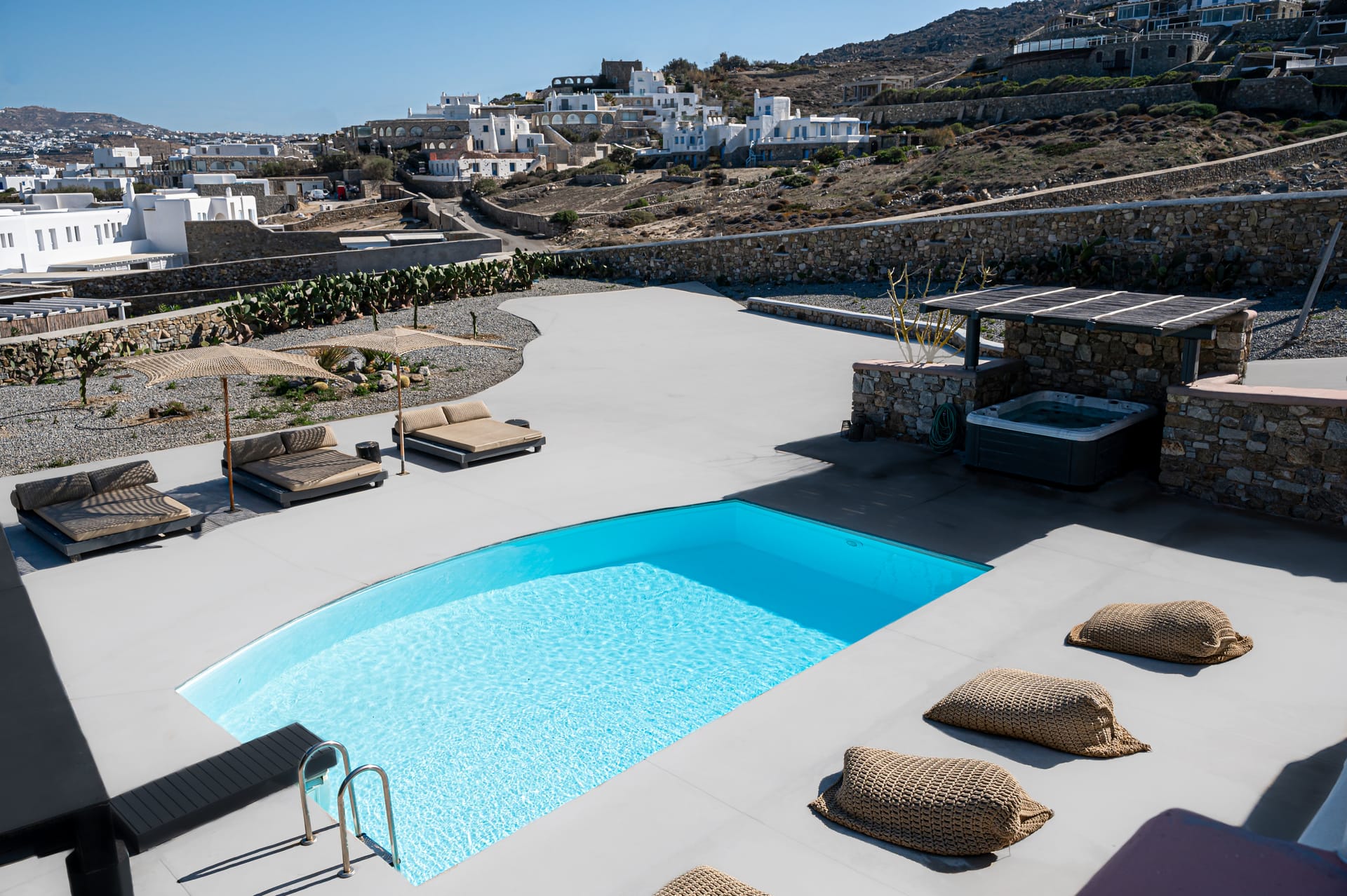 A 10min drive will get you in the middle of everything in the famous socialite and vibrant life in the old town of Mykonos, a 12 min drive to the famous beach of Psarrou and a 5 minutes drive to Ornos beach.
