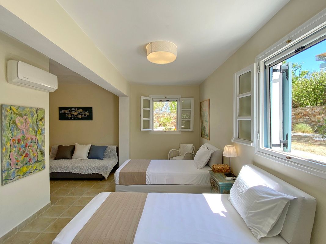 This spacious outdoor area incorporates the comfort of deck chairs for tranquility and relaxation. The Barbecue adjoining the outdoor dining and sitting area is ideal for entertaining on warm summer Naxos evenings. The villa is ideal for people who love nature or appreciate a peace of mind philosophy by enjoining elegant simplicity.