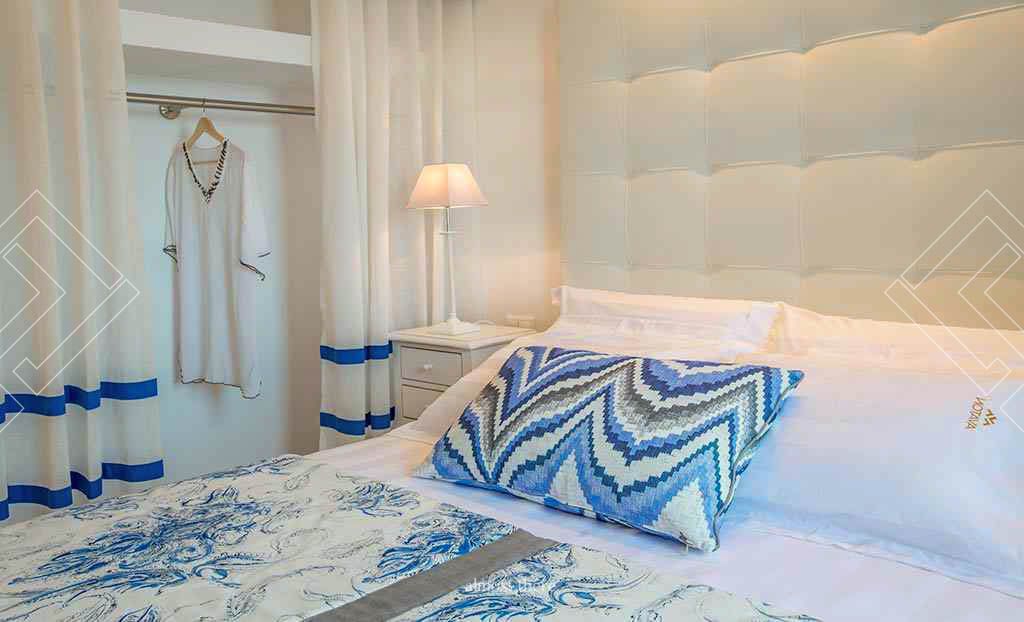 When outfitting the room, we find ourselves in the outdoor area where a furnished terrace with wooden details and a private swimming pool are located. The in-build sunbed makes the feeling of leisure even more tempting.