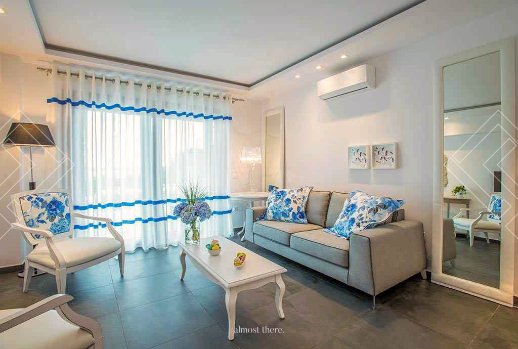 Rhea Boutique Room IV is 1 out of 5 identical rooms, located in the cosmopolitan seaside of Halkidiki. It measures 35m2 and can accommodate up to 2 people. It includes a tastefully designed bedroom and a small lounge with sofa bed, where white color dominates creating a minimalist taste of decoration combined with luxurious linen and unique furnishing. There is also a bathroom designed with a uniquely way and different color palette in order to create a contrast.
