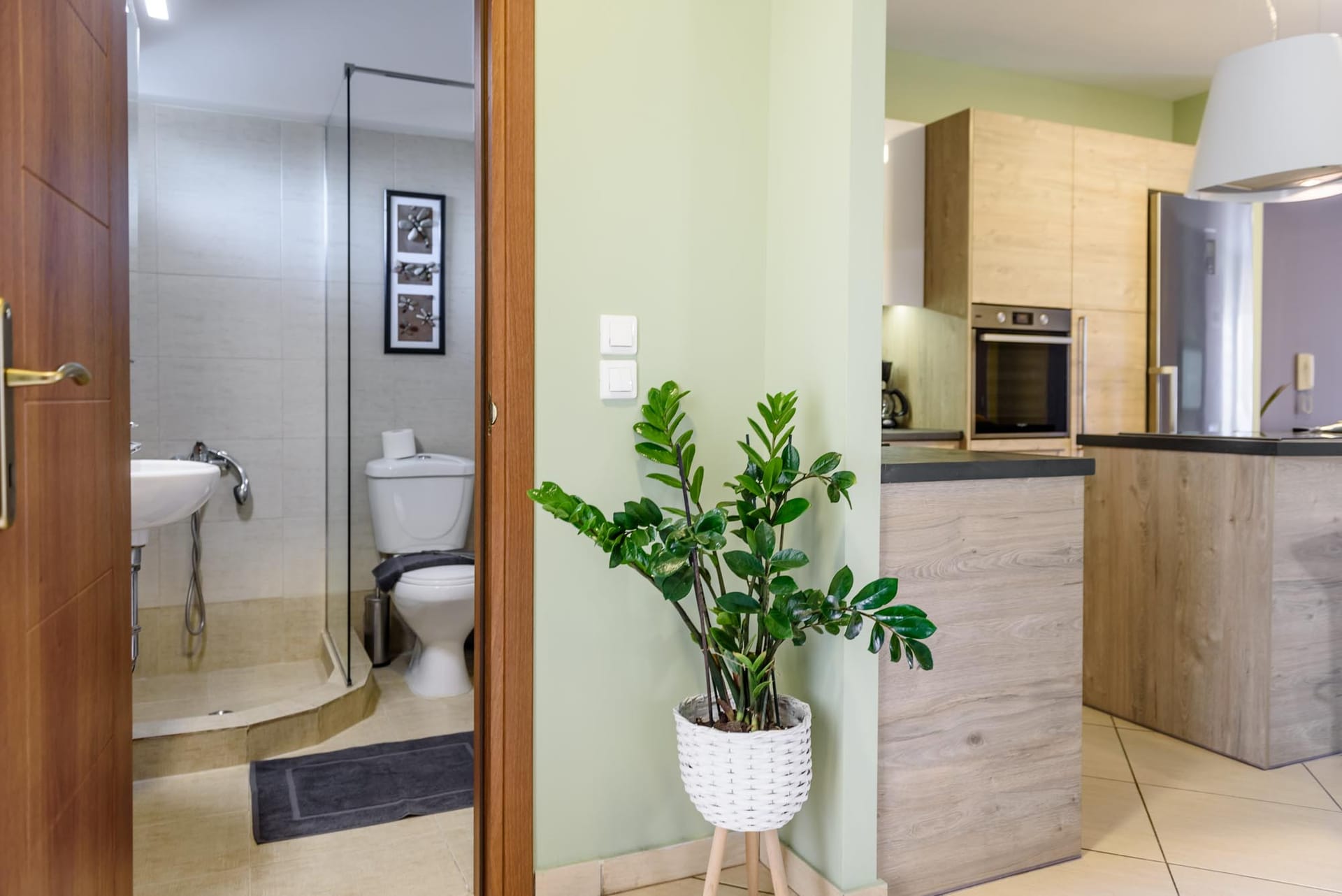 La PERLA di Nafplio boasts 3 spacious bedrooms, two living rooms, each designed with comfort and style in mind. The 3 bathrooms ensure that everyone has their own space to unwind and refresh. Also, the villa provides 1 sofa bed. The fully equipped kitchen is perfect for preparing delicious meals, which you can enjoy in the elegant dining area or on the terrace overlooking the lush garden.
