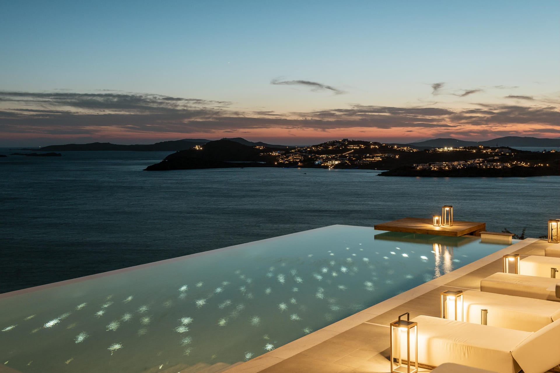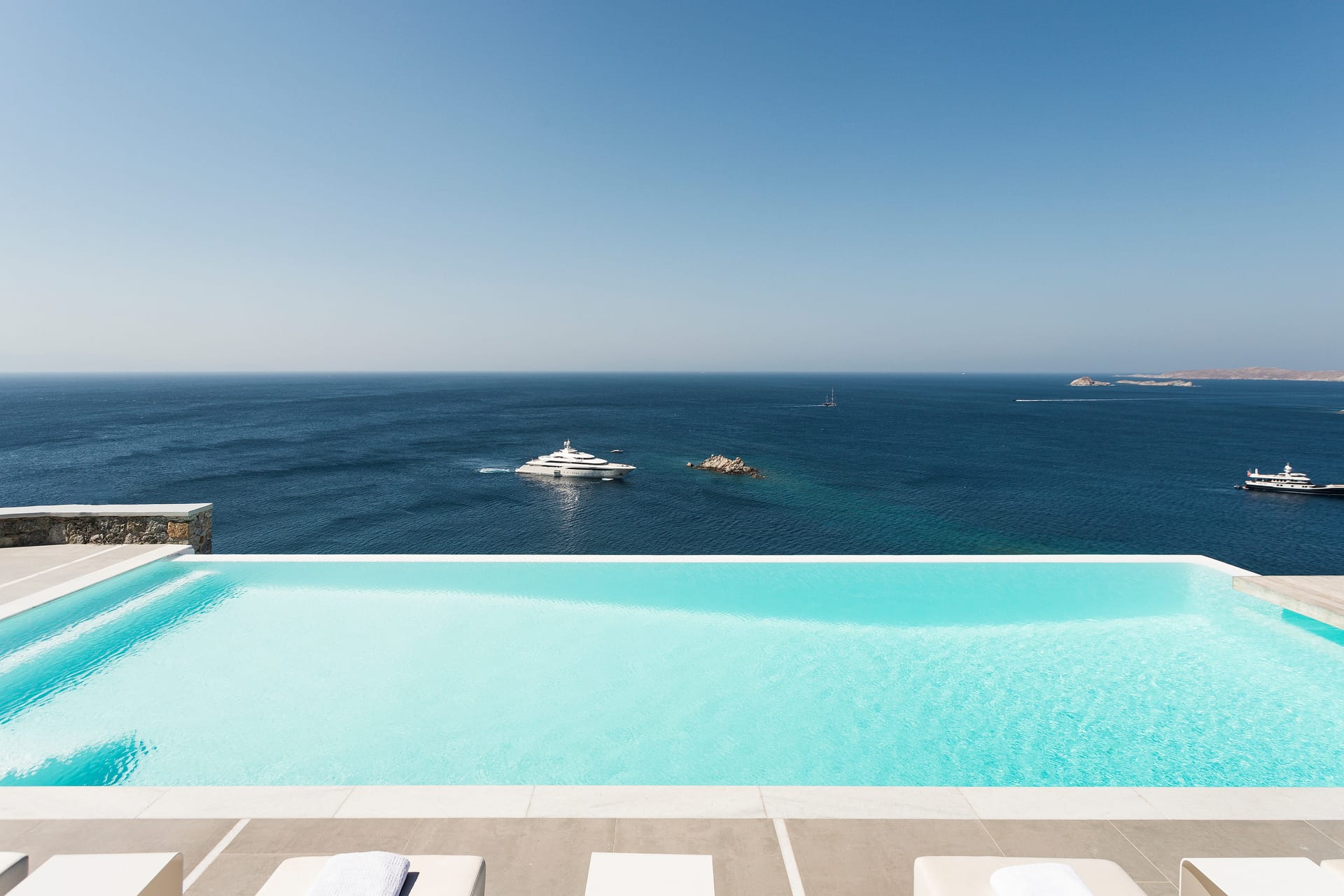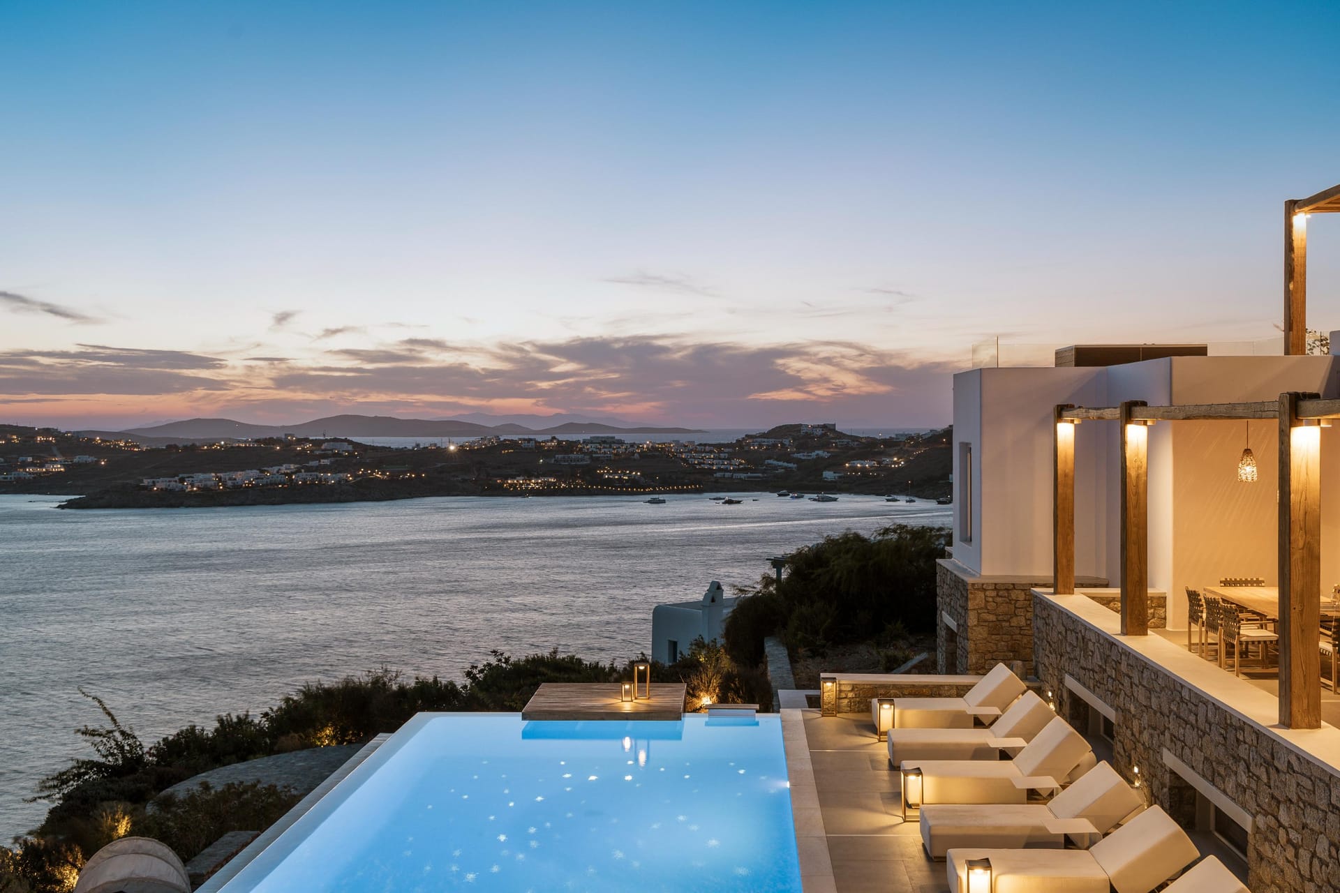 Designed by one of the most well-known and prolific Greek architects, Villa Neféli embodies the essence of elegance and comfort featuring matchless services 24/7 while the villa’s state of the art facilities will fulfill its guests every fantasy. Generously featuring seven lavish bedrooms with en suite designer bathrooms, the villa offers the most modern luxury facilities to match every taste and need. An exuberant living room and dining area with panoramic view to the Aegean, a fully equipped chef's kitchen with supreme amenities, fitness area, outdoor Barbeque, outdoor Jacuzzi and billiards table in the Master’s bedroom private terrace, and the stylish hand crafted furniture complete the utopian hideaway. In the large outdoor area, stars sparkle from the bottom of the refreshing private infinity pool, while in the clear sky the moon lights the iridescent nights. The unique location of the villa provides perfect shelter from the famous Mykonian winds, as well.