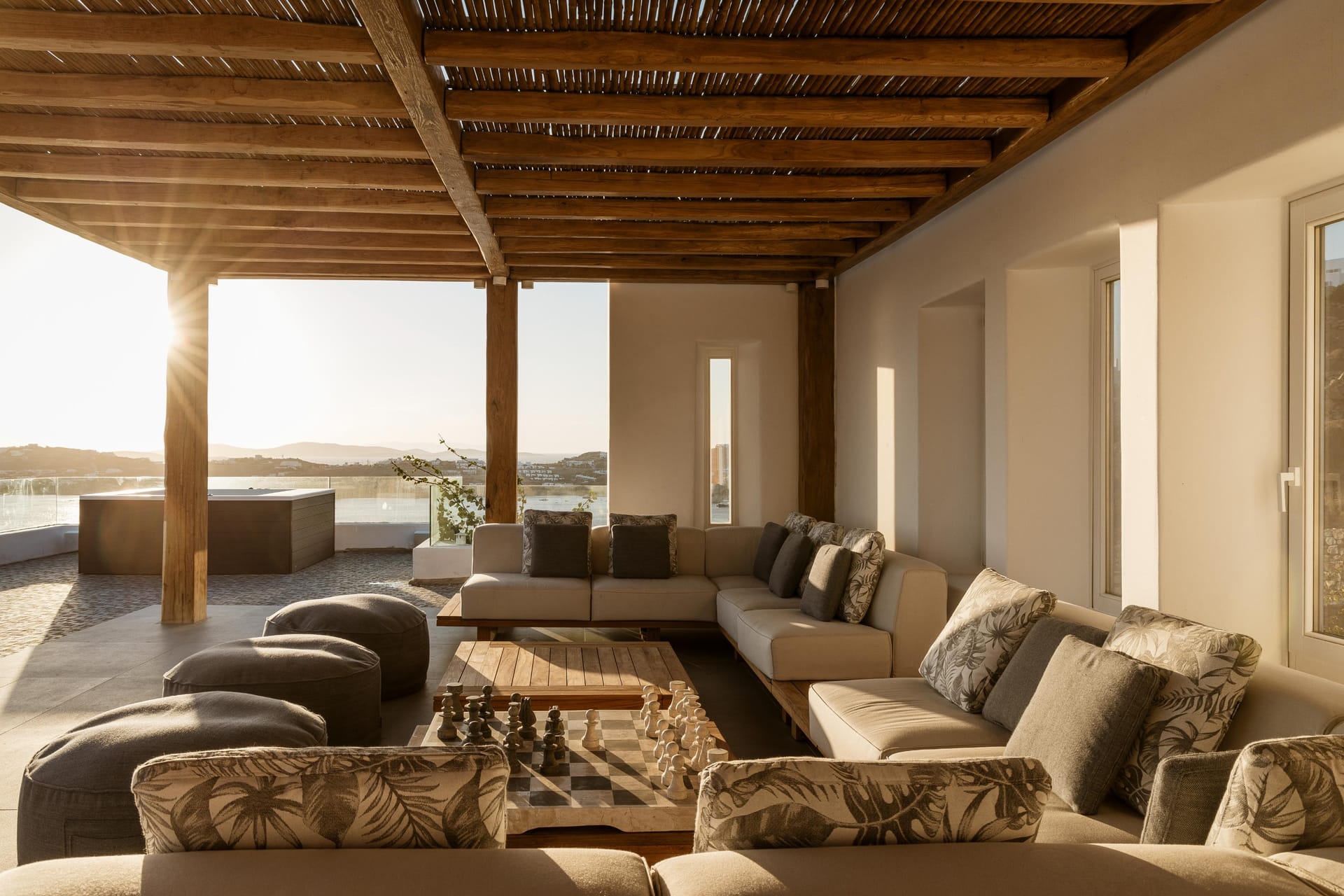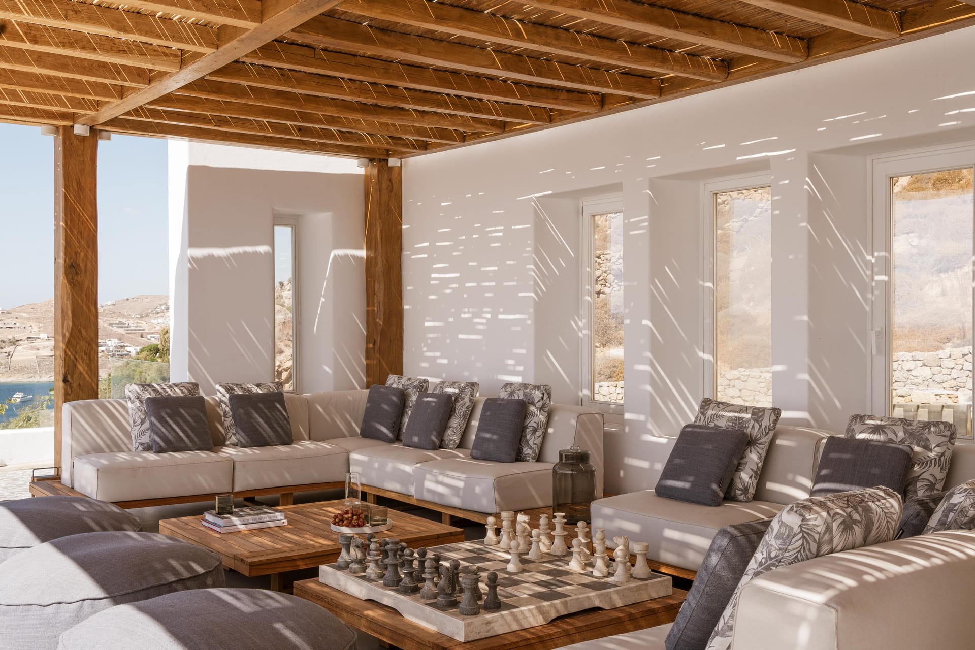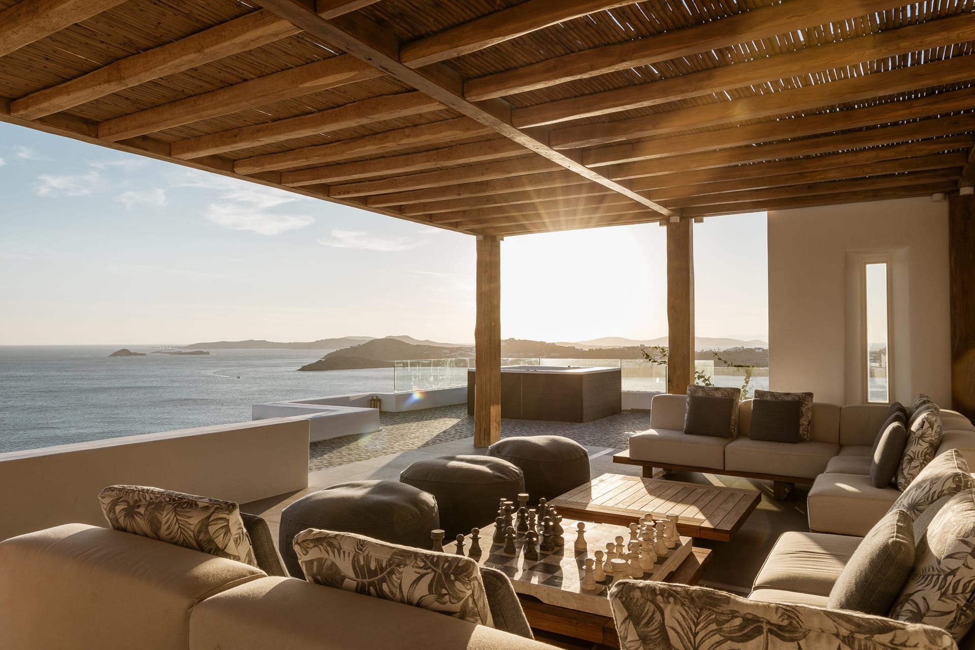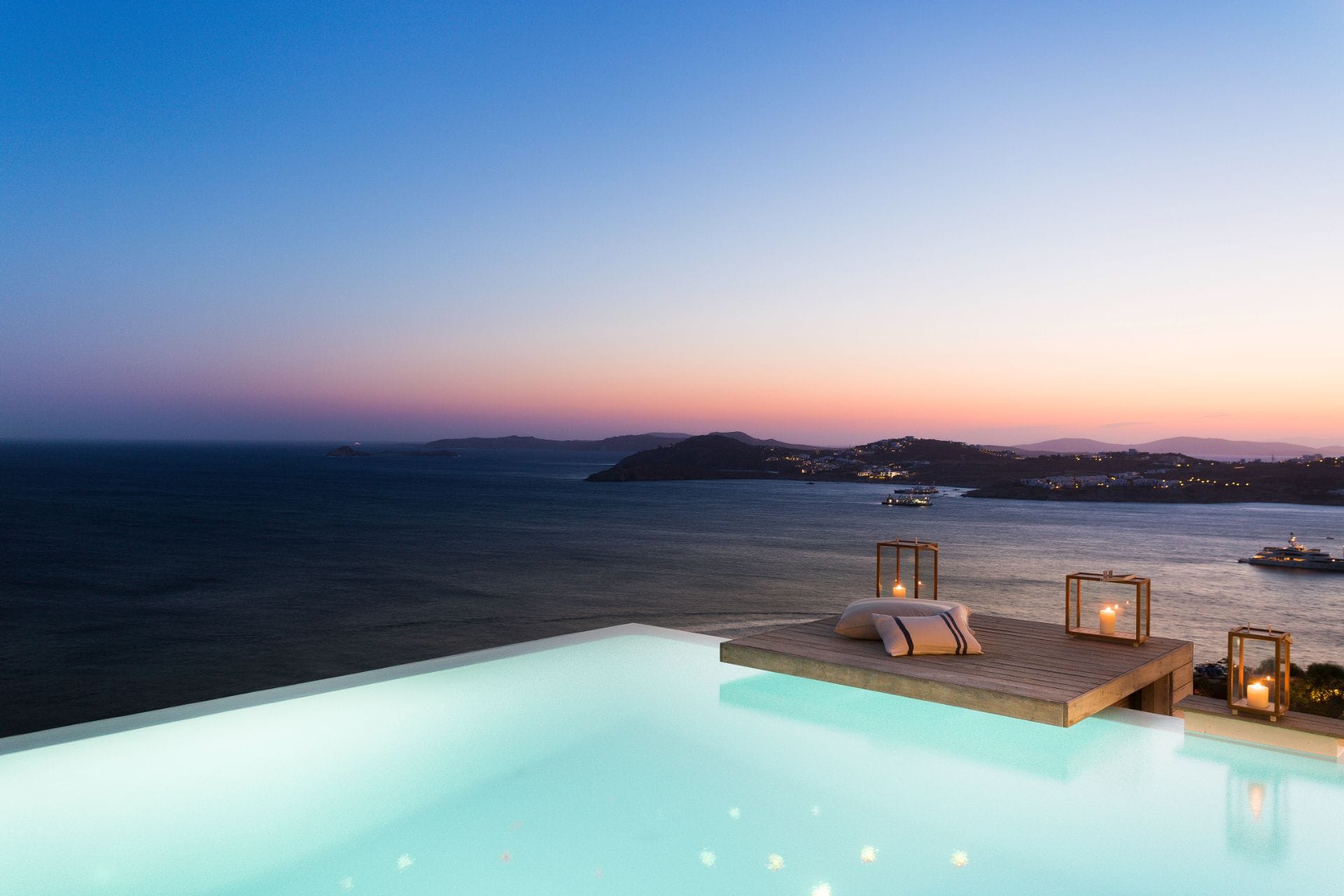 Designed by one of the most well-known and prolific Greek architects, Villa Neféli embodies the essence of elegance and comfort featuring matchless services 24/7 while the villa’s state of the art facilities will fulfill its guests every fantasy. Generously featuring seven lavish bedrooms with en suite designer bathrooms, the villa offers the most modern luxury facilities to match every taste and need. An exuberant living room and dining area with panoramic view to the Aegean, a fully equipped chef's kitchen with supreme amenities, fitness area, outdoor Barbeque, outdoor Jacuzzi and billiards table in the Master’s bedroom private terrace, and the stylish hand crafted furniture complete the utopian hideaway. In the large outdoor area, stars sparkle from the bottom of the refreshing private infinity pool, while in the clear sky the moon lights the iridescent nights. The unique location of the villa provides perfect shelter from the famous Mykonian winds, as well.