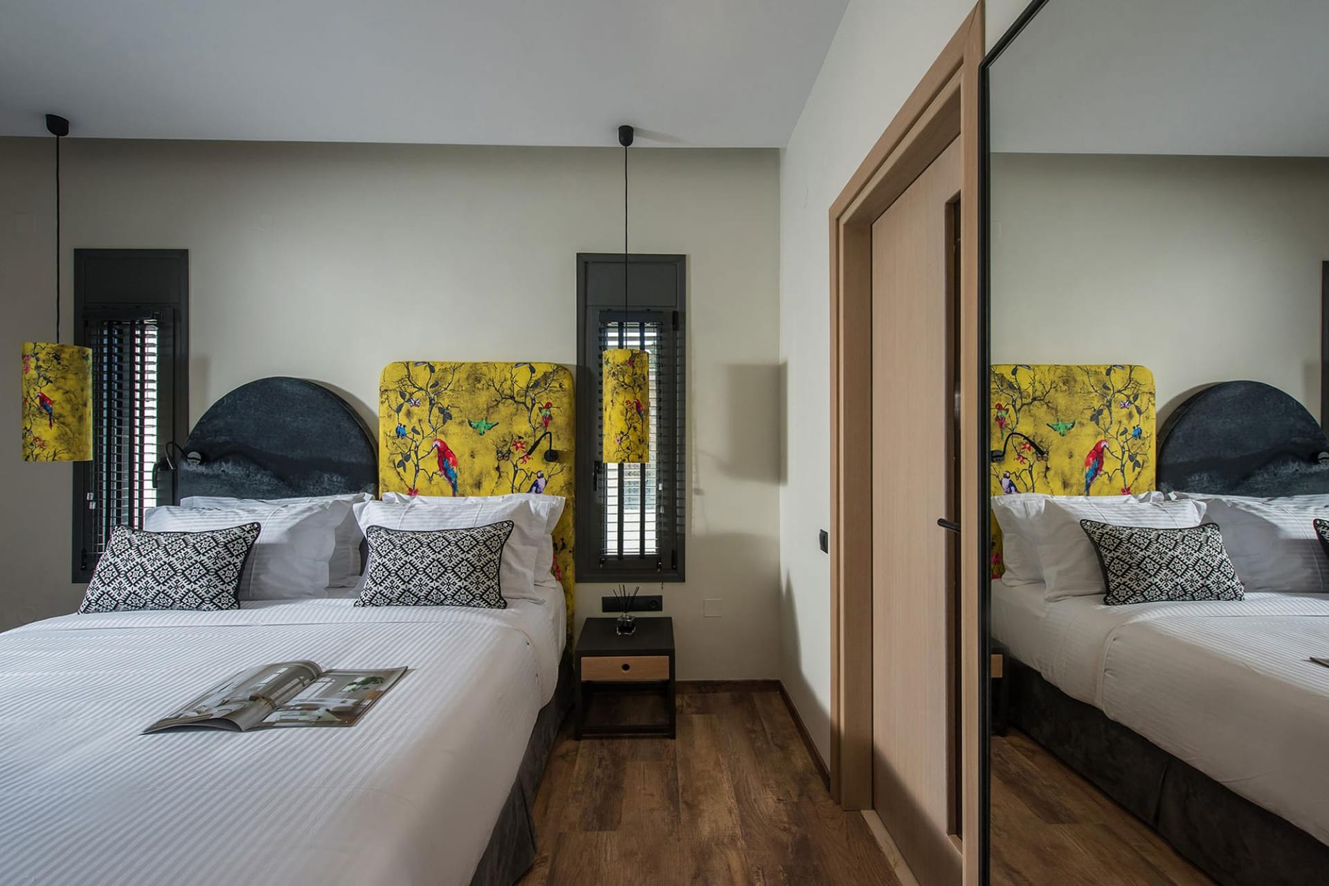 This elegant vacation rental near Heraklion boasts well-appointed outdoor living areas, Mediterranean vistas inside and out, and a garden to ensure privacy. Enjoy its prime location, stylish interiors and two bedrooms during a family holiday or an escape to the sun with friends. The villa’s terrace let you take full advantage of the Greek sun and get a bronze tanning, while lush plantings keep your stay quiet and private. On the ground floor, the house opens to a freshwater pool and lounging and dining area. Neutral tones, chic furnishings and soft fabrics give the interiors of Villa Amo a sophisticated style along with an unparalleled feel of coziness. A cozy pool terrace is combined with an open-plan living and dining room filled with stylish pieces like a sleek sectional and dining chairs. Follow the polished stone steps up to a great room with a casual dining table, comfortable sitting area and fully equipped kitchen, all flooded with sunshine by a skylight. Enorme Villa Amo is located in the heart of Amoudara suburb and a short drive from the busy city centre of Heraklion, a stunning capital where you can stroll medieval streets in the shadow of the cathedral, discover cafes or sit down to a honeymoon-worthy dinner at a gorgeous restaurant. The beach can be reached by foot, a beautiful stretch of sand that’s perfect for sunbathing and swimming.