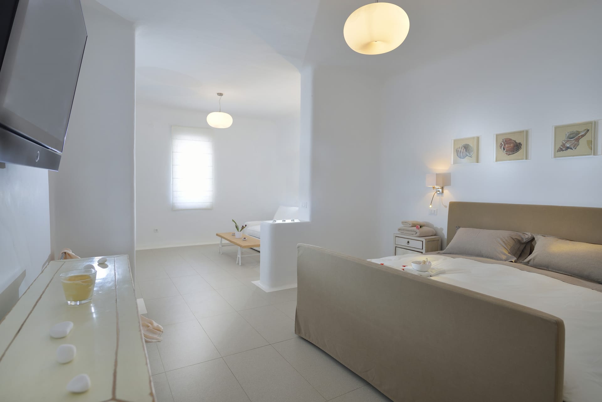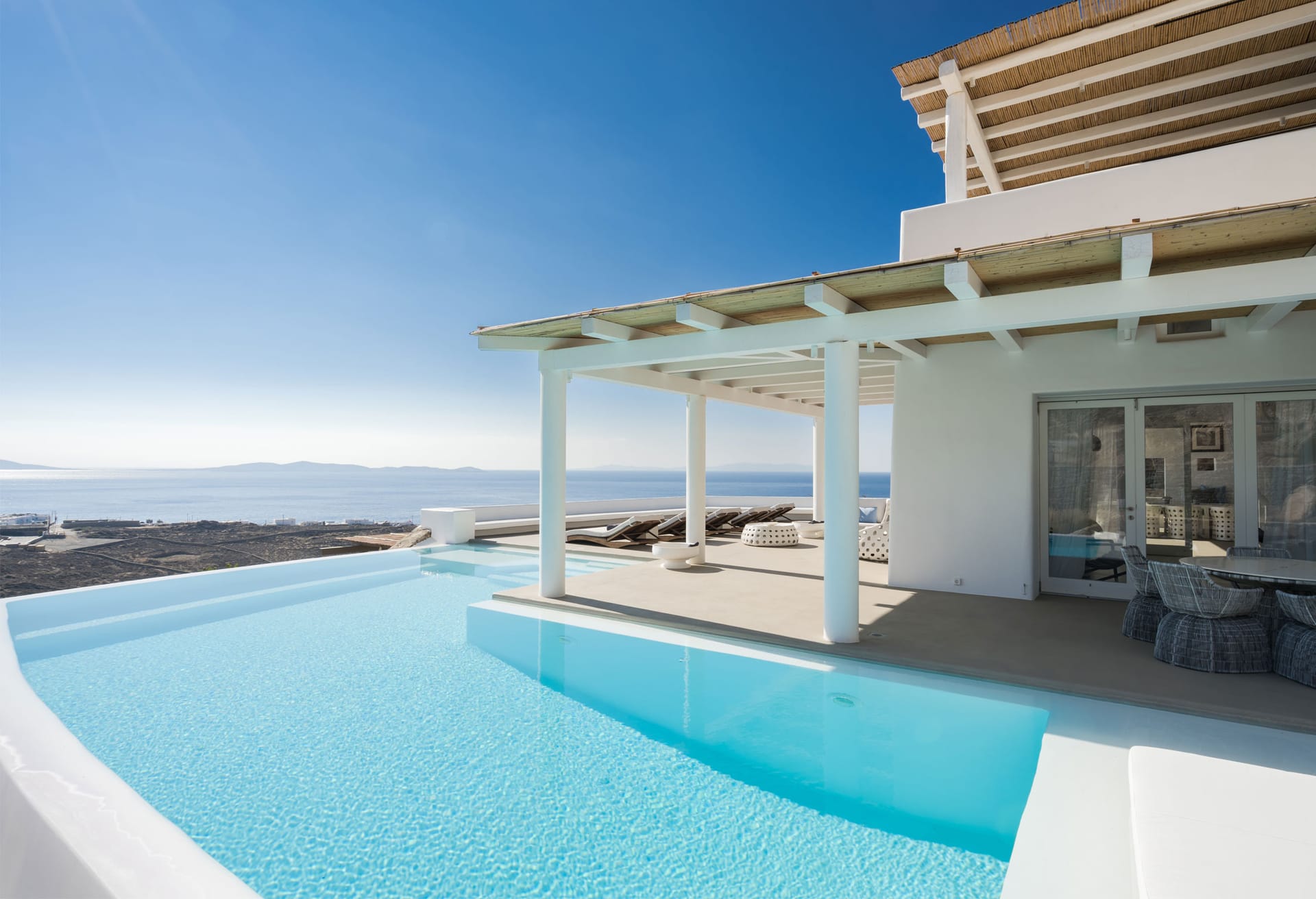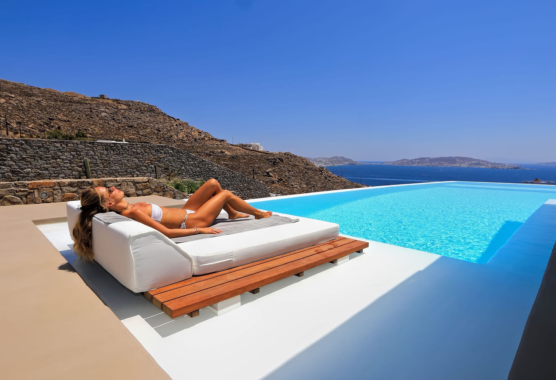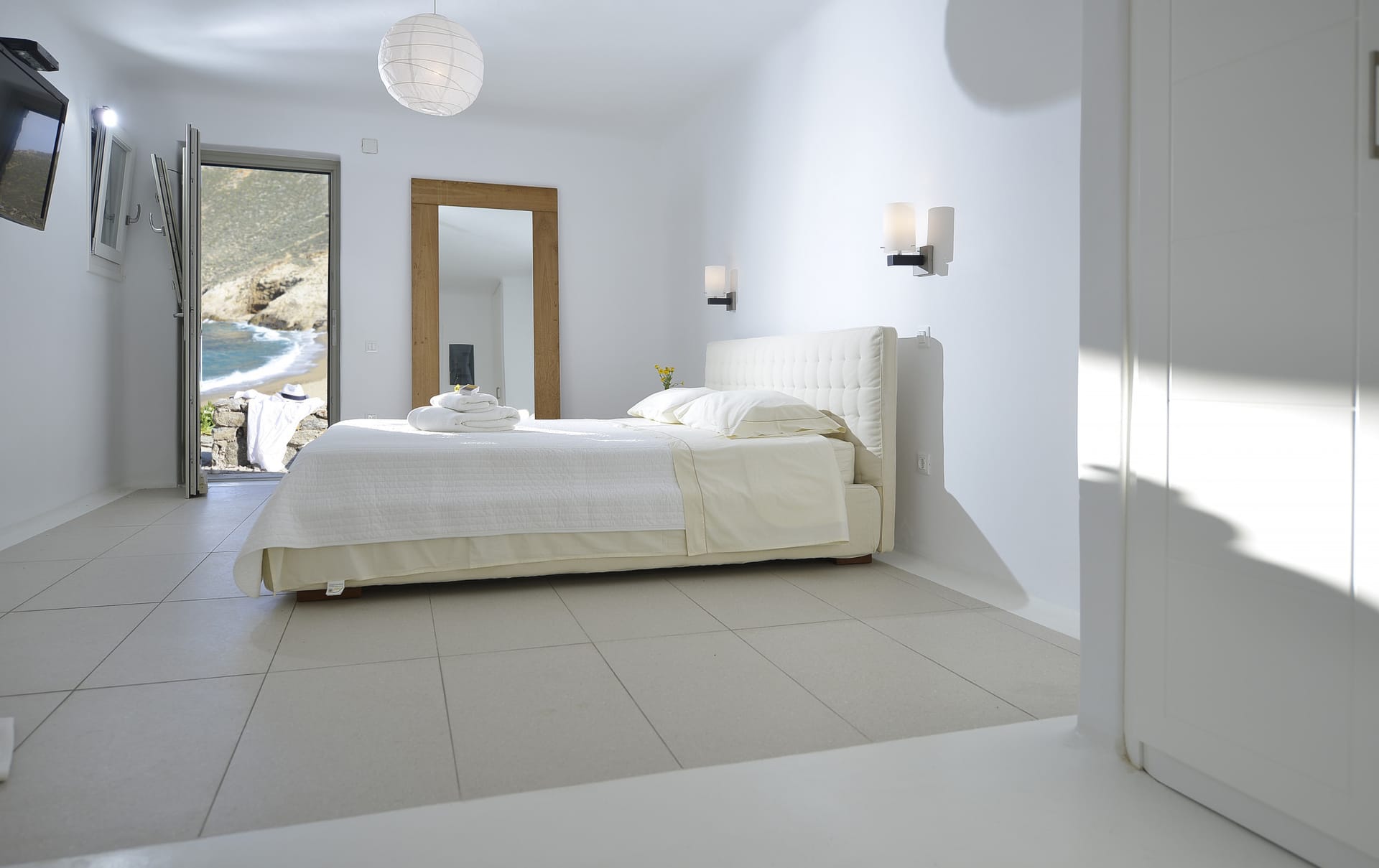 If this wasn't enough there is also an outdoor jacuzzi, allowing for more recreational space. Boasting a seafront location staying in this villa means you are lucky to have the option of escaping Mykonos famous nightlife, whilst being conveniently located to partake in the islands hotspots at your choosing.