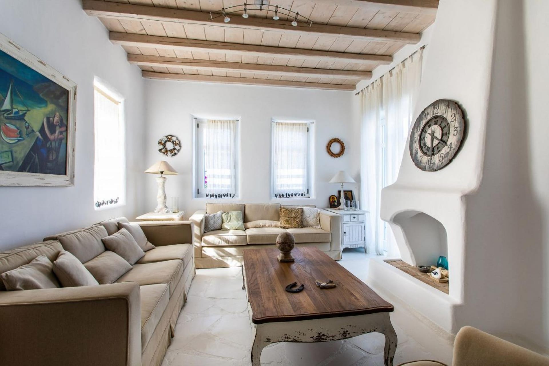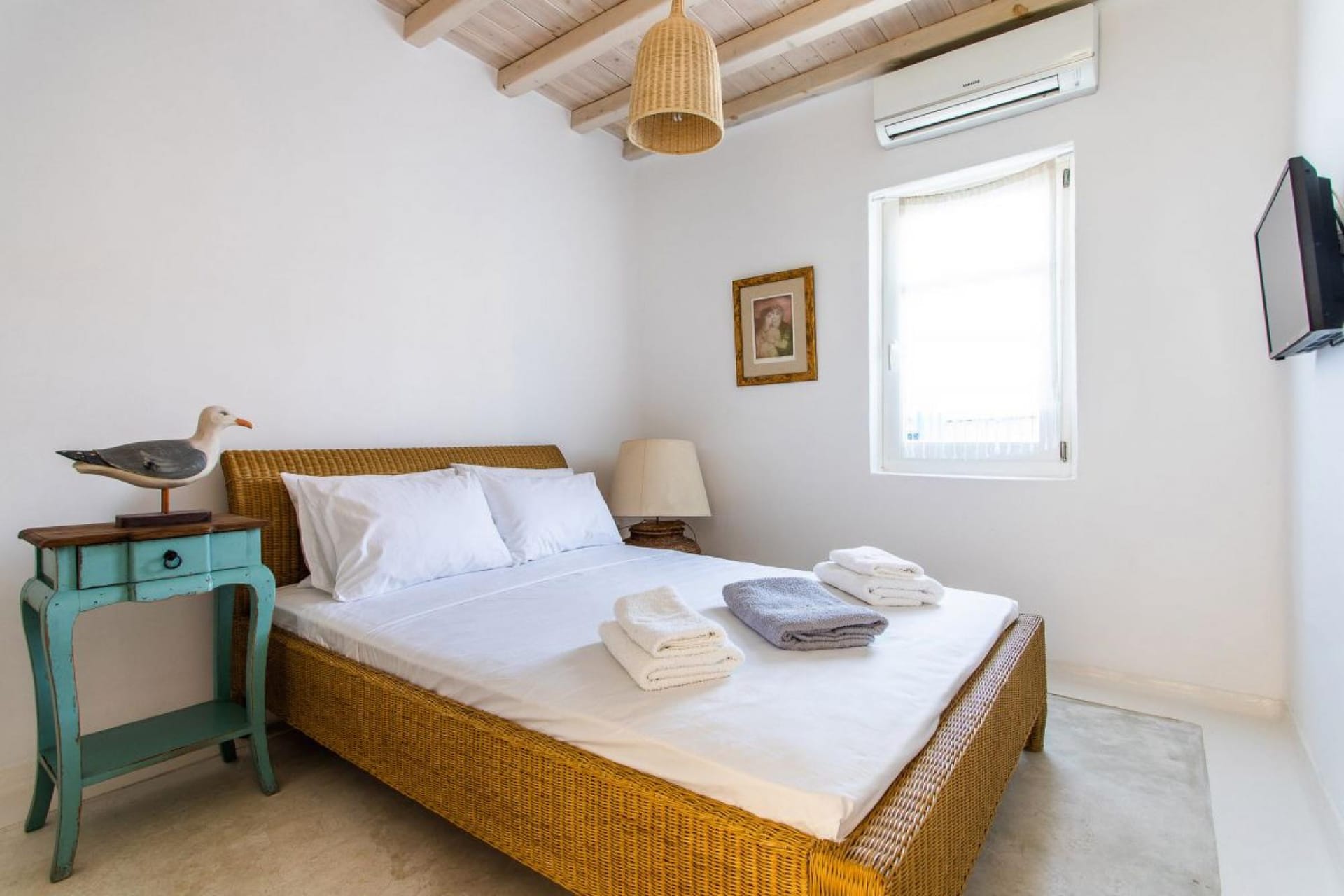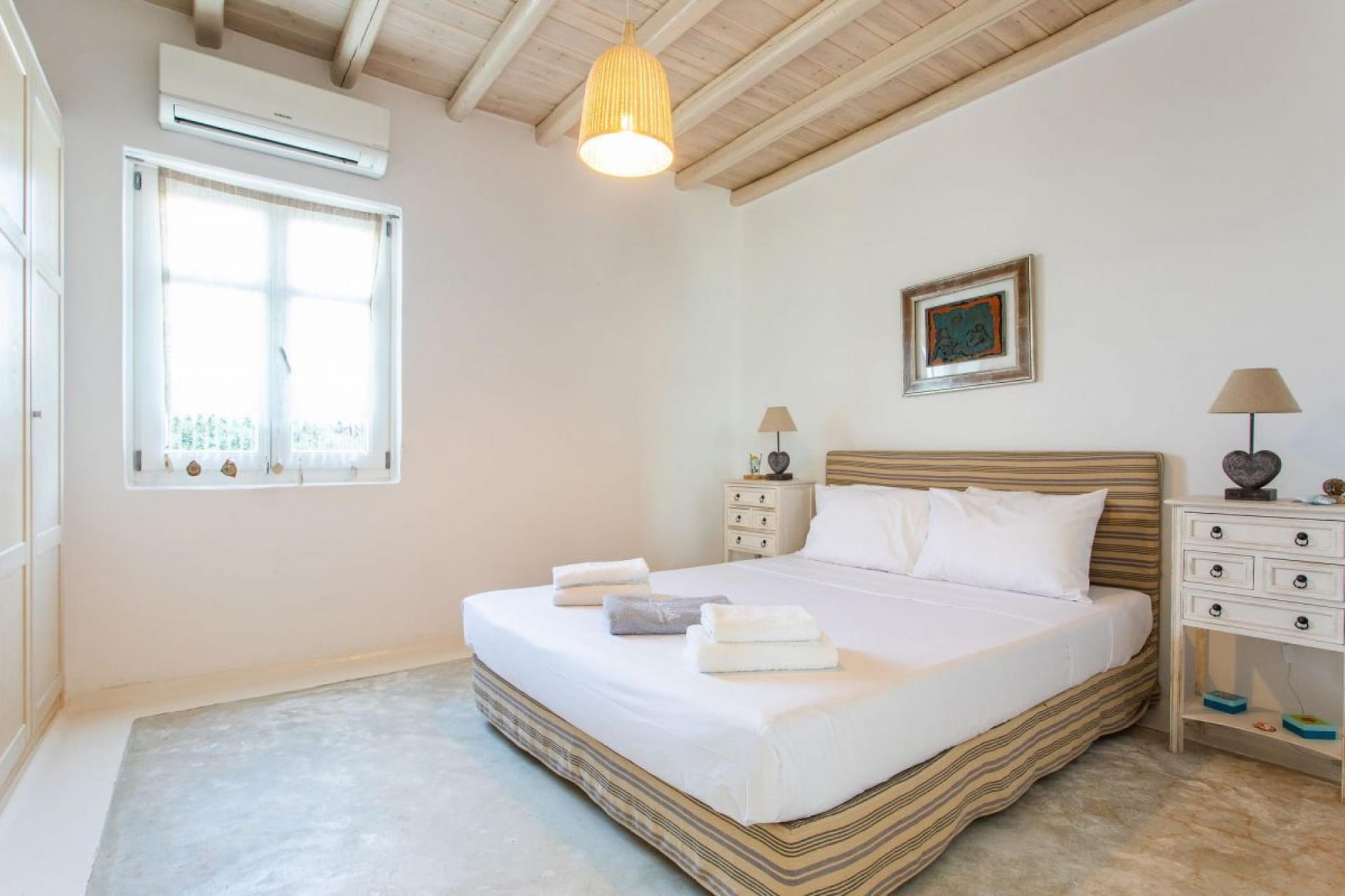 This beautiful villa is a 4-bedroom vacation home that offers a very spacious and modern stay just a few minutes walking from Ornos beach.
