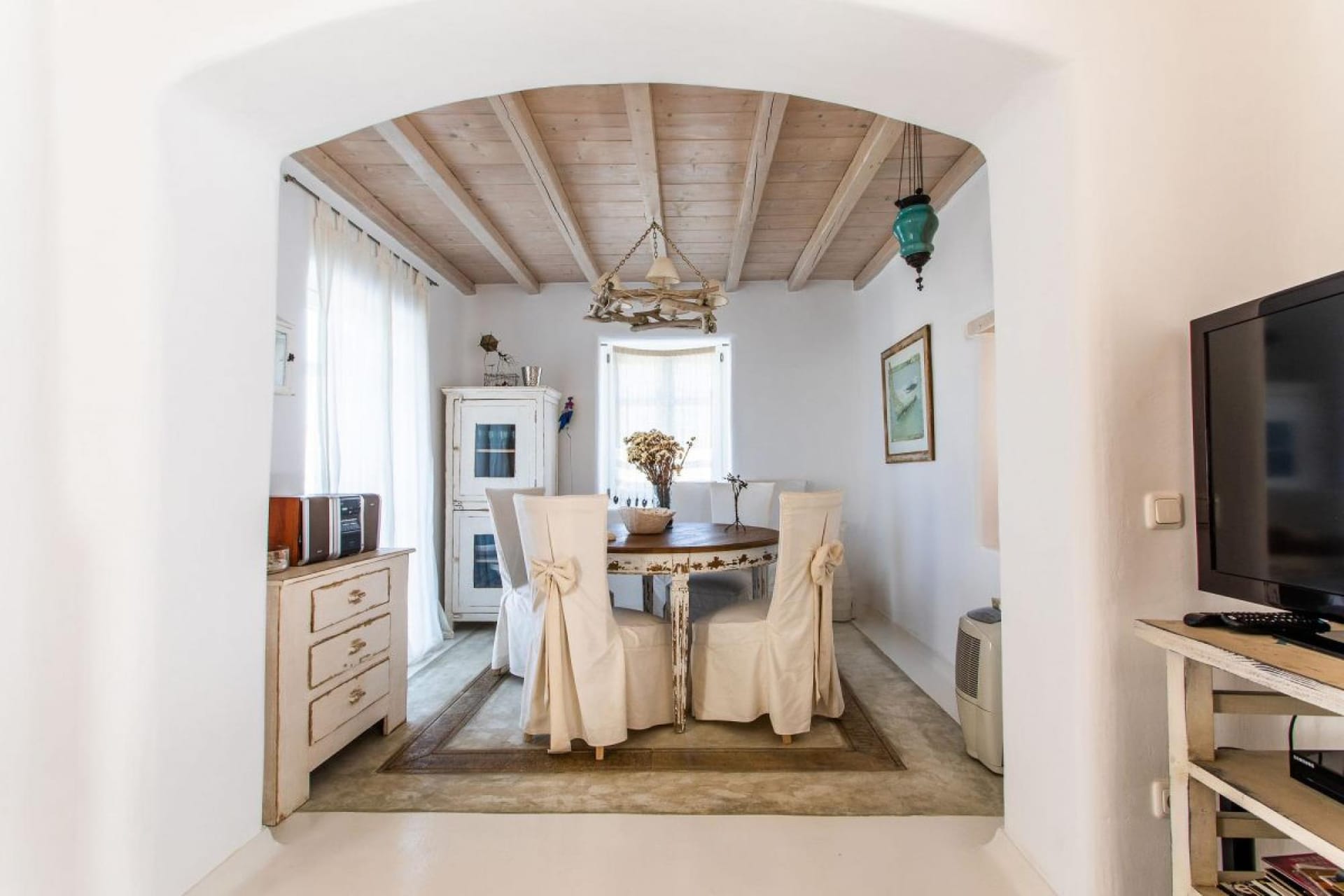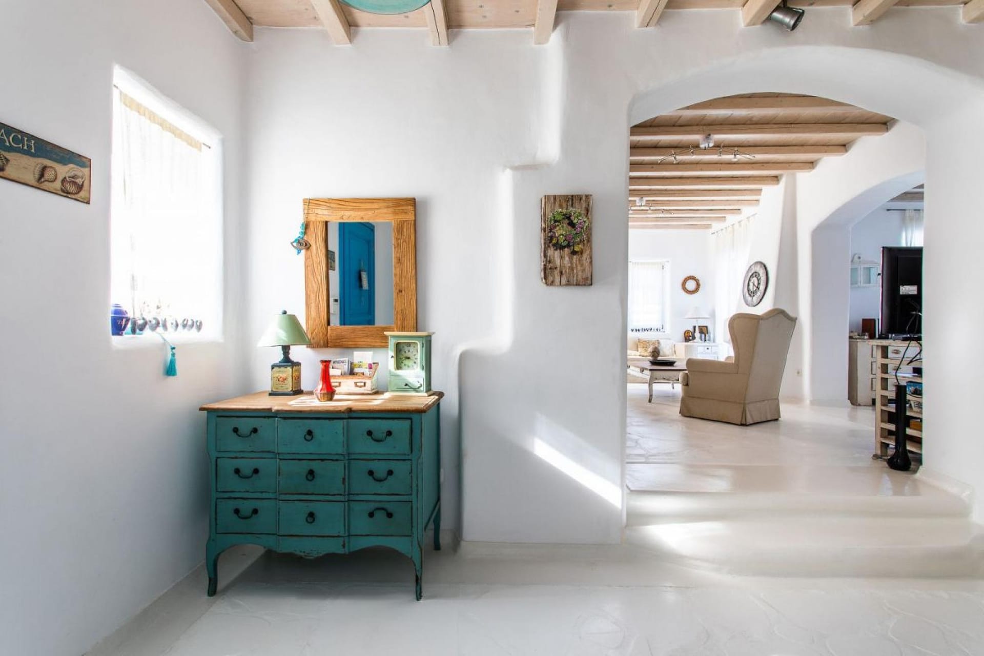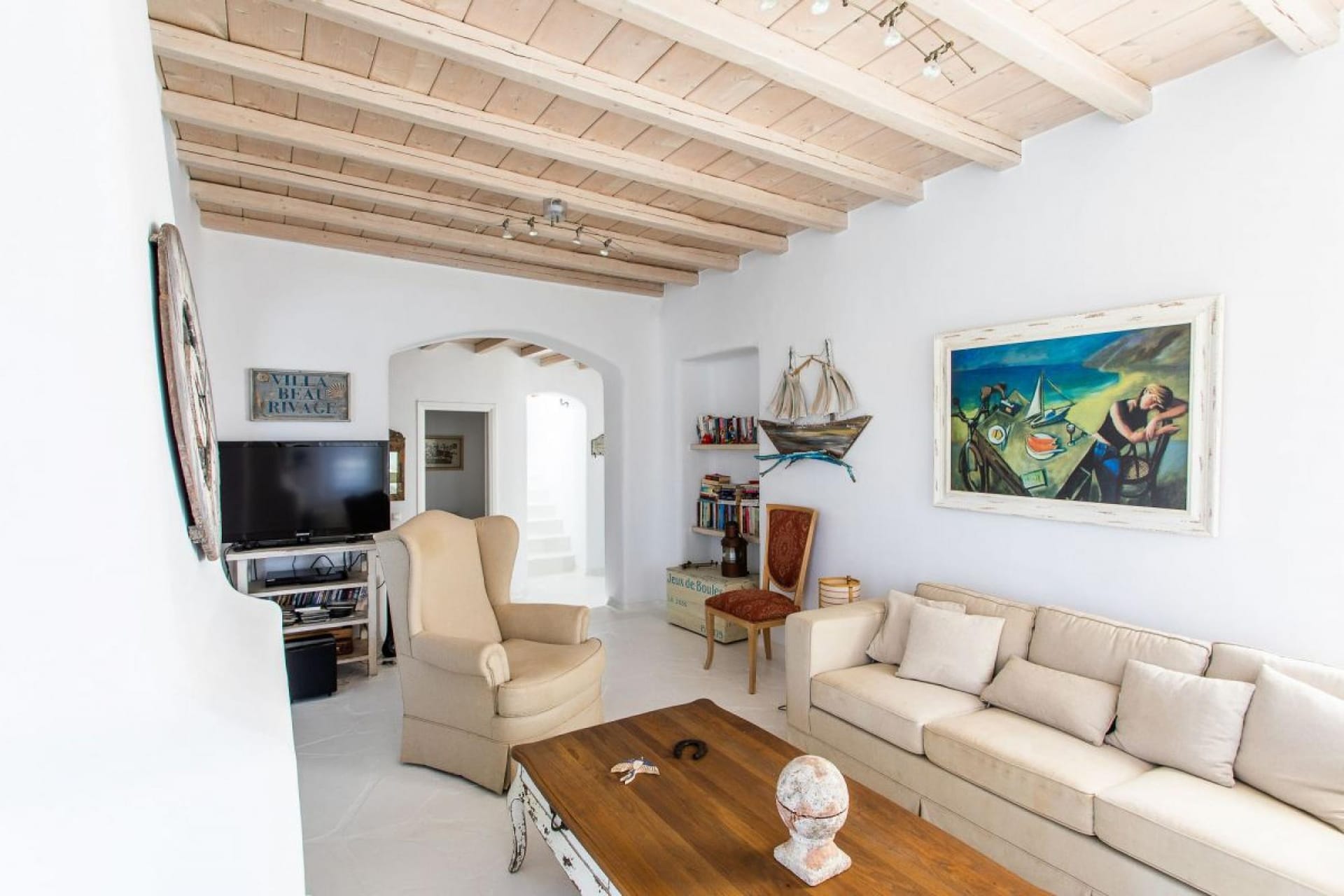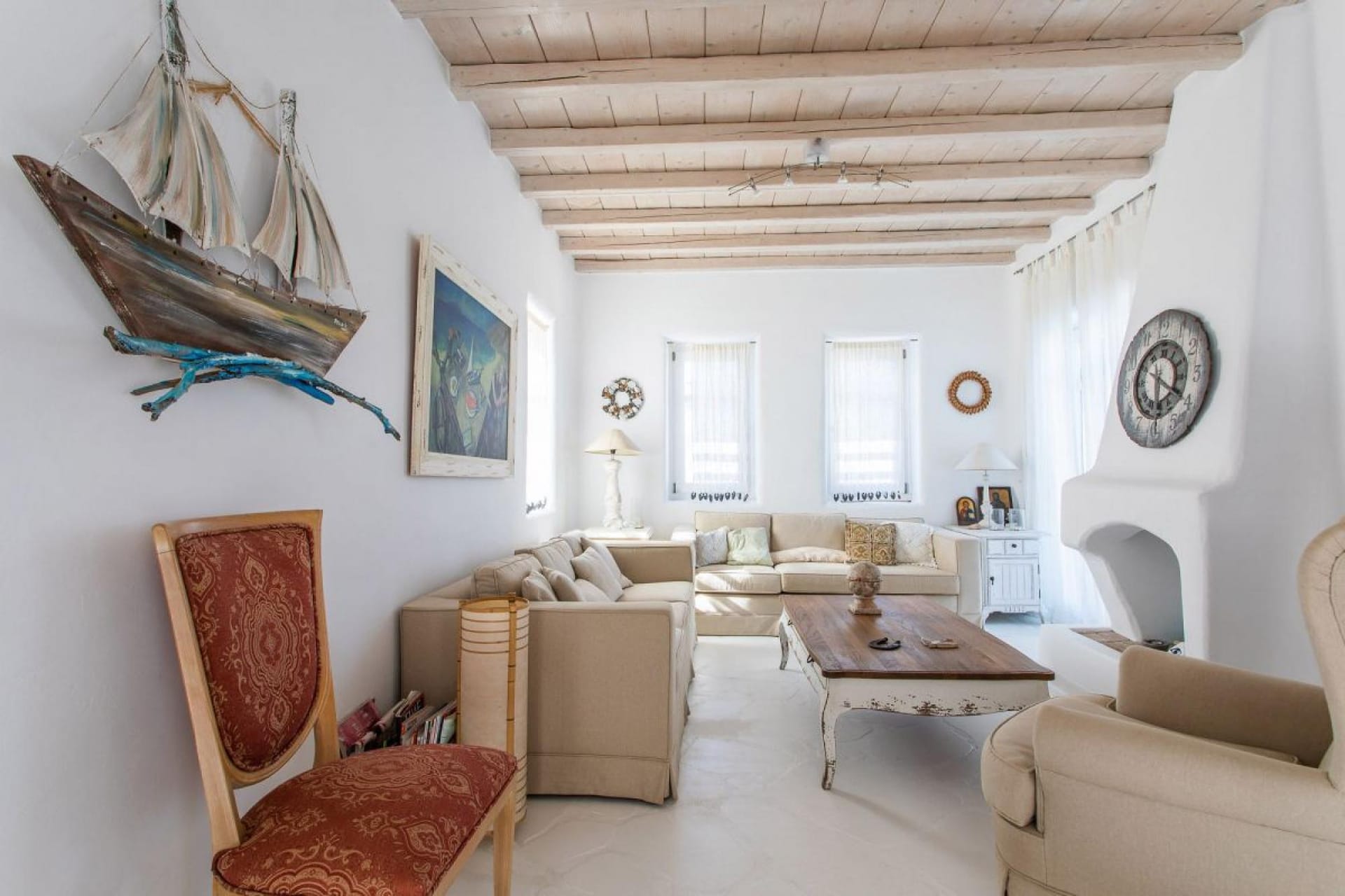 This beautiful villa is a 4-bedroom vacation home that offers a very spacious and modern stay just a few minutes walking from Ornos beach.