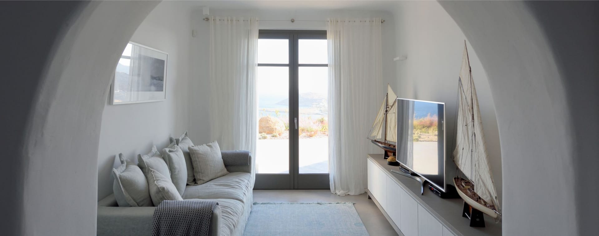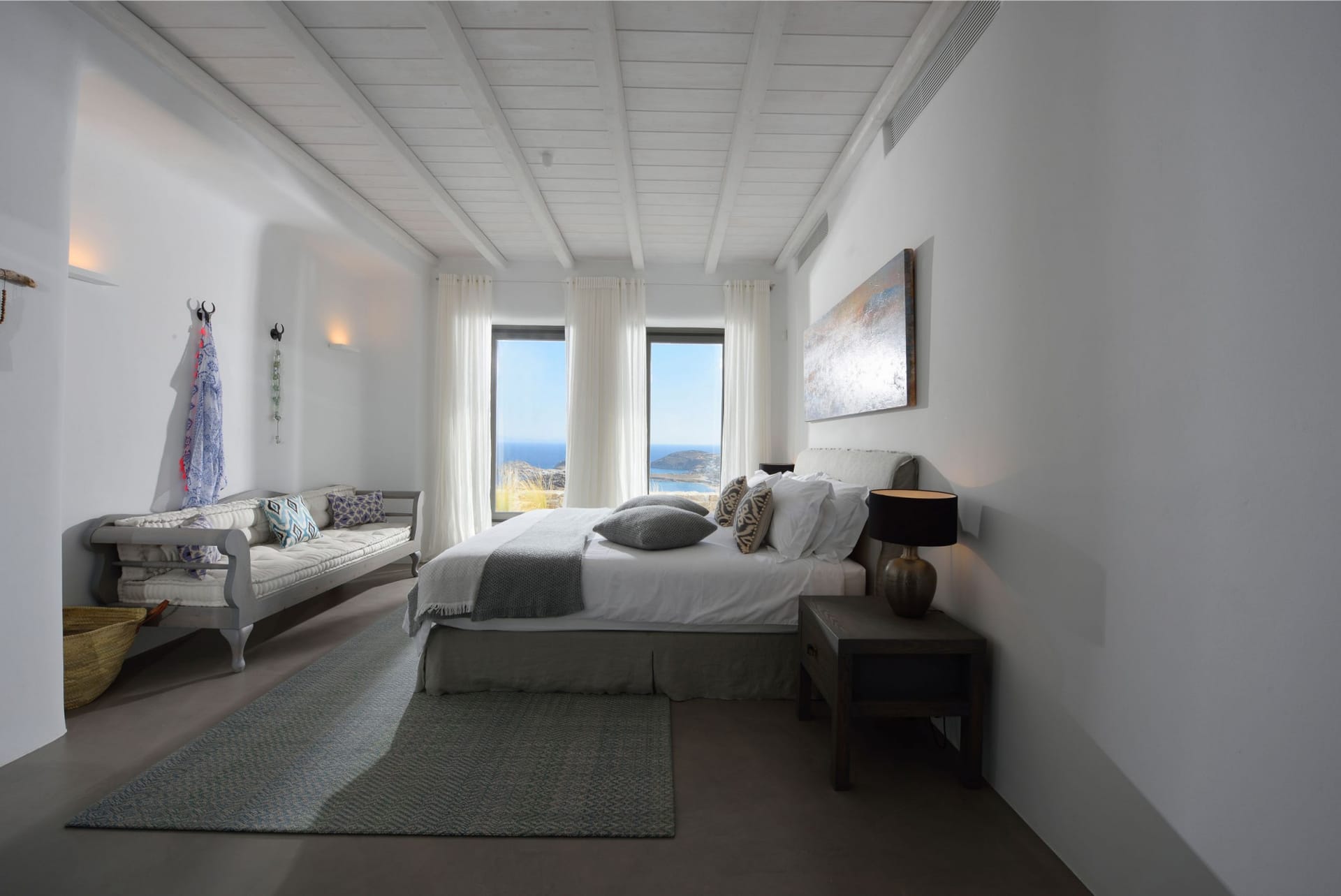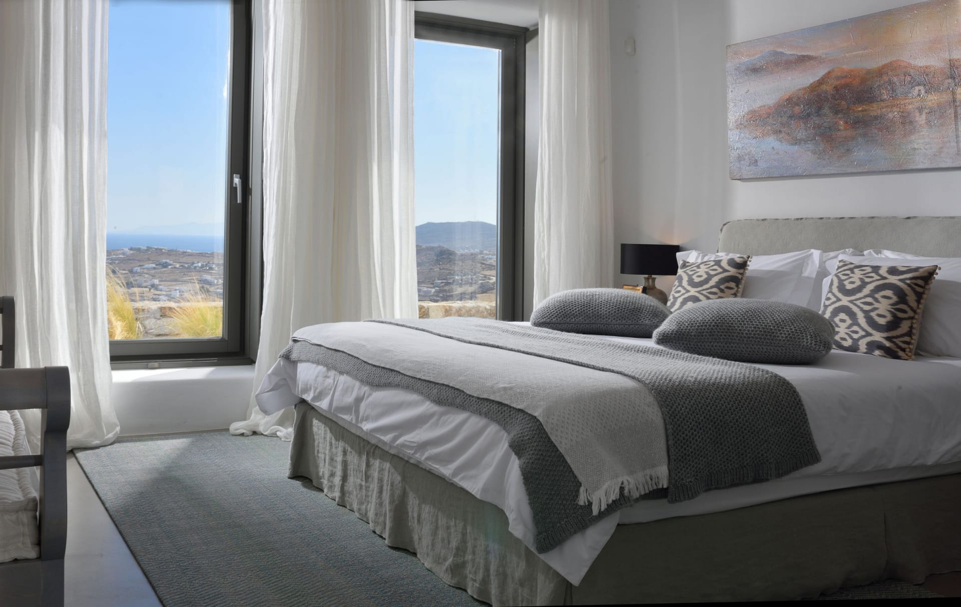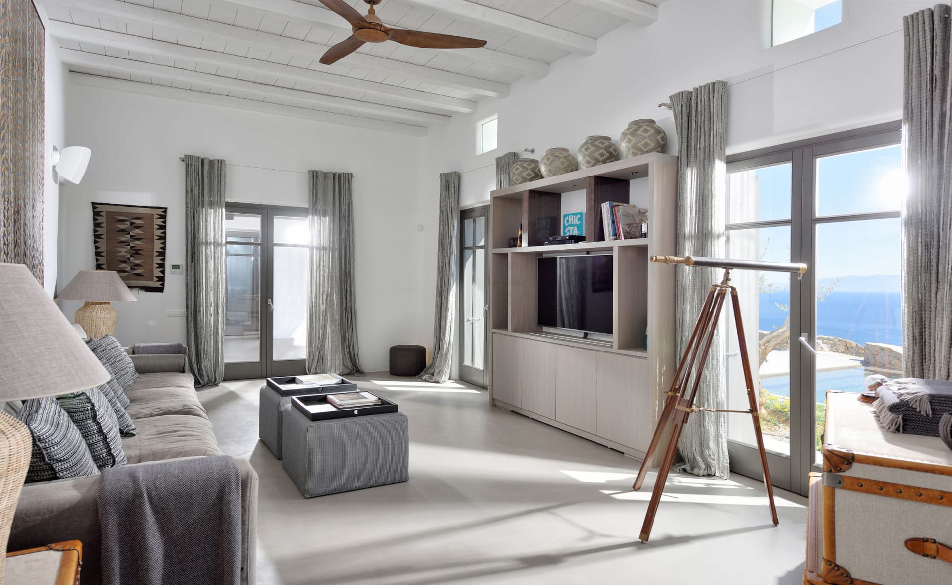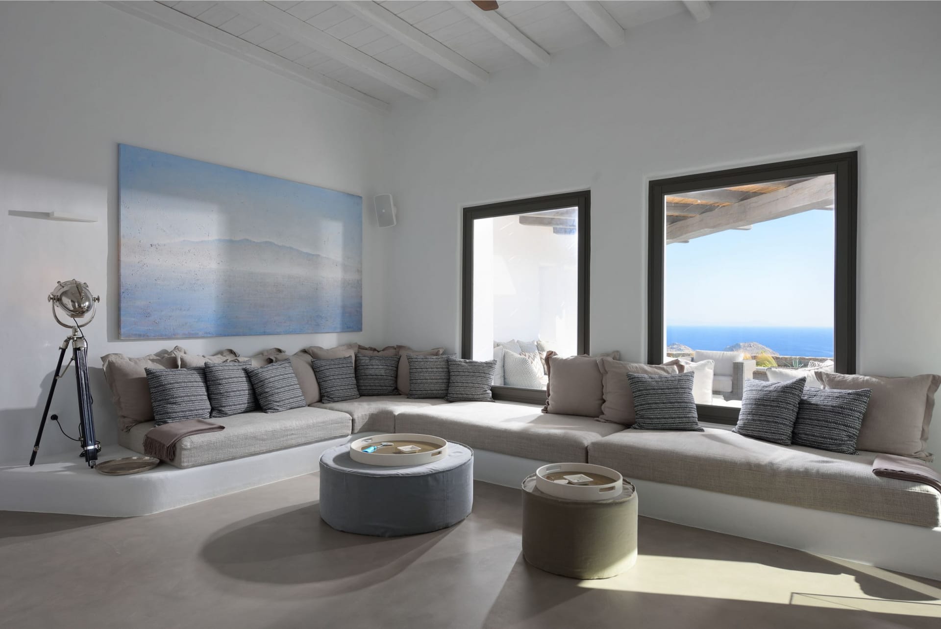 The villa can be categorised architecturally by a traditional Greek style whilst the interiors are exclusively designed by one of London’s leading developers, Sloane and Cadogan, both creating a contemporary blend of Cycladic architecture and design.