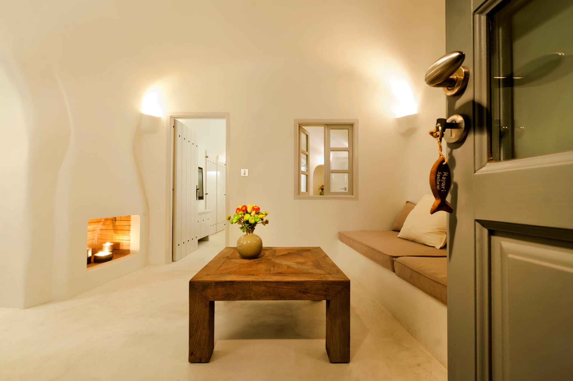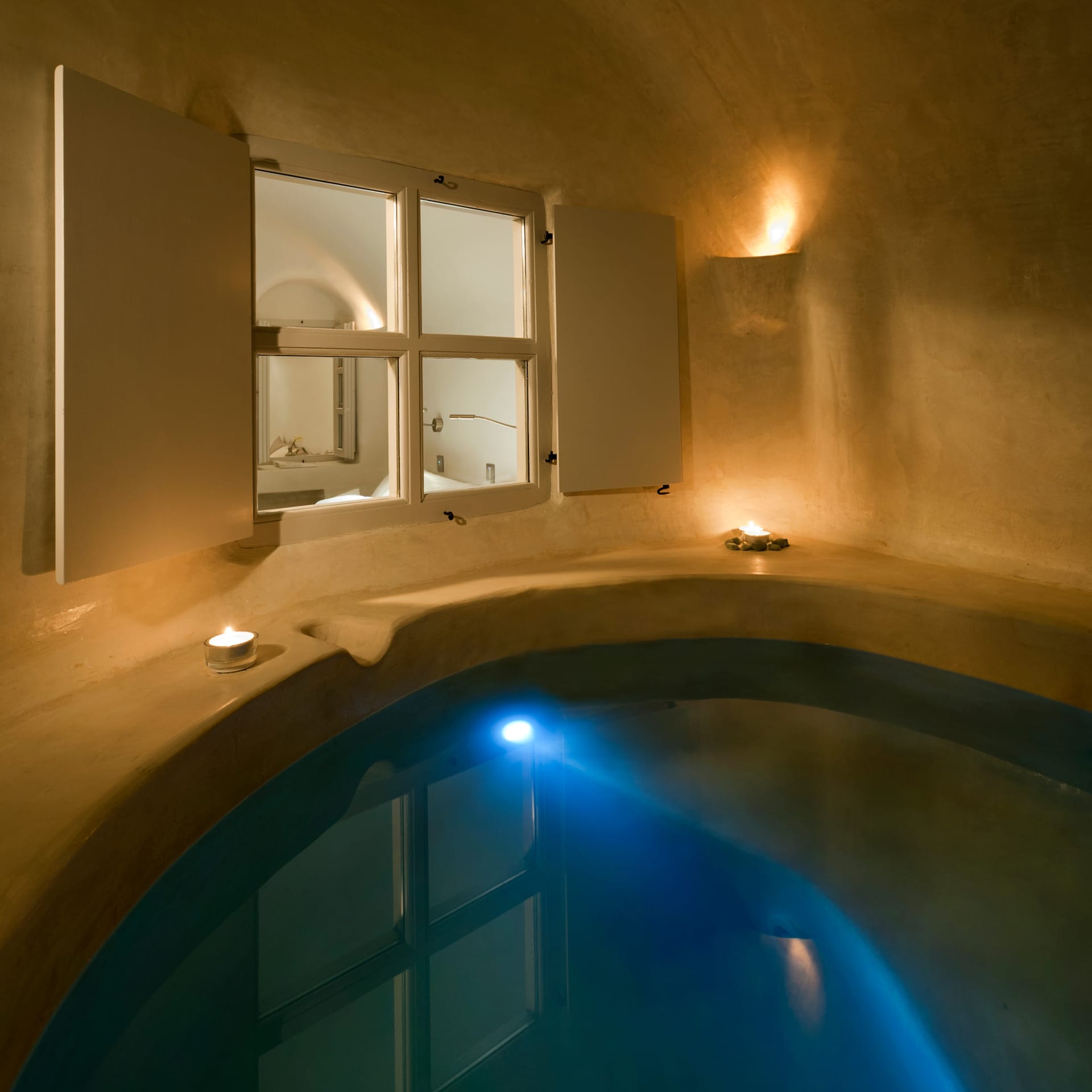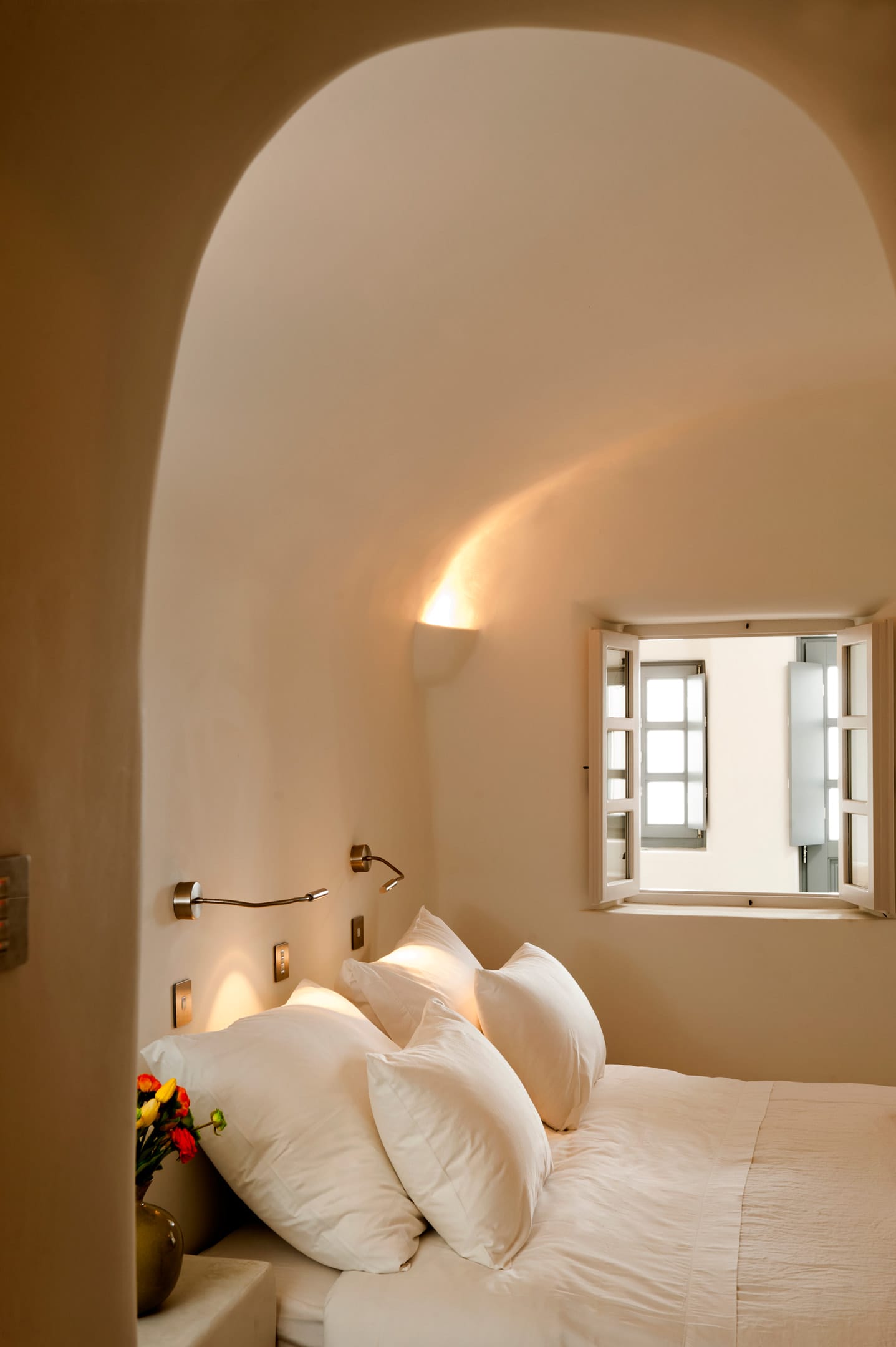 It is located on the upper floor with a large, private terrace and a private heated Jacuzzi. Perfectly spotted, with a mesmerizing view over the caldera, the blue of the Aegean, and the breathtakingly beautiful Santorini sunset, the Suite elevates your stay to a unique experience.