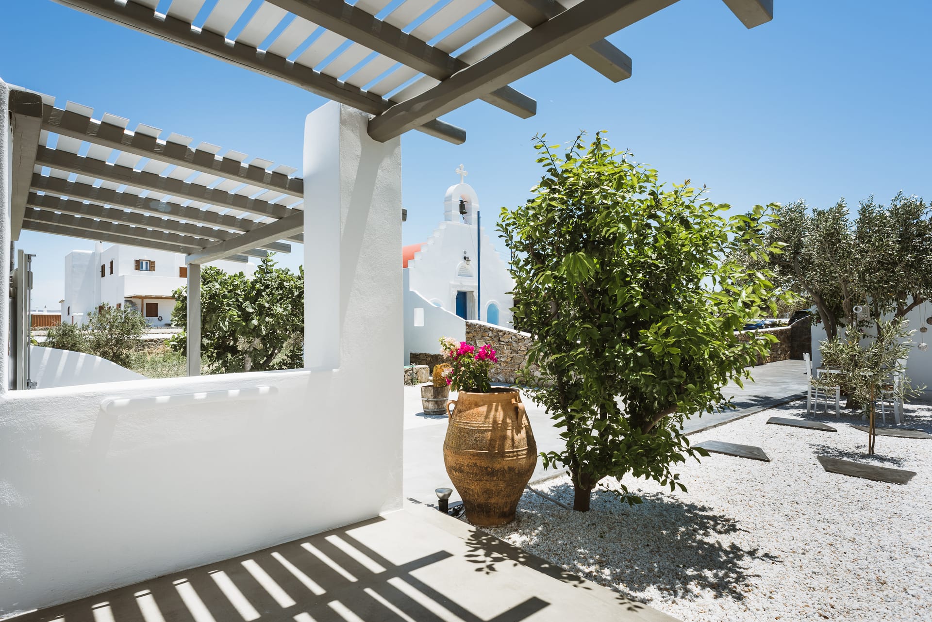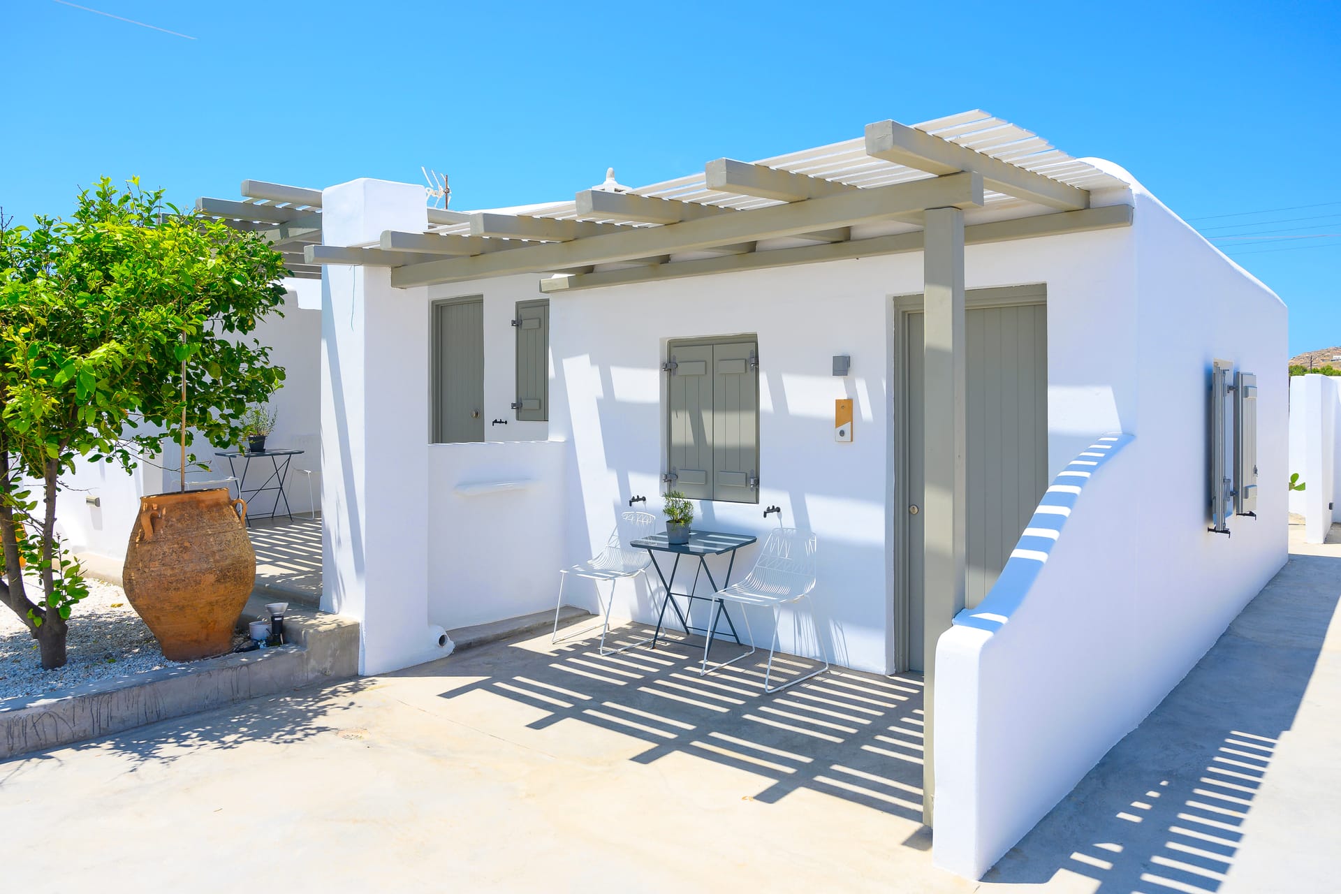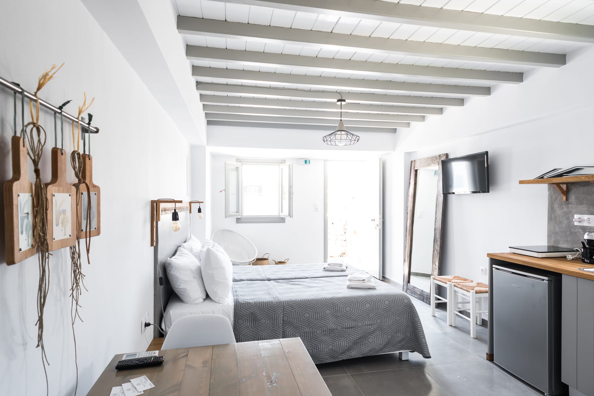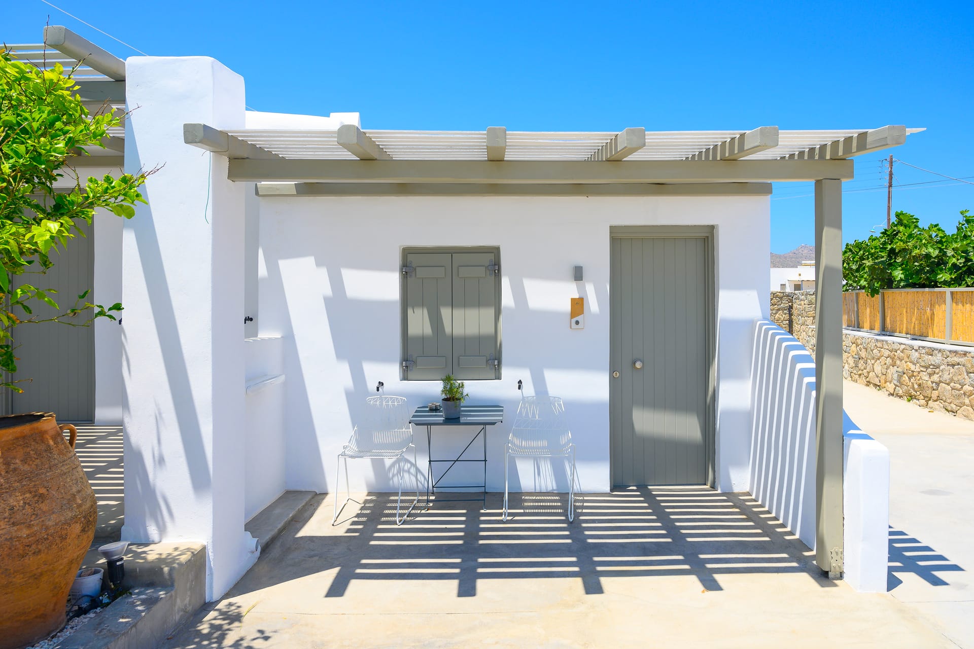 White & Grey is a newly built complex of independent apartments and suites featuring a swimming pool and an outdoor lounge space in Chondros Gkremos area, just 1 km from Mykonos town. Stone, white pebbles and wood are the main materials and decorative elements and the shades of white and grey are dominating, as its name suggests. The stylishly decorated lounge area and the swimming pool with the jacuzzi, will offer you a unique experience of homey feeling and unforgettable moments of relaxation under the Mykonian sky.