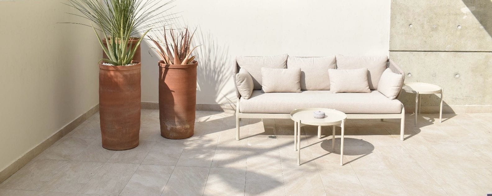 Designed with a contemporary sleek aesthetic, the suite includes a comfortable living room and a balcony deck leading to the garden. Enjoy the convenience of state-of-the-art amenities including air conditioning, high-speed WiFi, a smart TV, and a Nespresso coffee machine, all designed to enhance your stay. For a restful night's sleep, indulge in our high-quality mattresses and plush pillows.