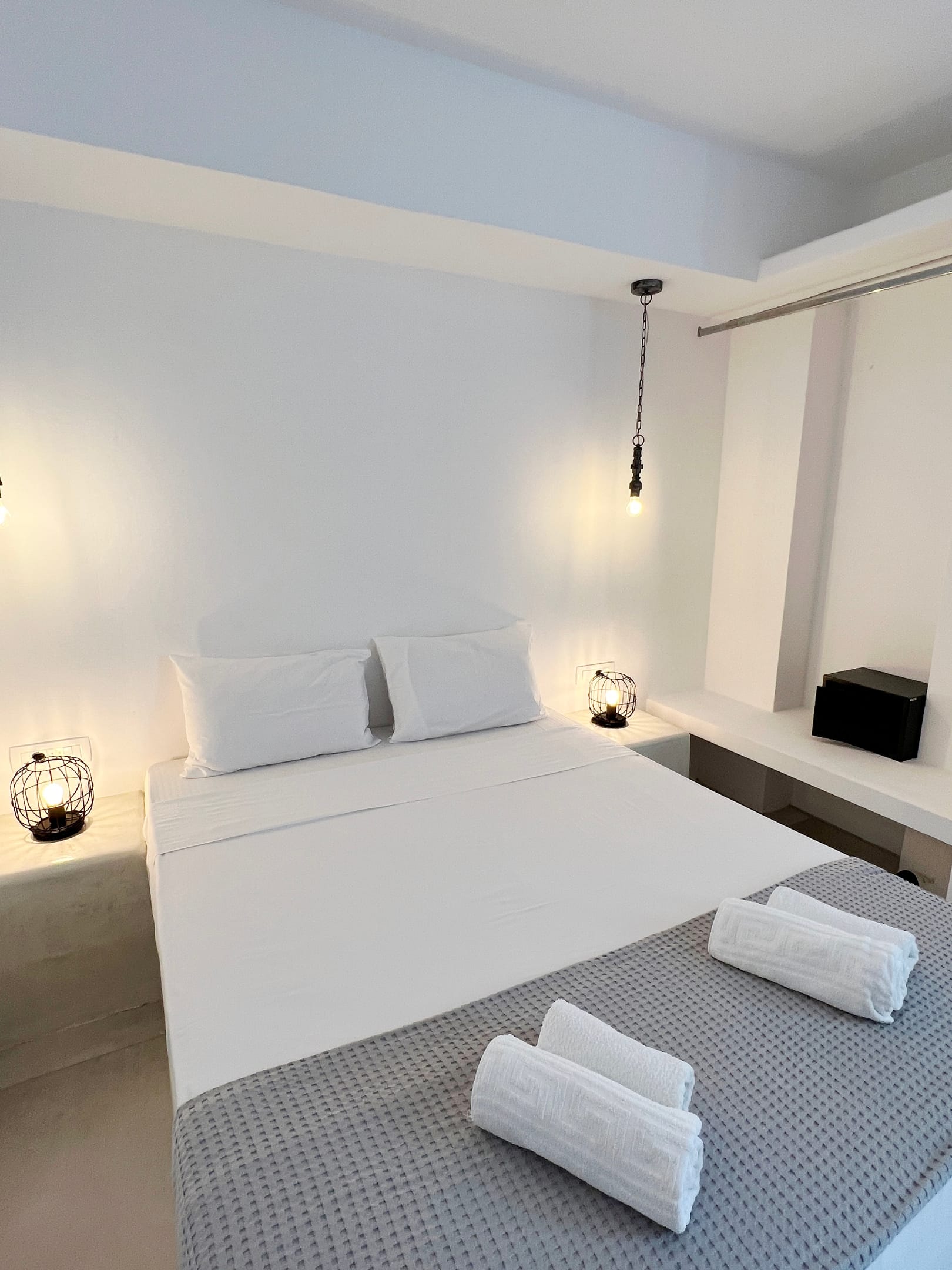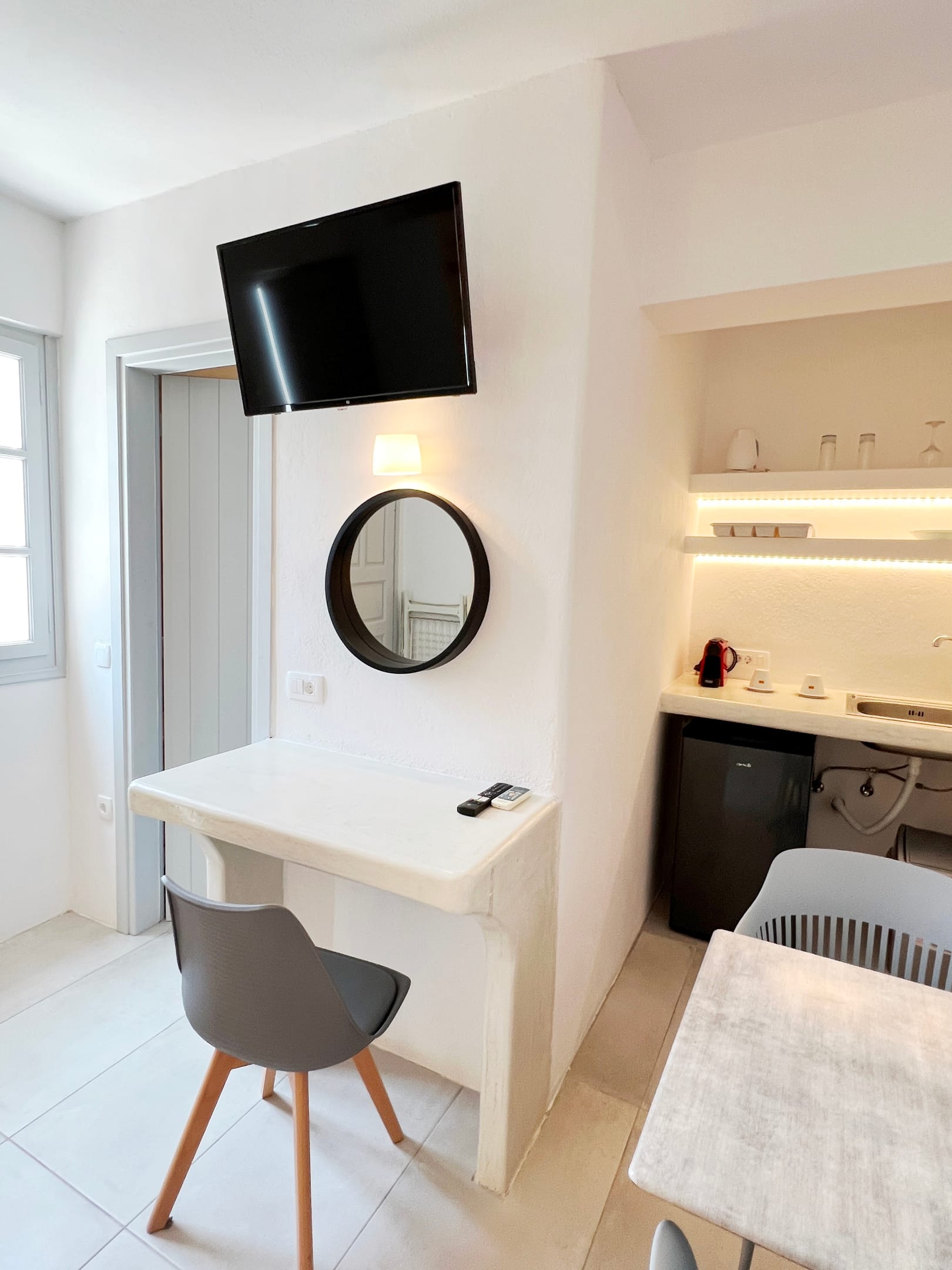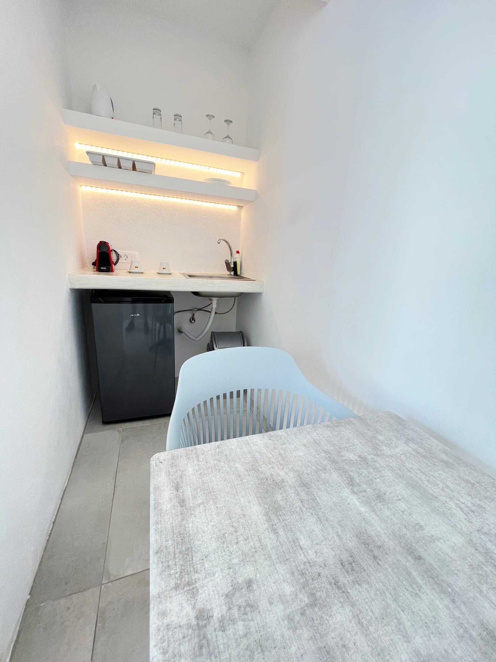 Located on the ground floor this room comes with a built-in queen double bed, flat screen tv, bathroom with walk-in shower with rain showerhead. It also features a mini-fridge, Nespresso machine and opens to a furnished shared balcony.