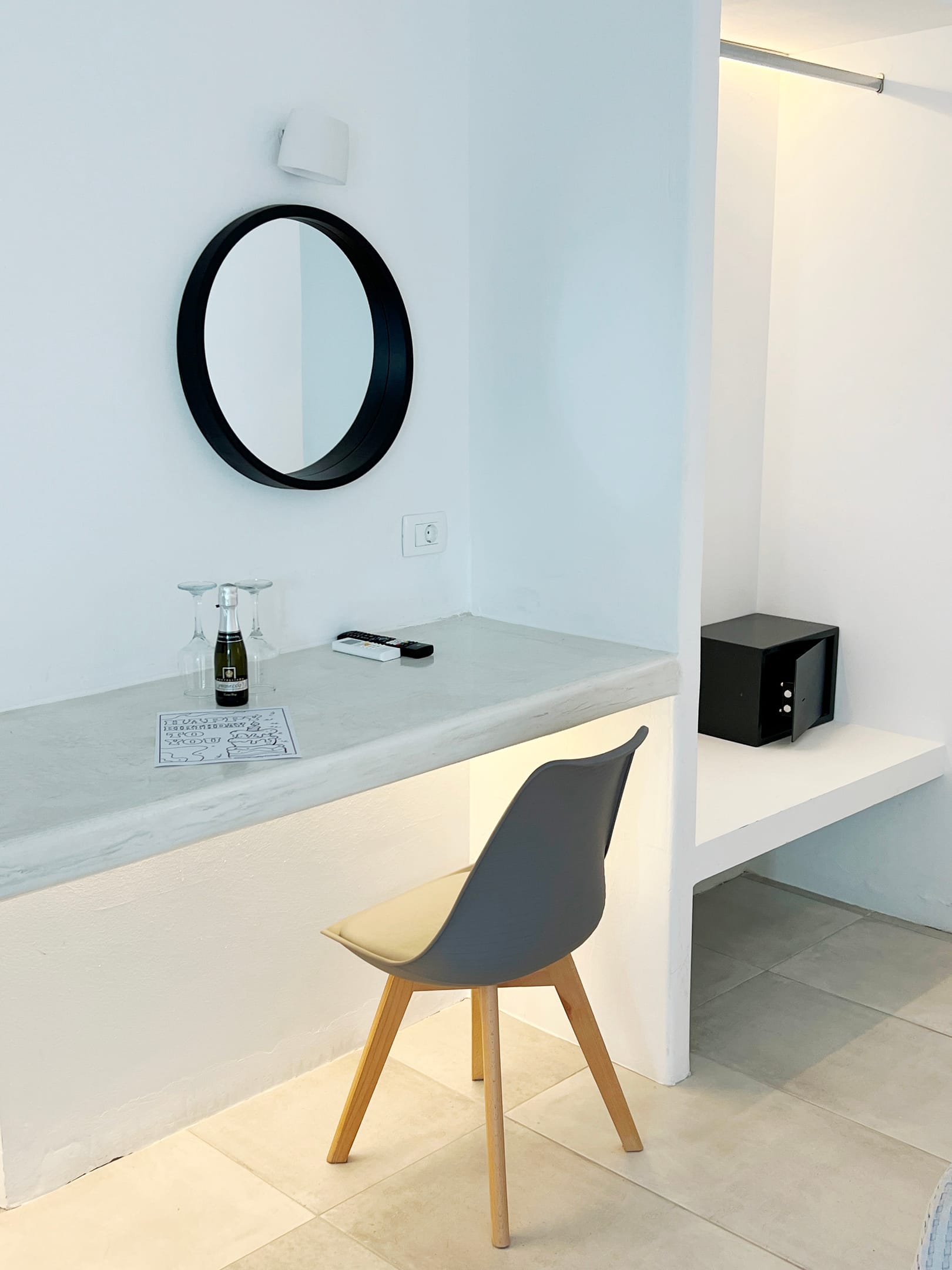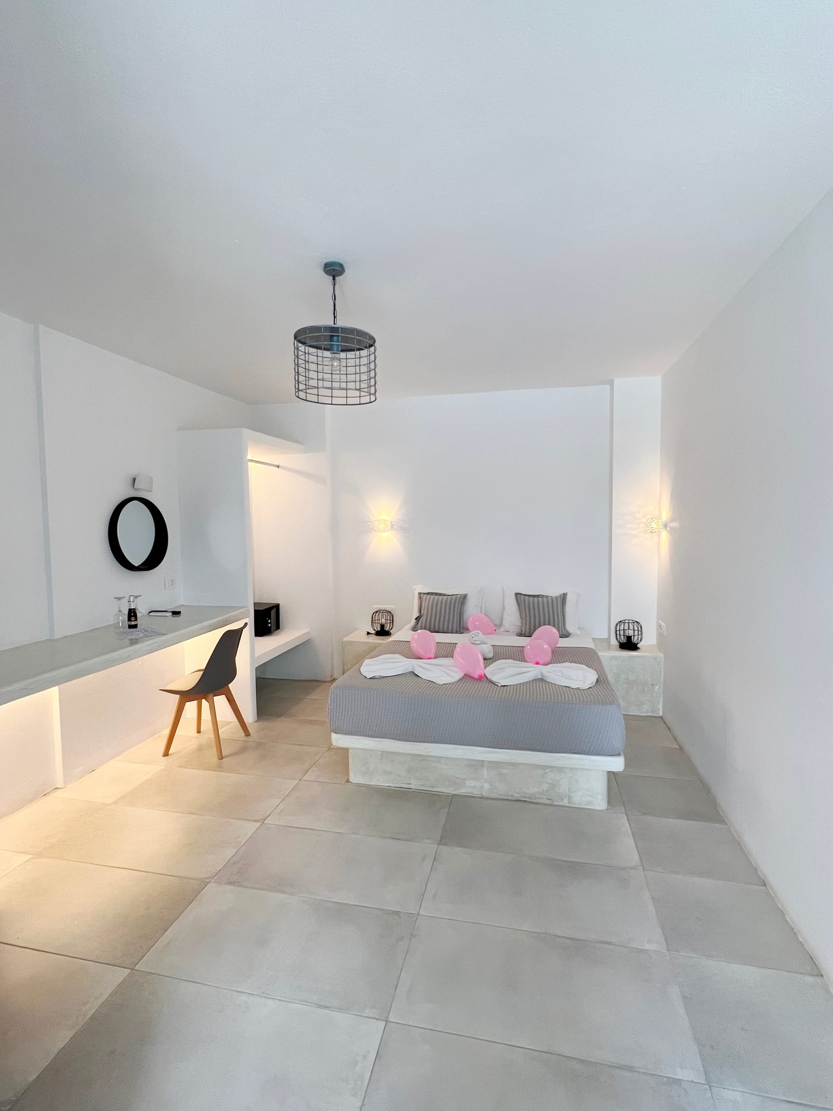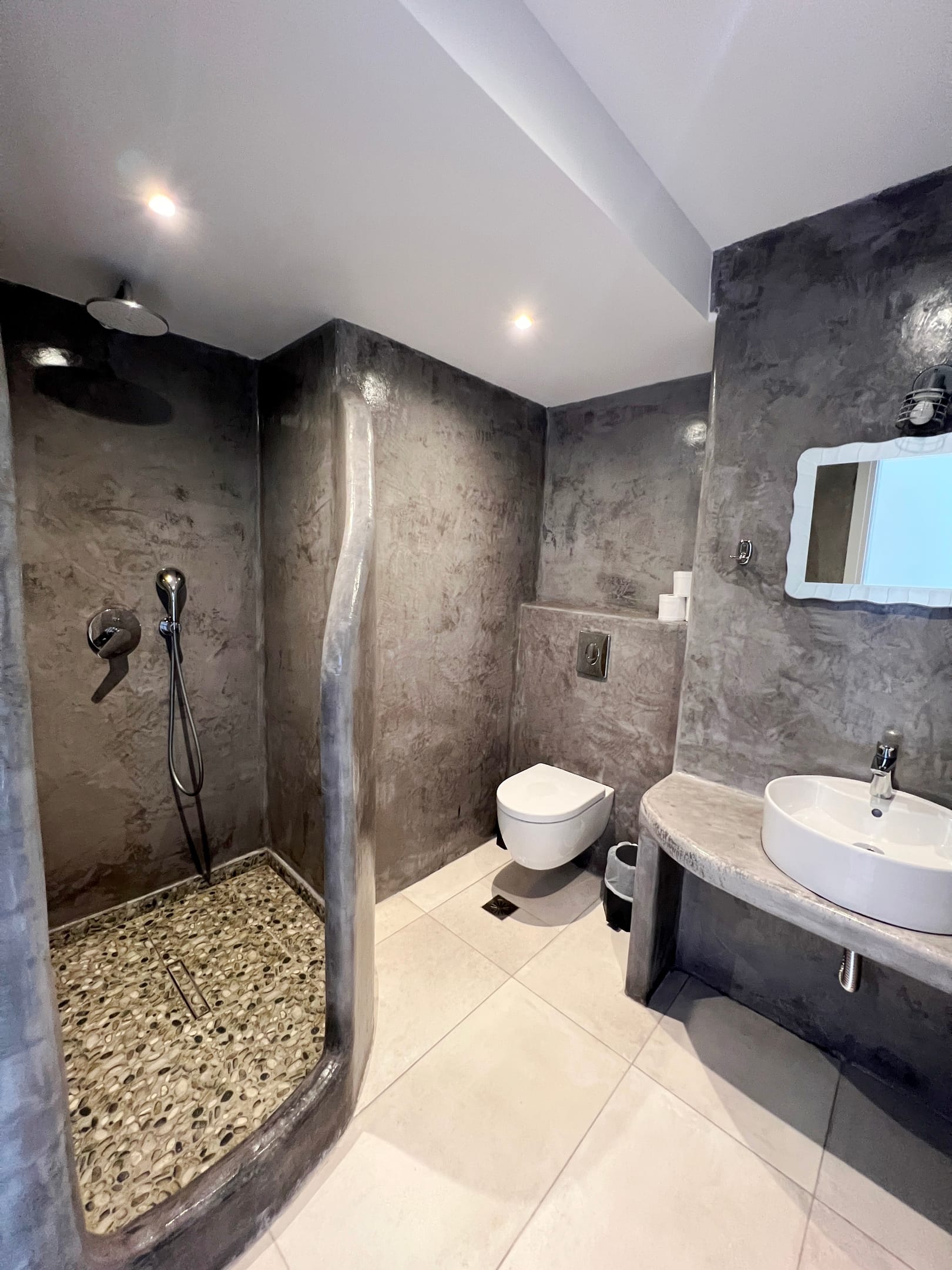 Located on the ground floor this room comes with a built-in queen double bed, flat screen tv, bathroom with walk-in shower with rain showerhead. It also features a mini-fridge, Nespresso machine and opens to a furnished shared balcony.
