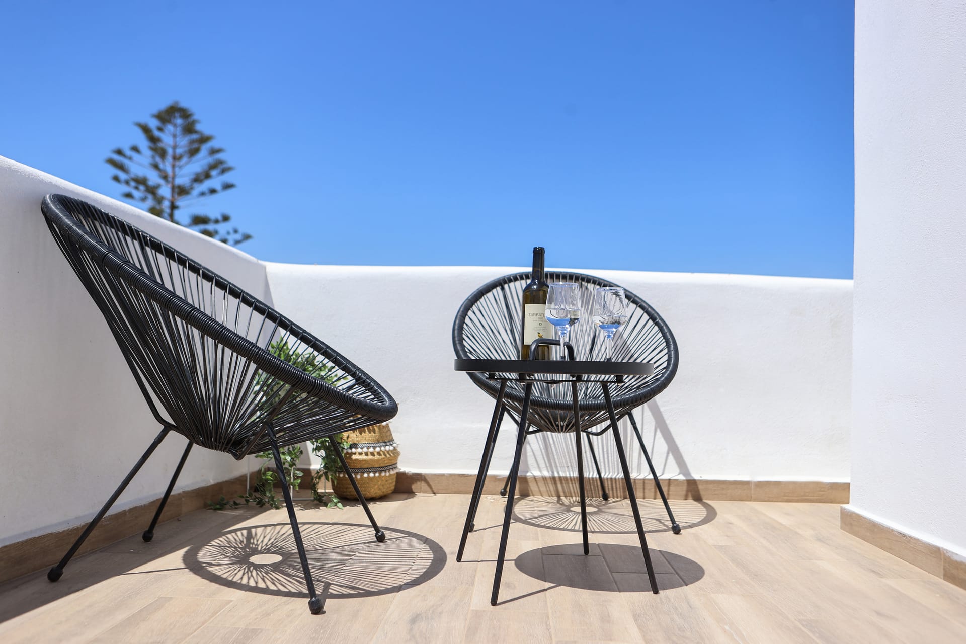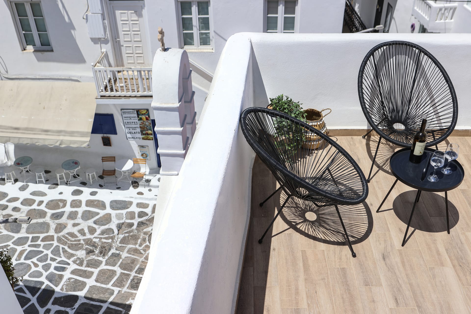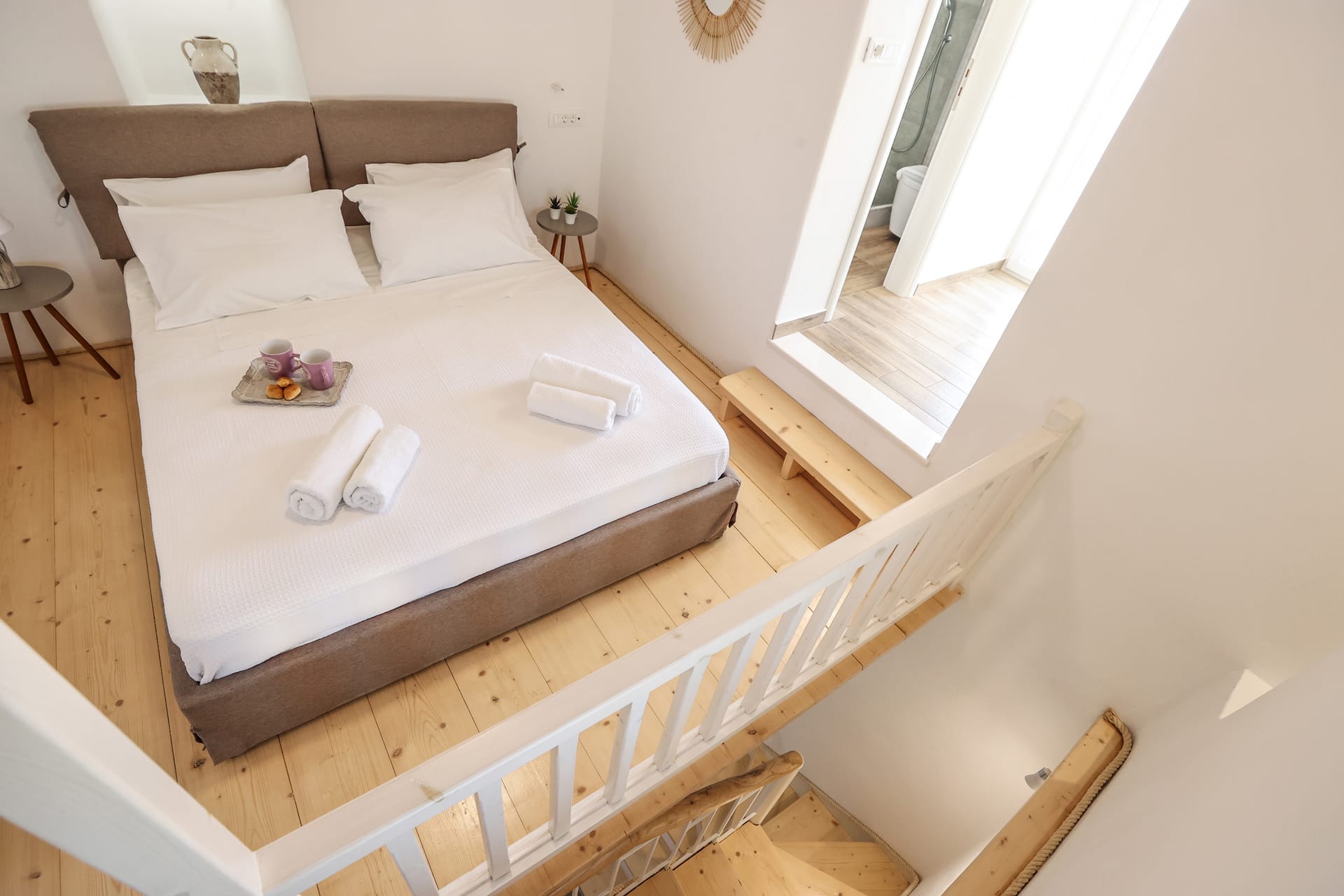 Whitelist Maisonette II is a two-level traditional cycladic house, located right in the heart of Mykonos Town! Just a breath away from all points of interest, this maisonette has one bedroom on the upper level and a living room with a mezzanine and a double sofa-bed on the lower level. Combining the Cycladic style with all the modern comforts, Whitelist Maisonette II is the perfect choice for a couple, a group of friends or a small family to explore Mykonos! Little Venice and the Windmills are only 3 minutes walking away.