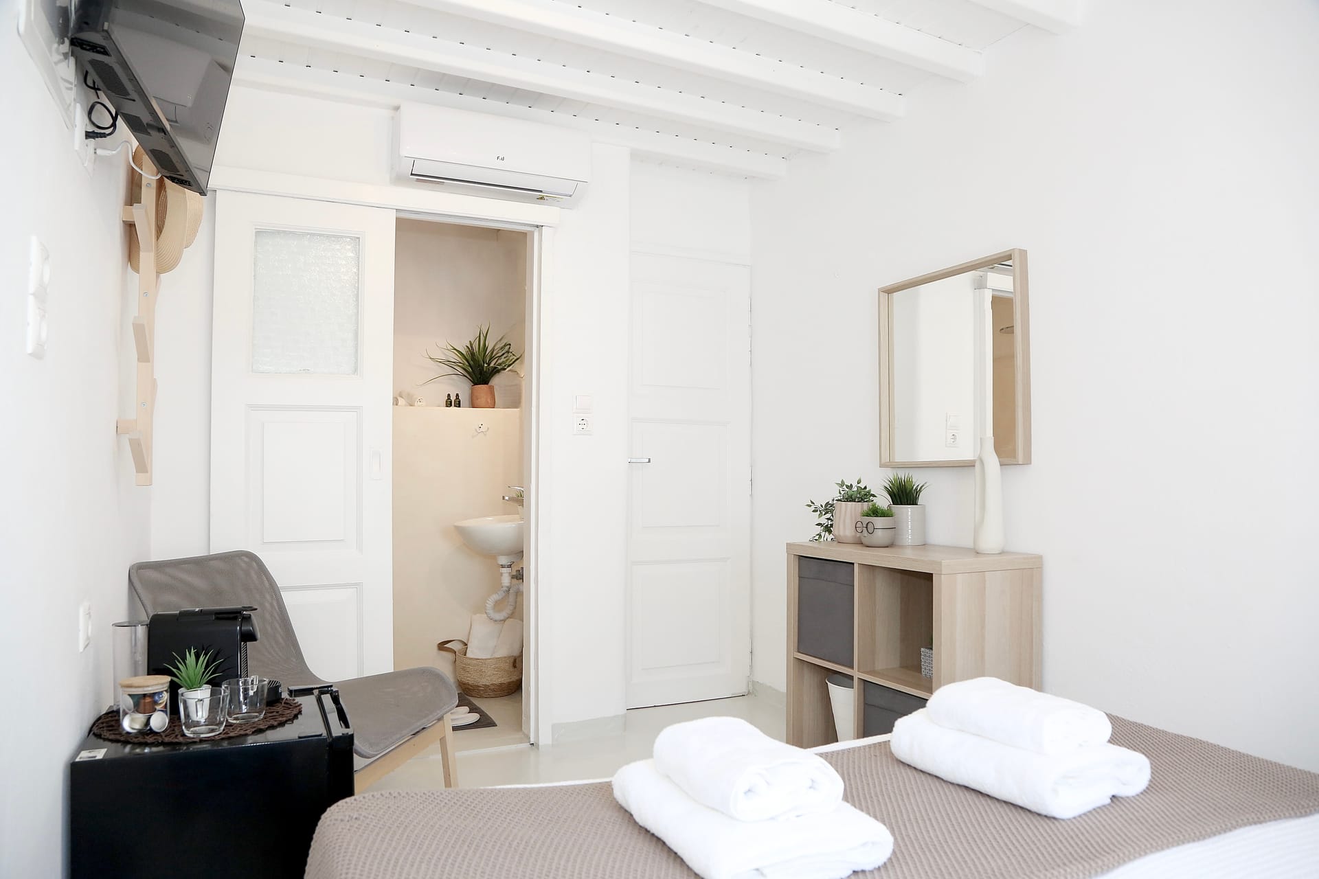 Whitelist Studio 3 is located in the heart of Mykonos Town! Just a few steps from the bars, restaurants and the famous nightlife of Mykonos that never sleeps ! This studio is comfortable enough for a couple. It has one double bed for two people. The Studio is brand new, fully renovated and offers all modern comforts! Everything is in walking distance.