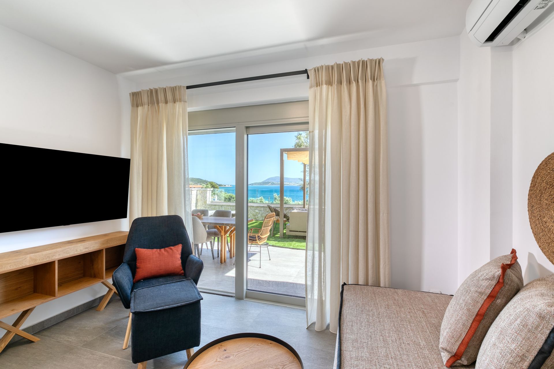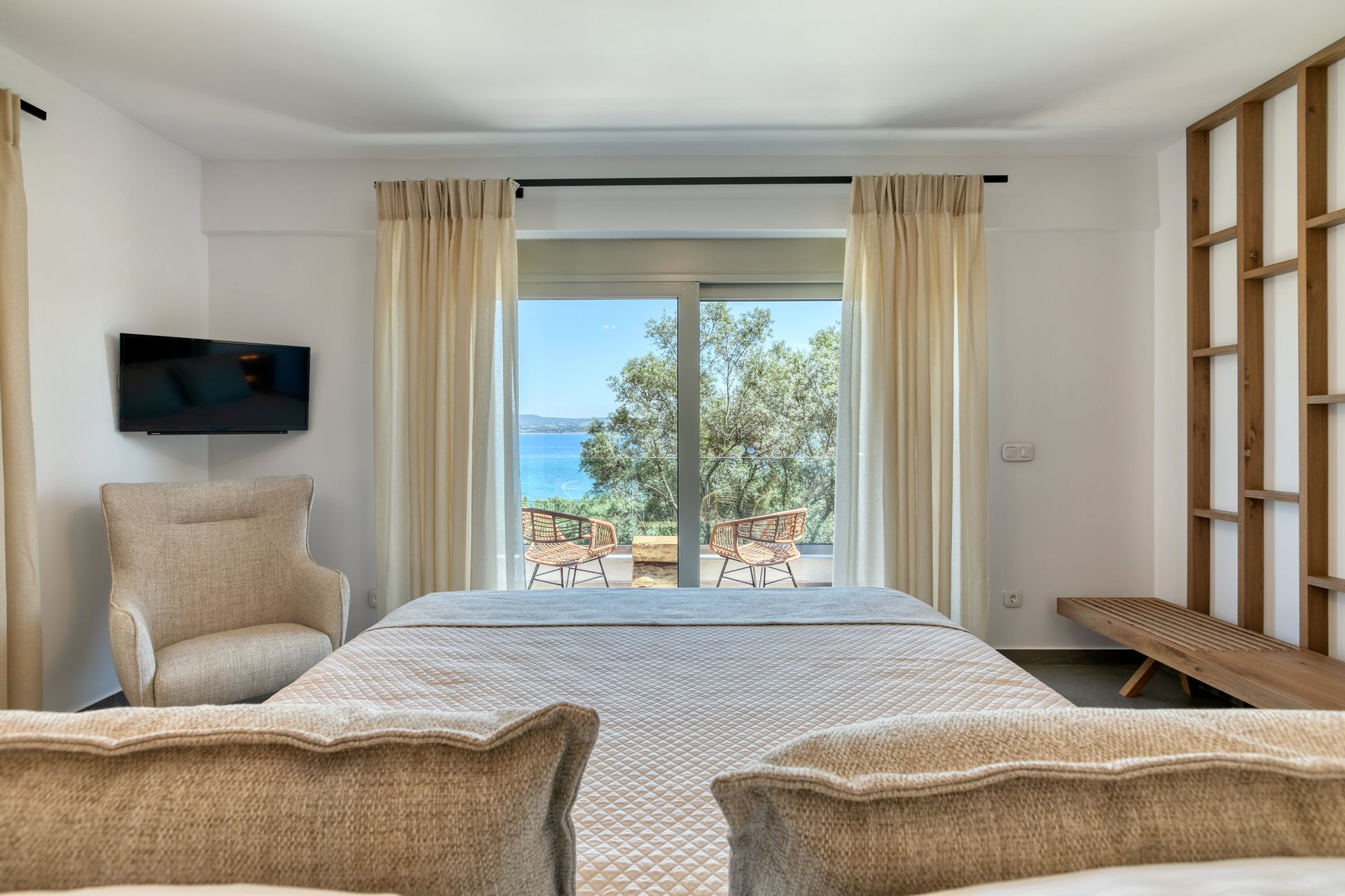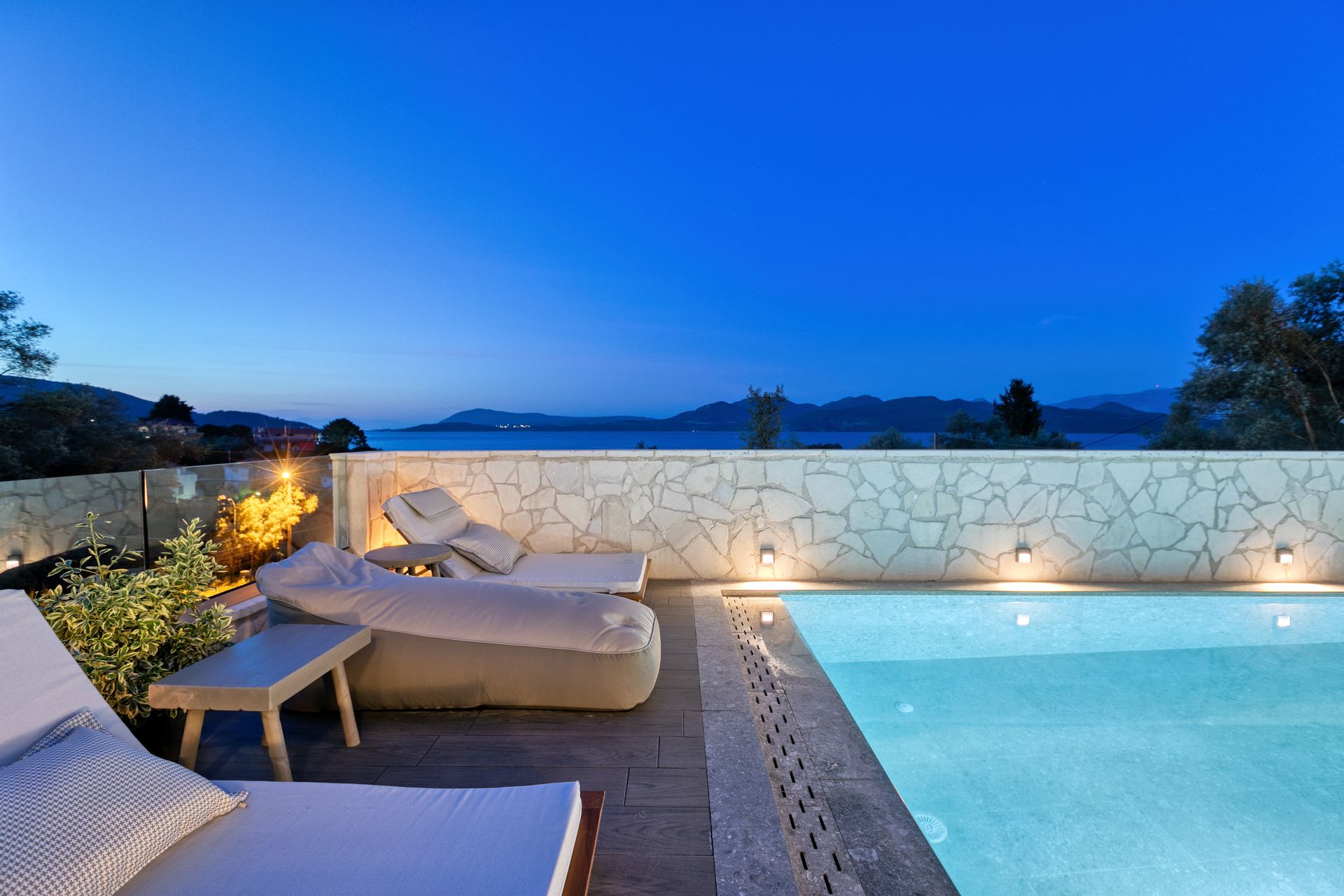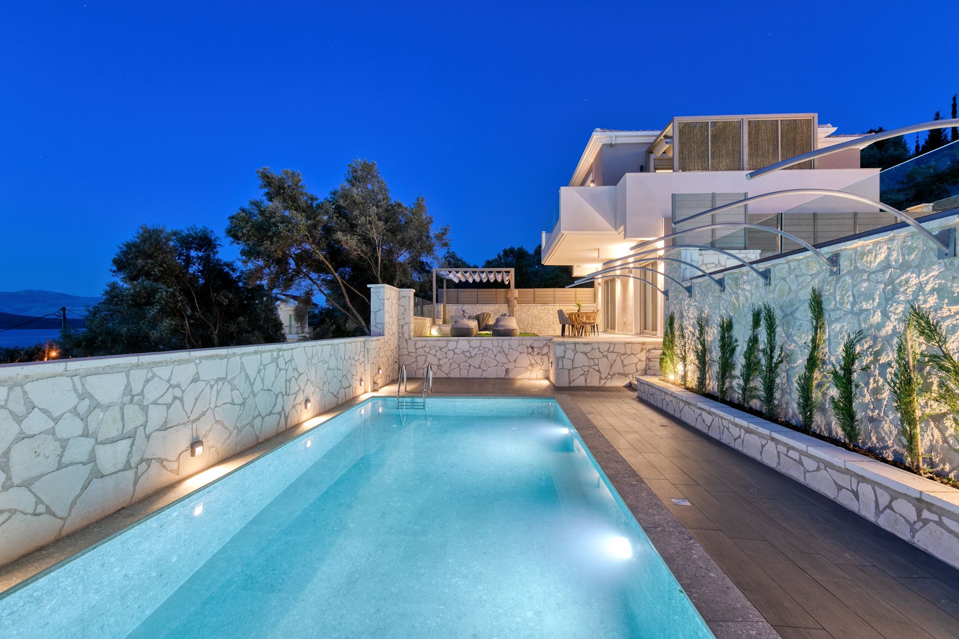 The luxury residence whose construction was completed in Spring 2021 can thrill with the wonderful view of the Ionian sea and the unique location as well as the highly individualized comfort and fantastic outdoor space.