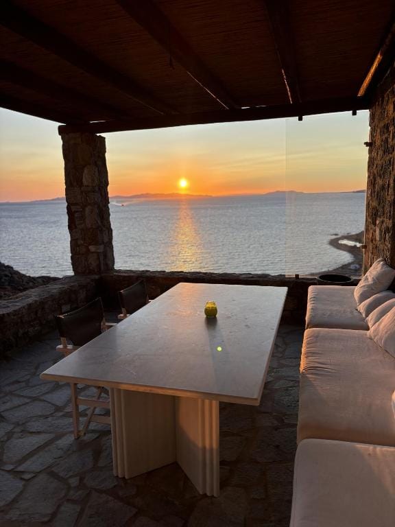 Approximately a 90m2 sea view apartment with 3 double bedrooms, spacious living room and a fully equipped kitchen. It can accommodate easily 6 people, either couples or a family. The spacious veranda offers the most amazing sunset view to the Aegean Sea. We give you the promise of relaxing and peaceful moments at Sunset View Apartment.