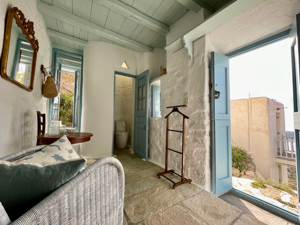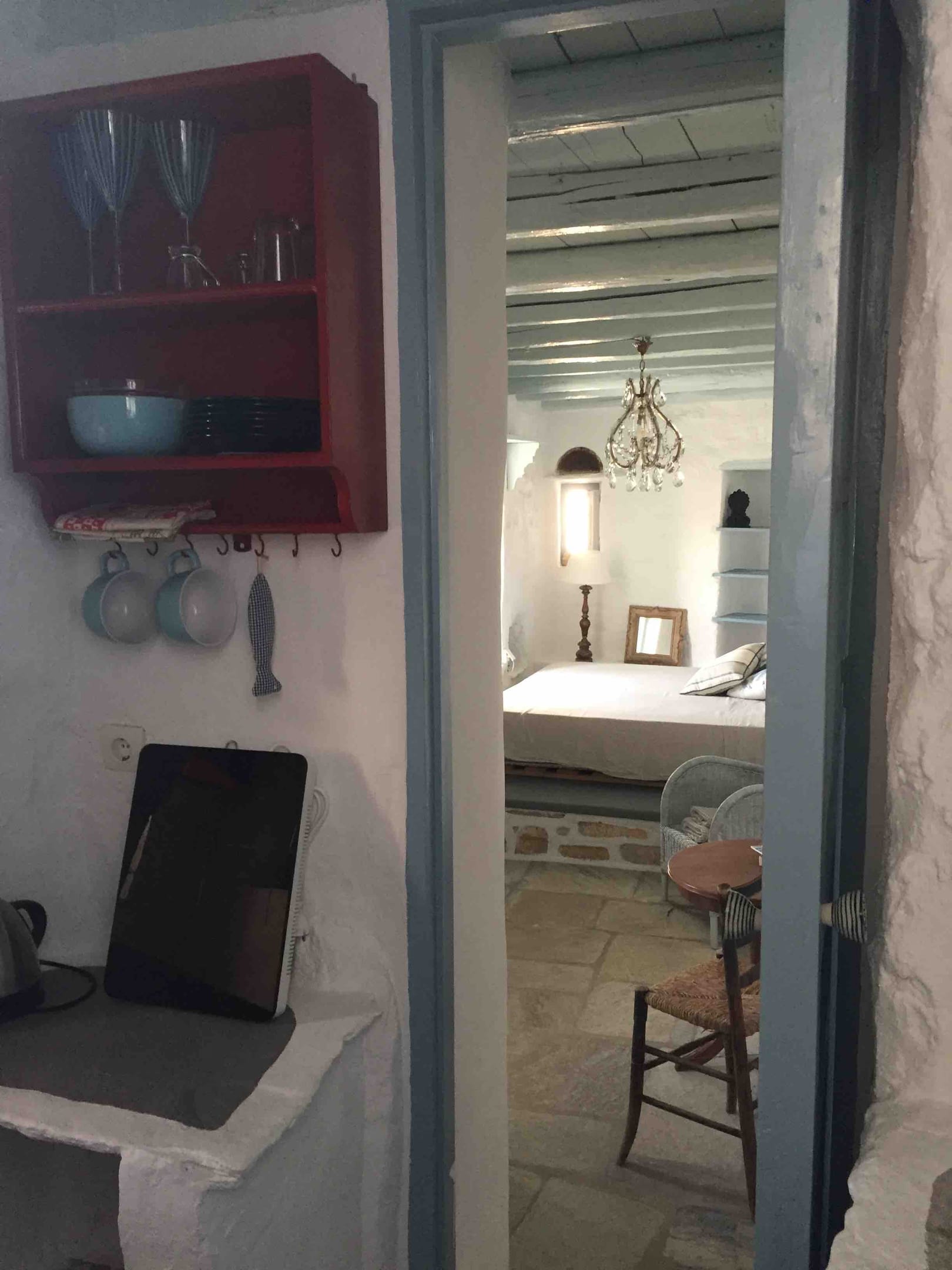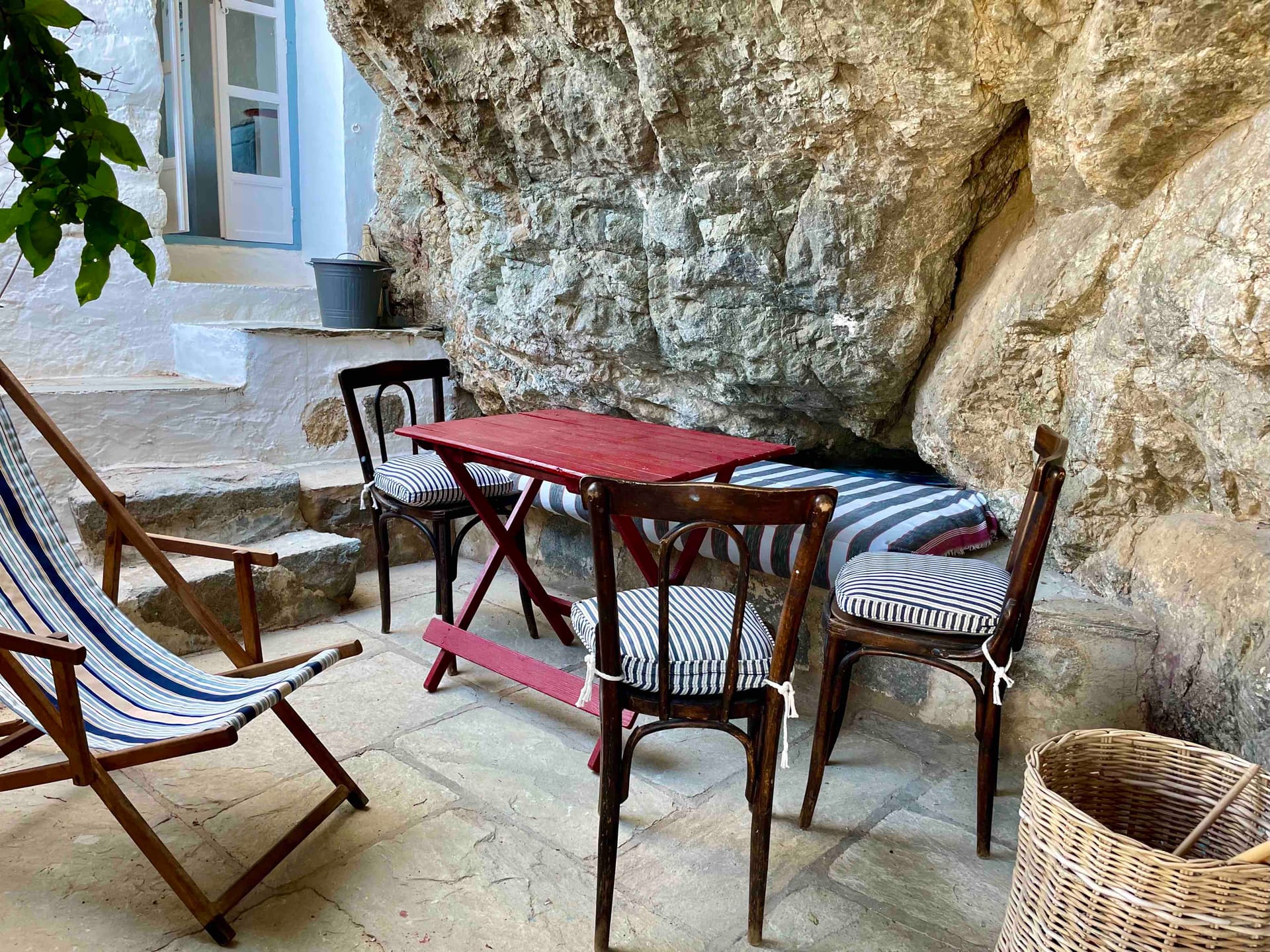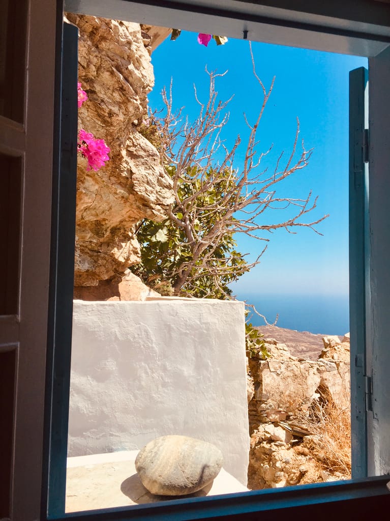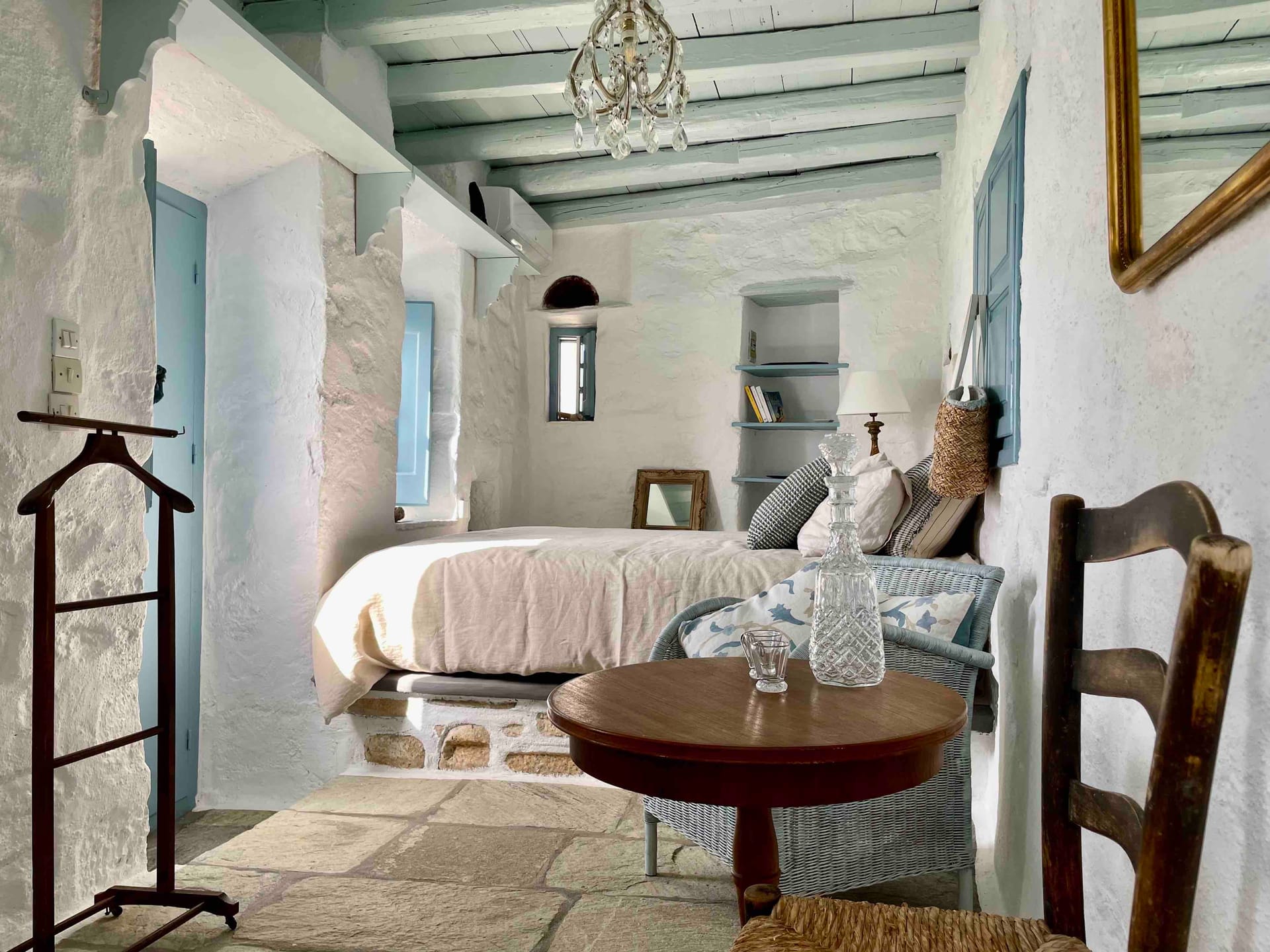 It is a charming traditonial house of Chora in a unique terrific location. The house is enveloped by a huge rock that is the base of Holy Church.