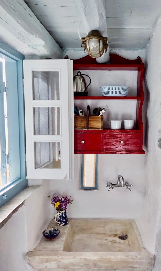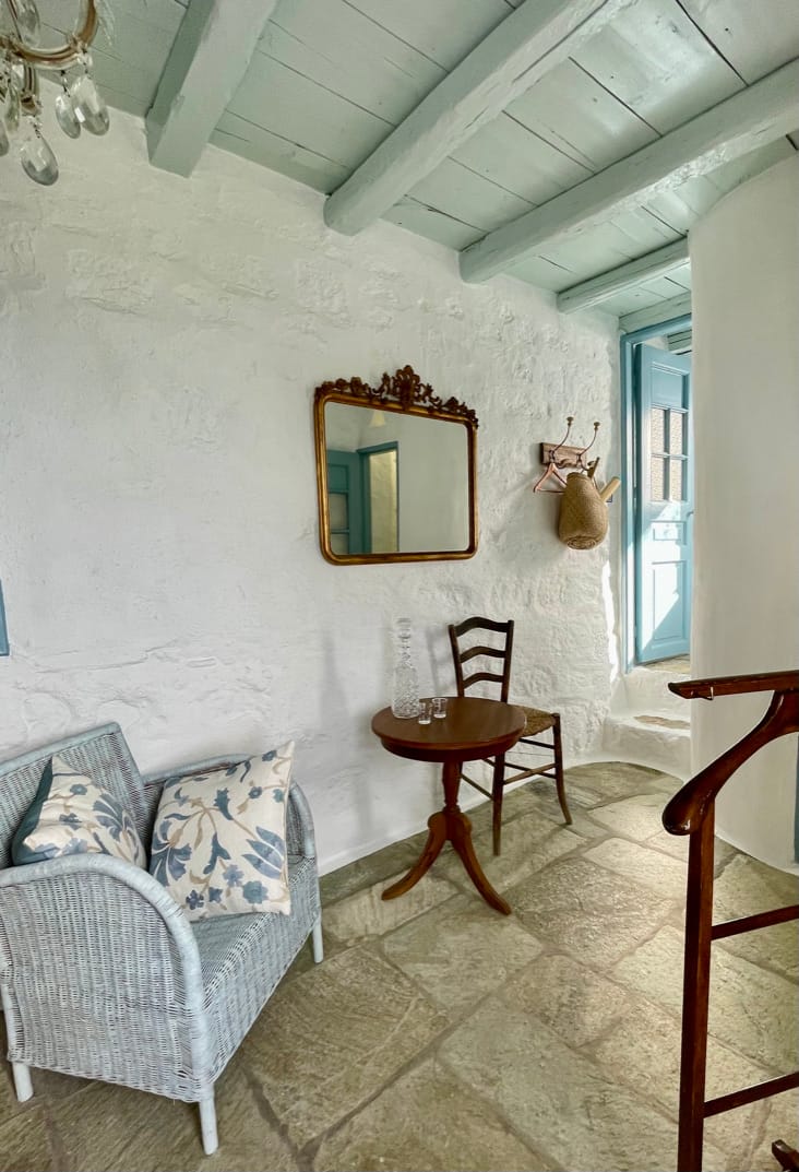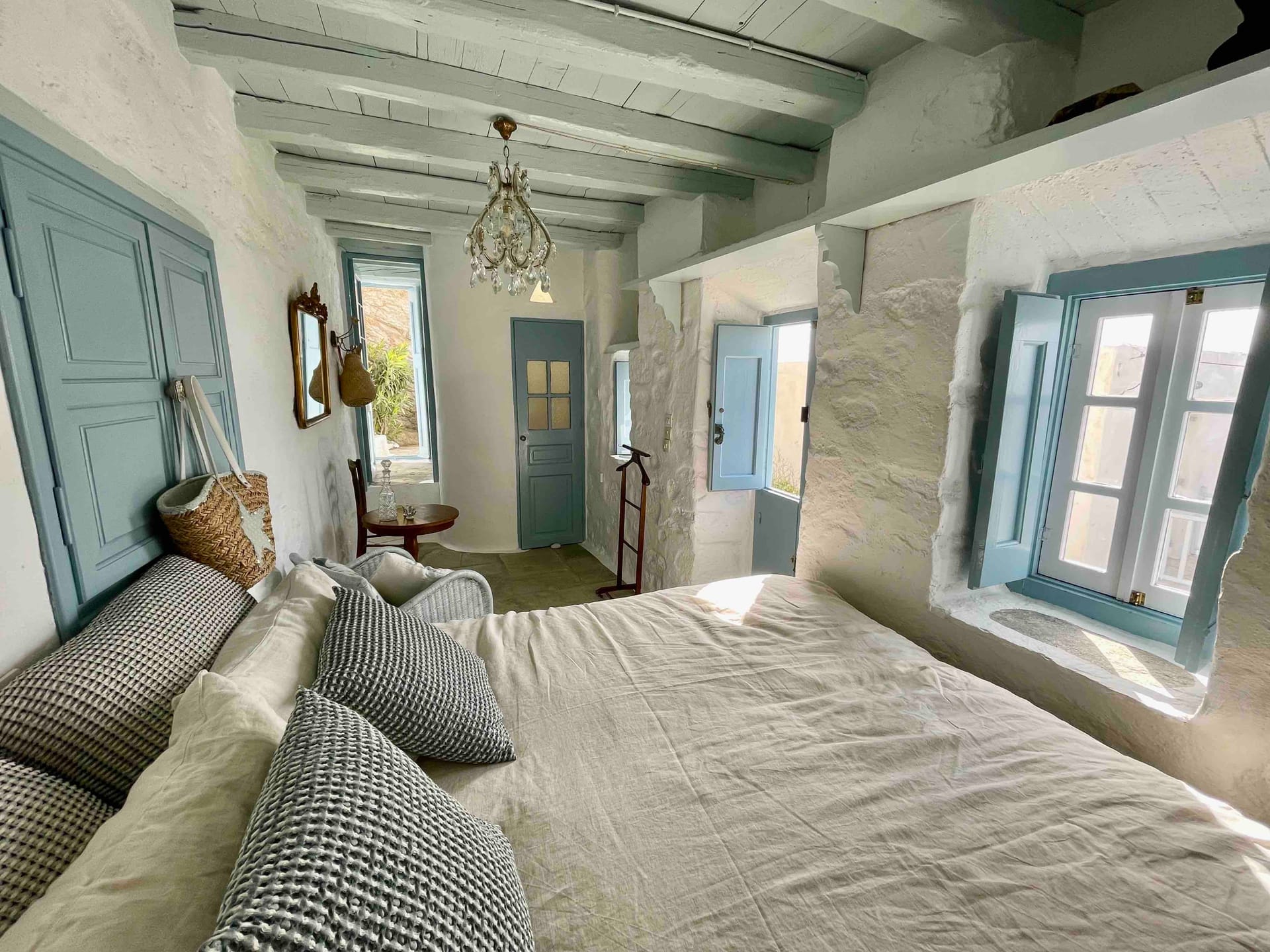 This beautiful home has been featured in several books on Cycladic architecture. Her first owner, a famous Greek stage designer, chiseled out the interior and outdoor spaces preserving both functionality and atmosphere.